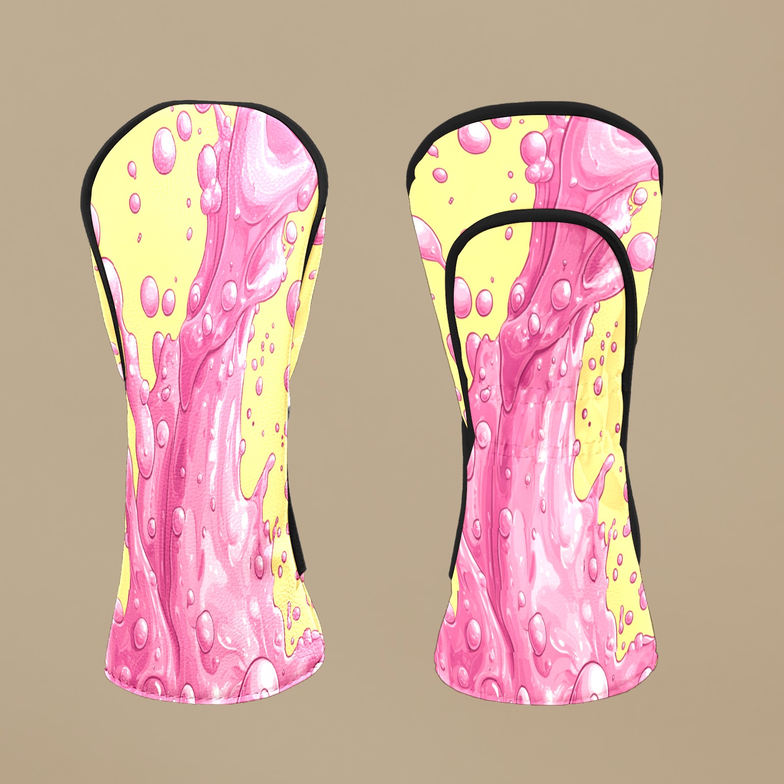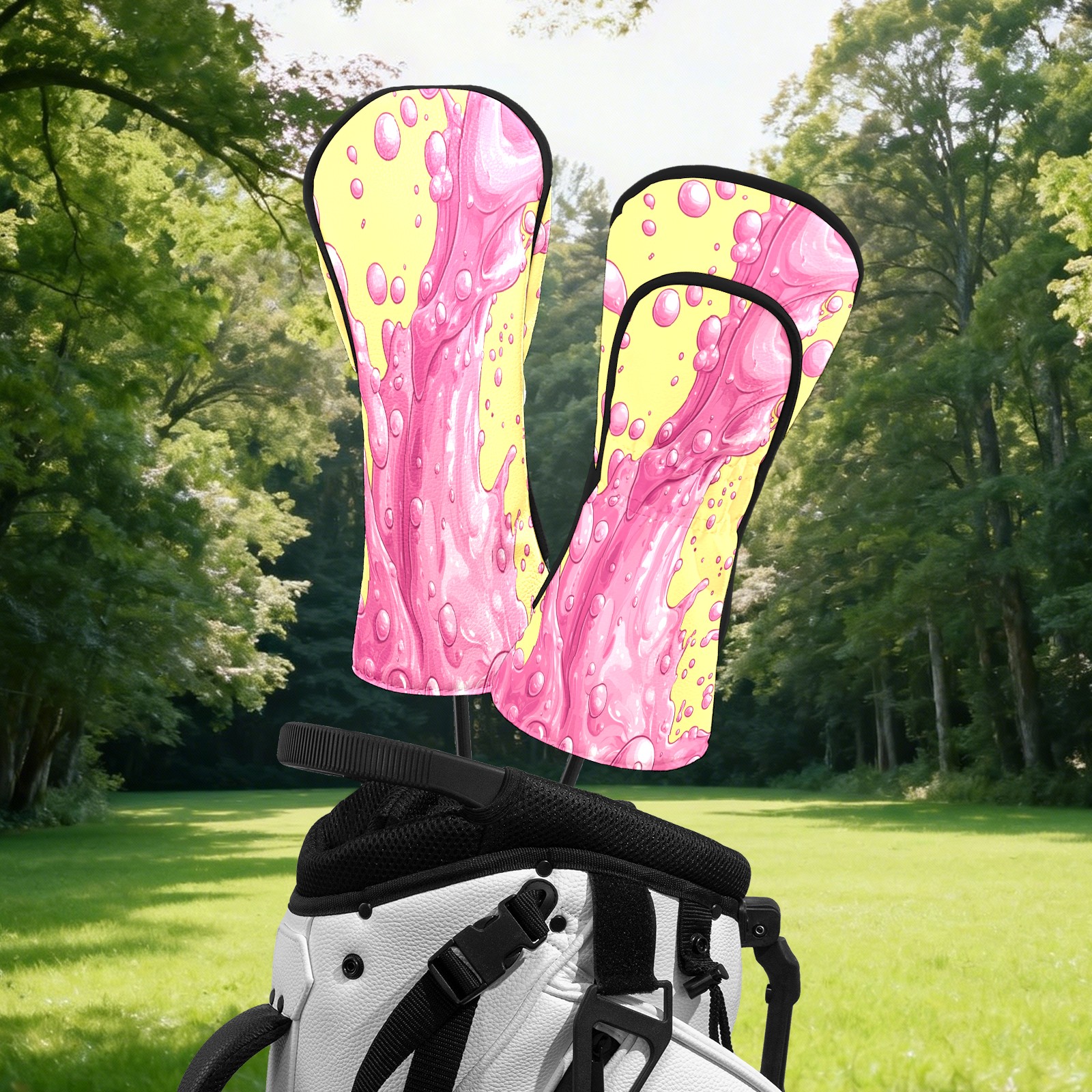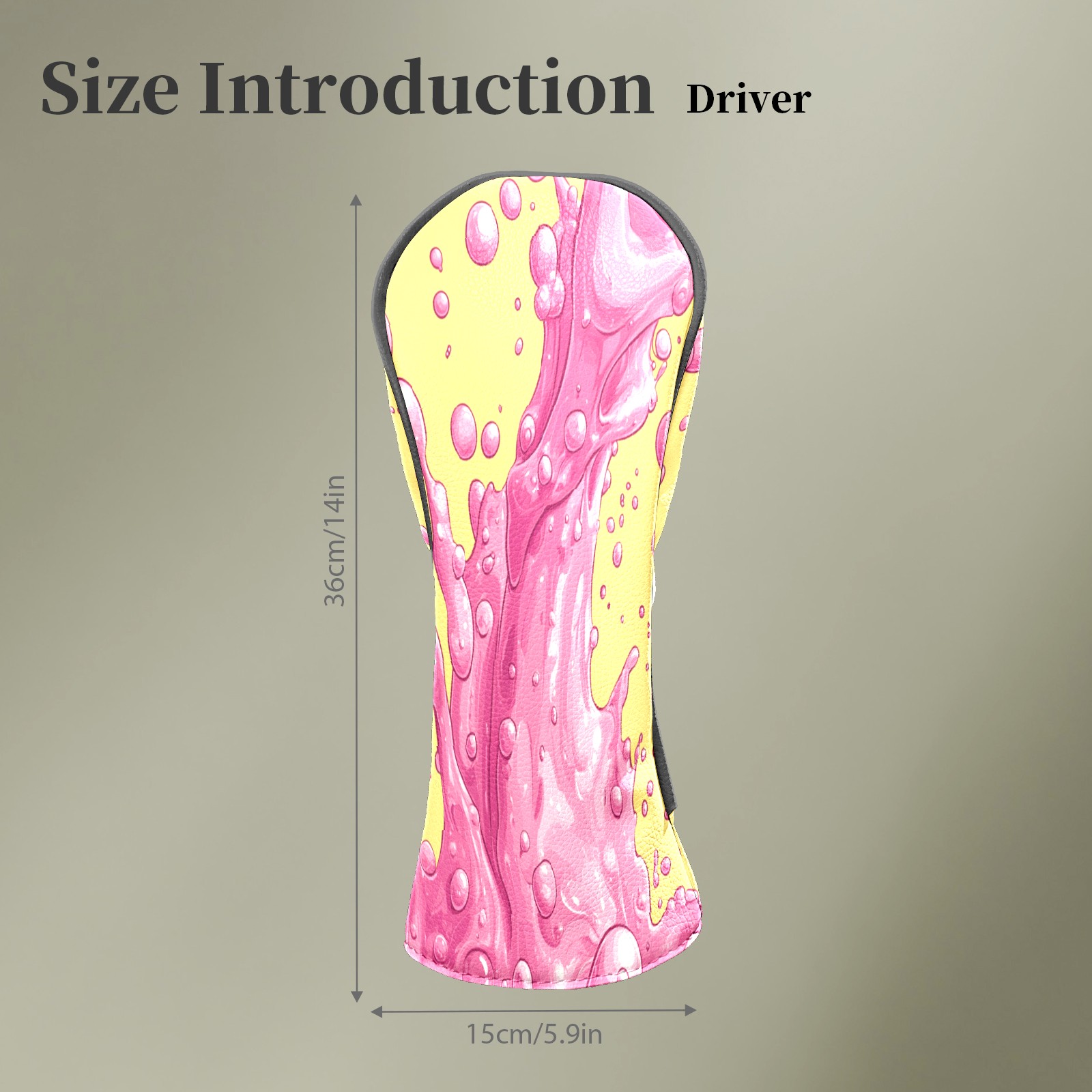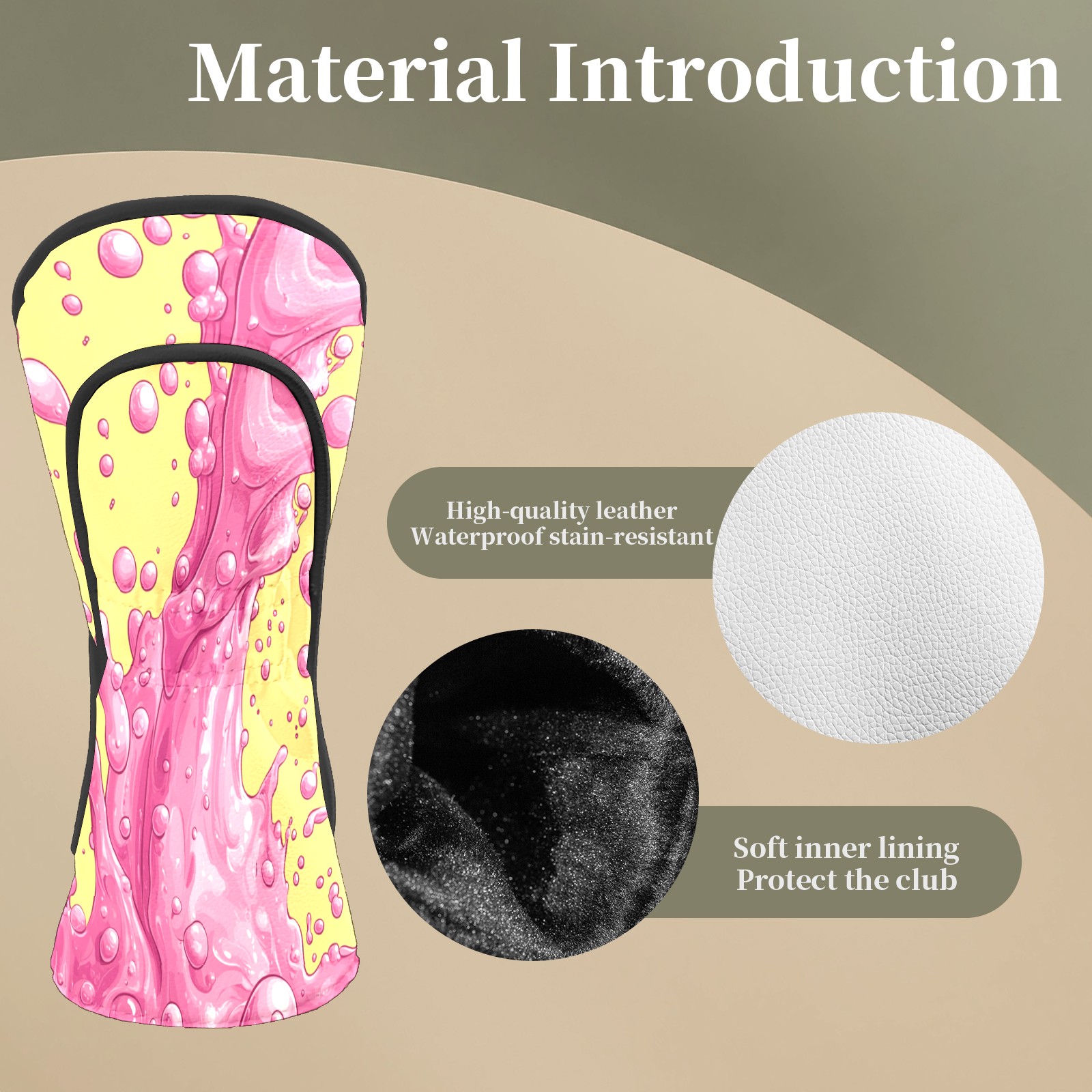 Golf Head Covers Fit Driver Headcover, Fairway Wood, and Hybrid Covers for Pink Slime Bubbles Pattern Design, Waterproof PU Leather, Classic Golf Gift & Accessories for Golfers