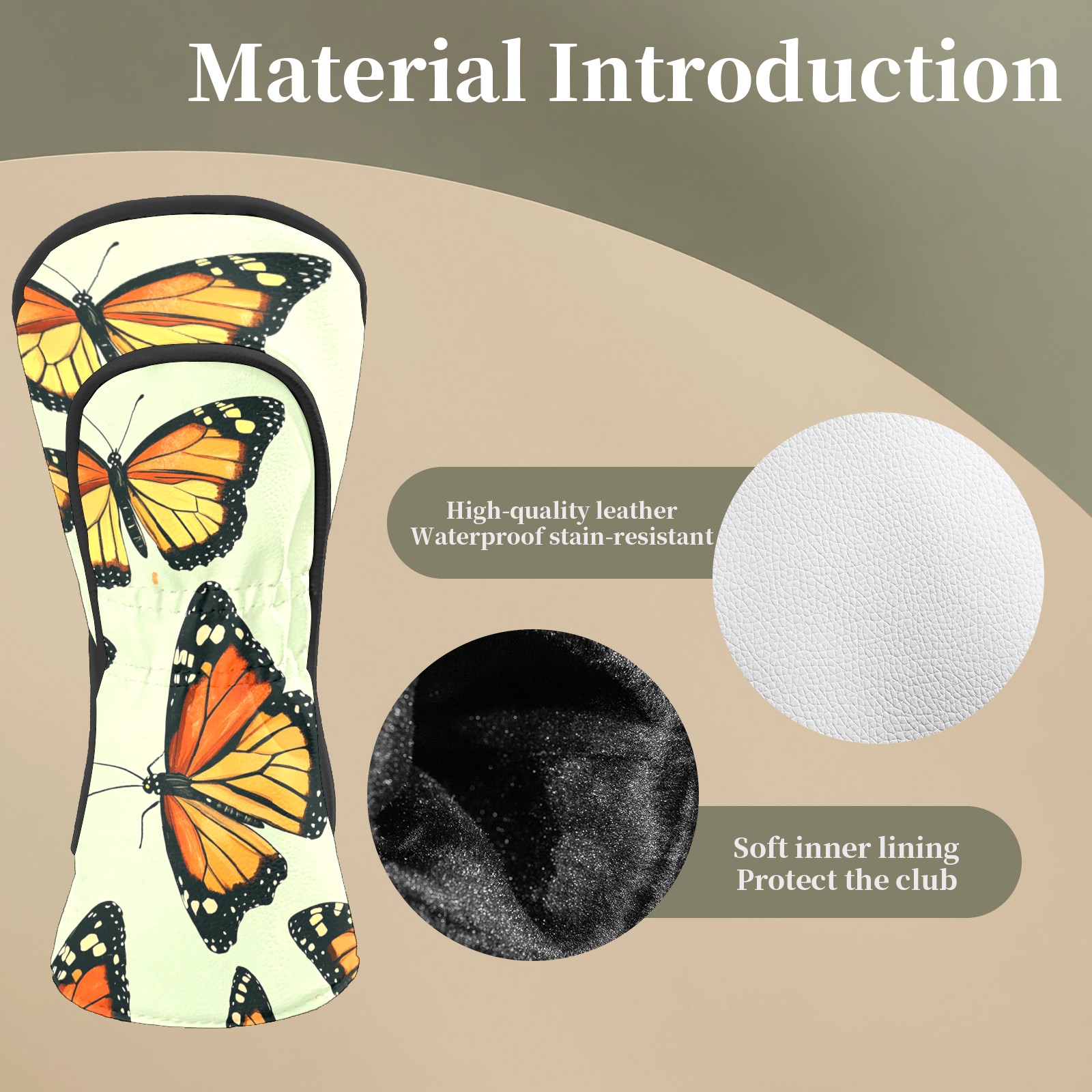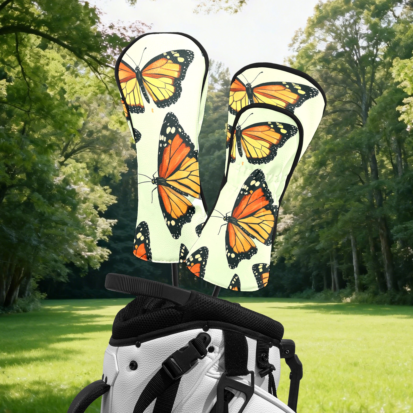 Golf Head Covers Fit Driver Headcover, Fairway Wood, and Hybrid Covers for Butterfly Pattern Design, Waterproof PU Leather, Classic Golf Gift & Accessories for Golfers