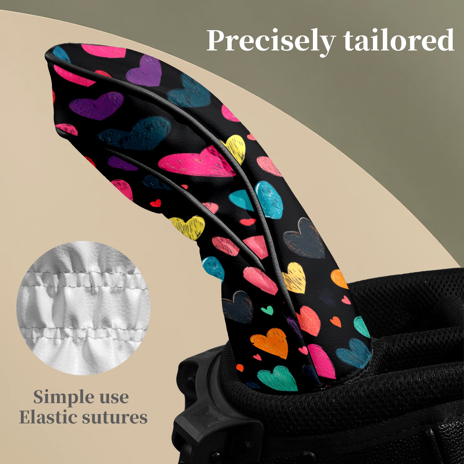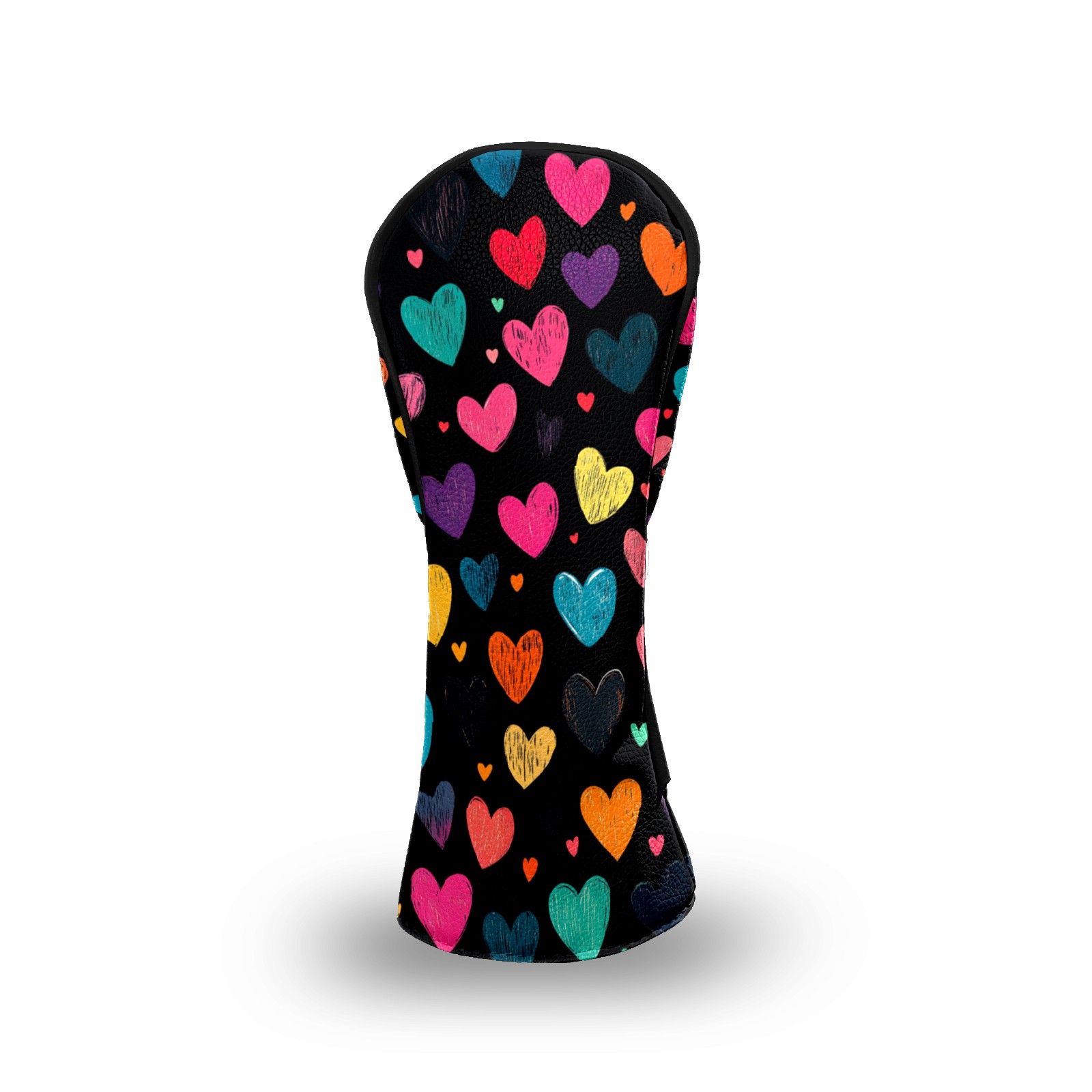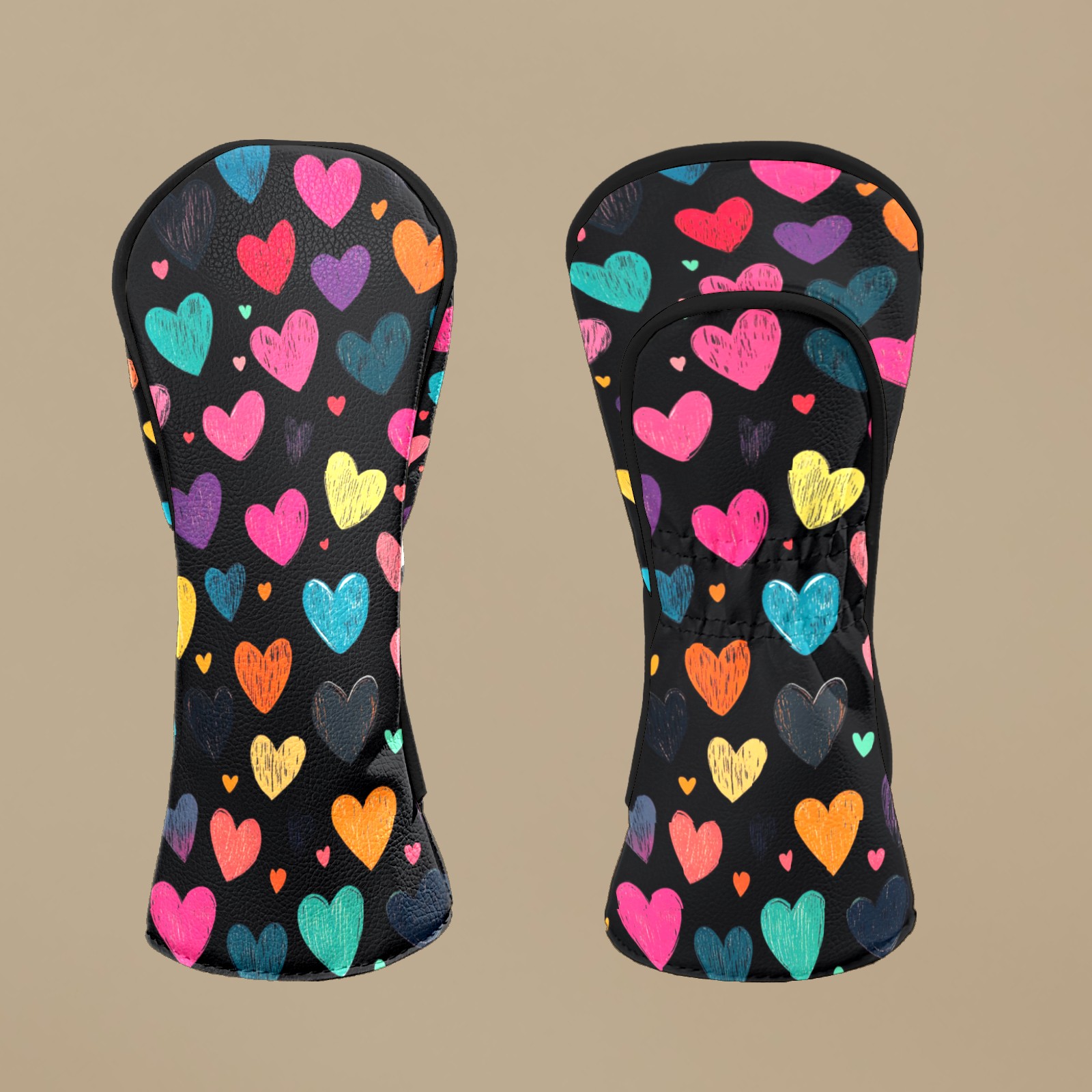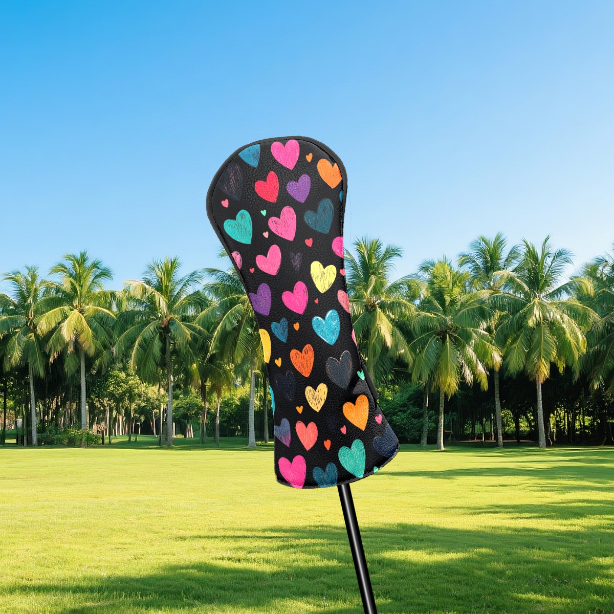 Golf Head Covers Fit Driver Headcover, Fairway Wood, and Hybrid Covers for Colorful Heart Pattern Design, Waterproof PU Leather, Classic Golf Gift & Accessories for Golfers