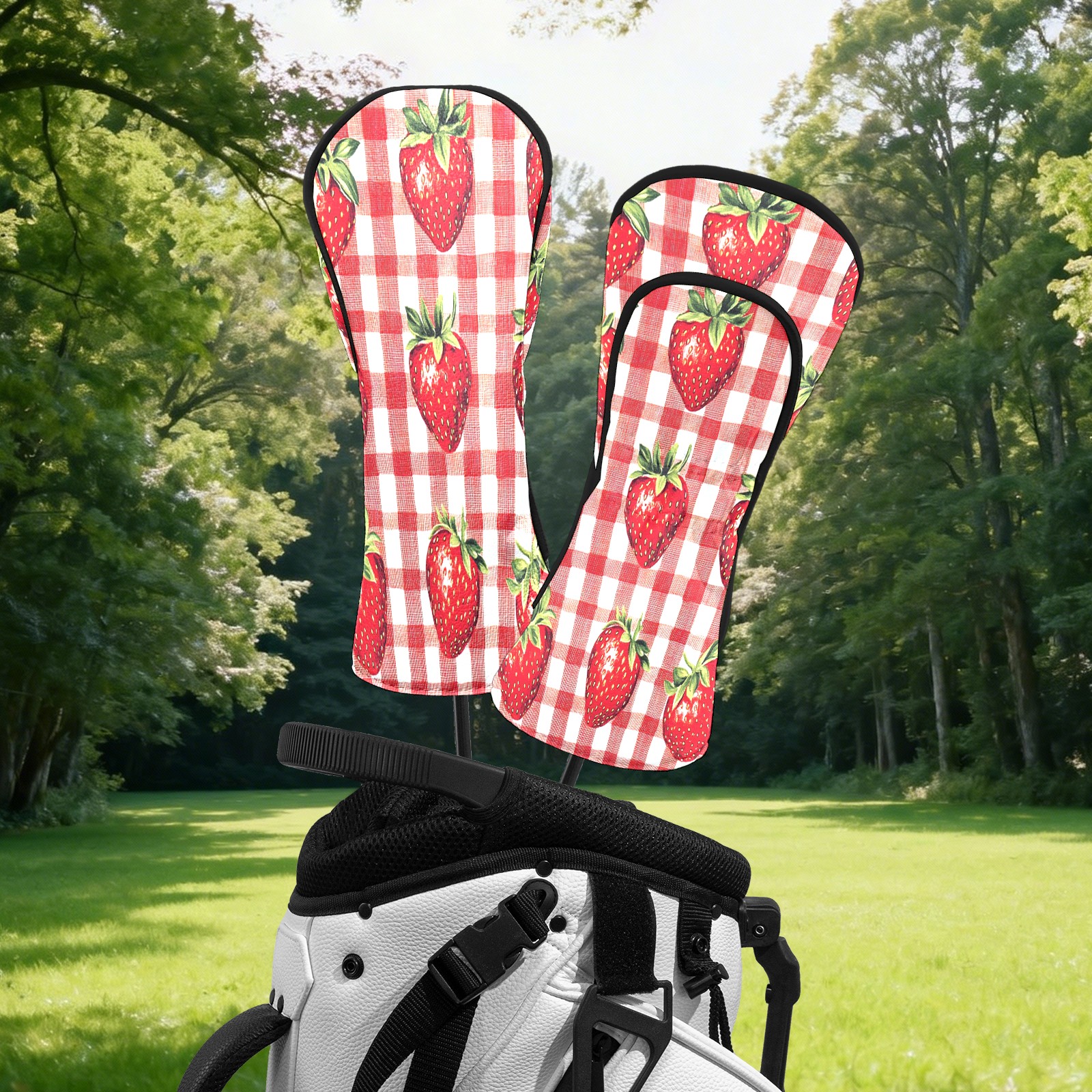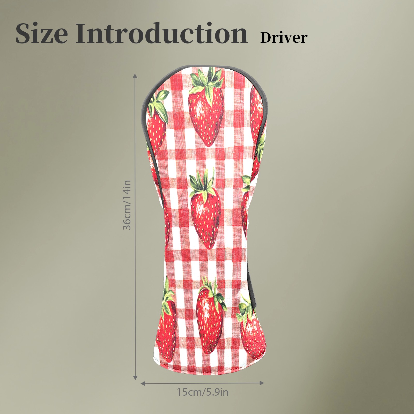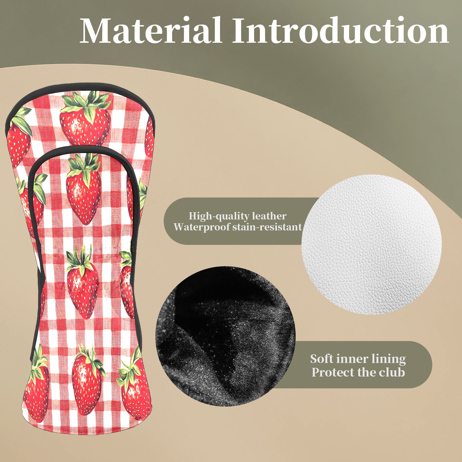 Golf Head Covers Fit Driver Headcover, Fairway Wood, and Hybrid Covers for Strawberry Checkered Pattern Design, Waterproof PU Leather, Classic Golf Gift & Accessories for Golfers