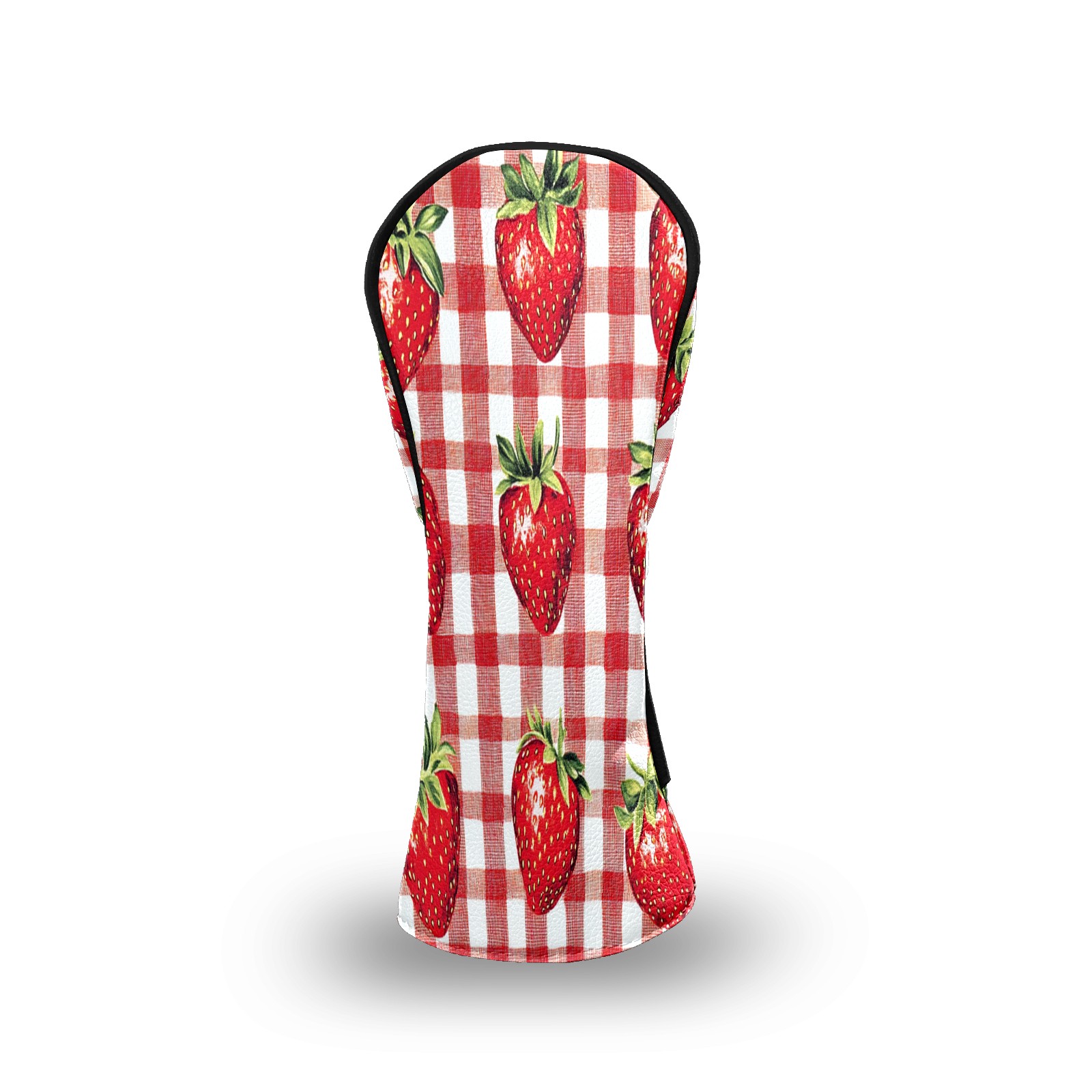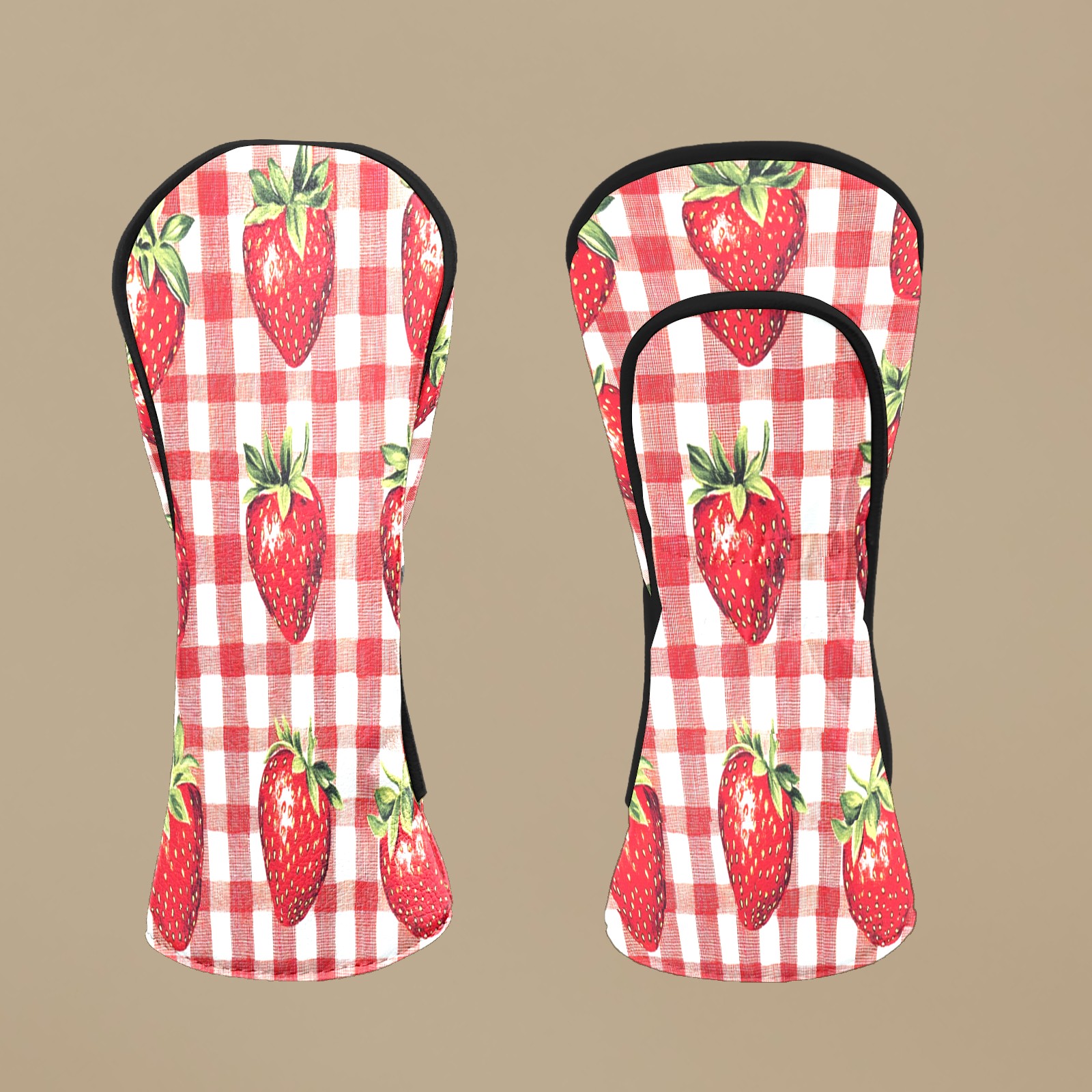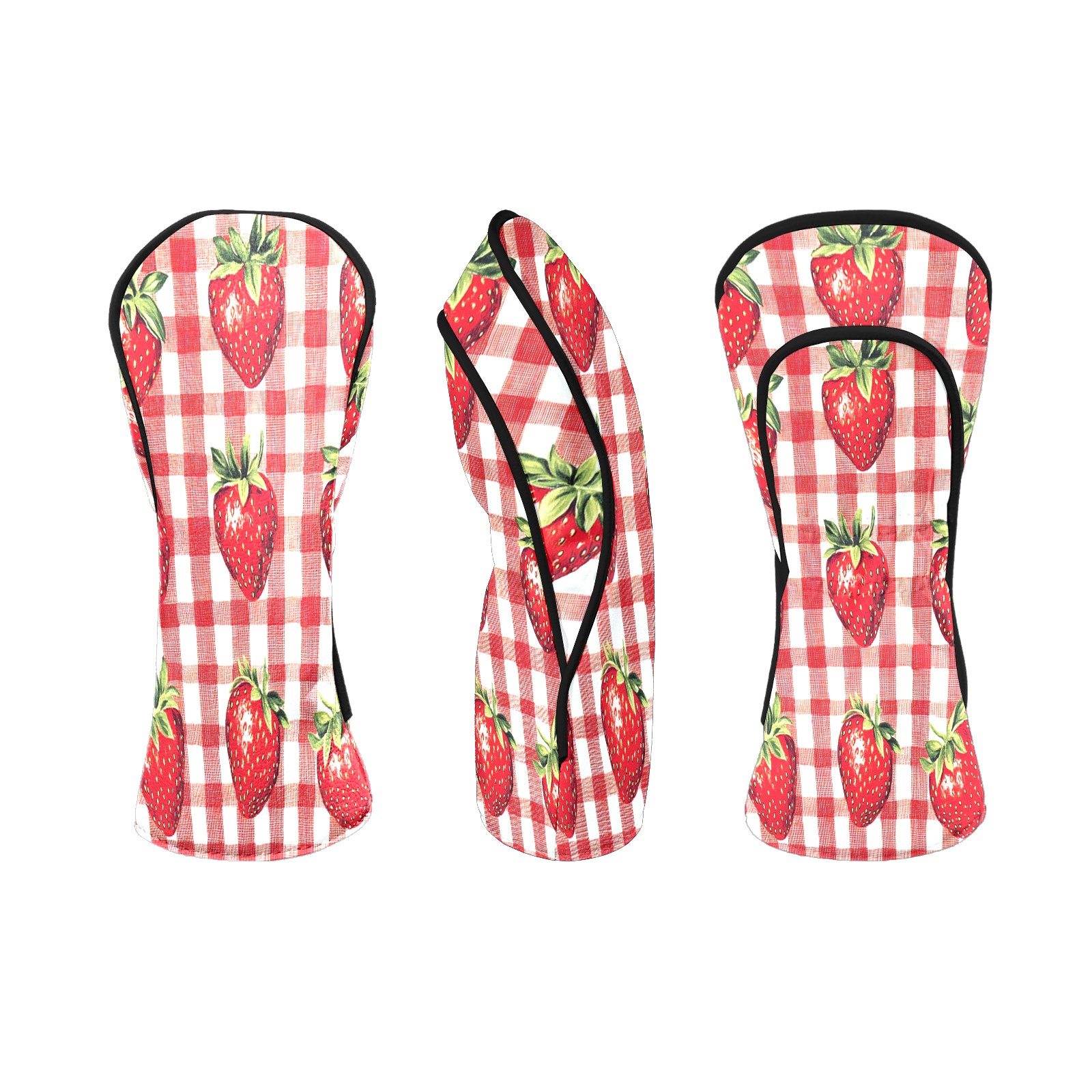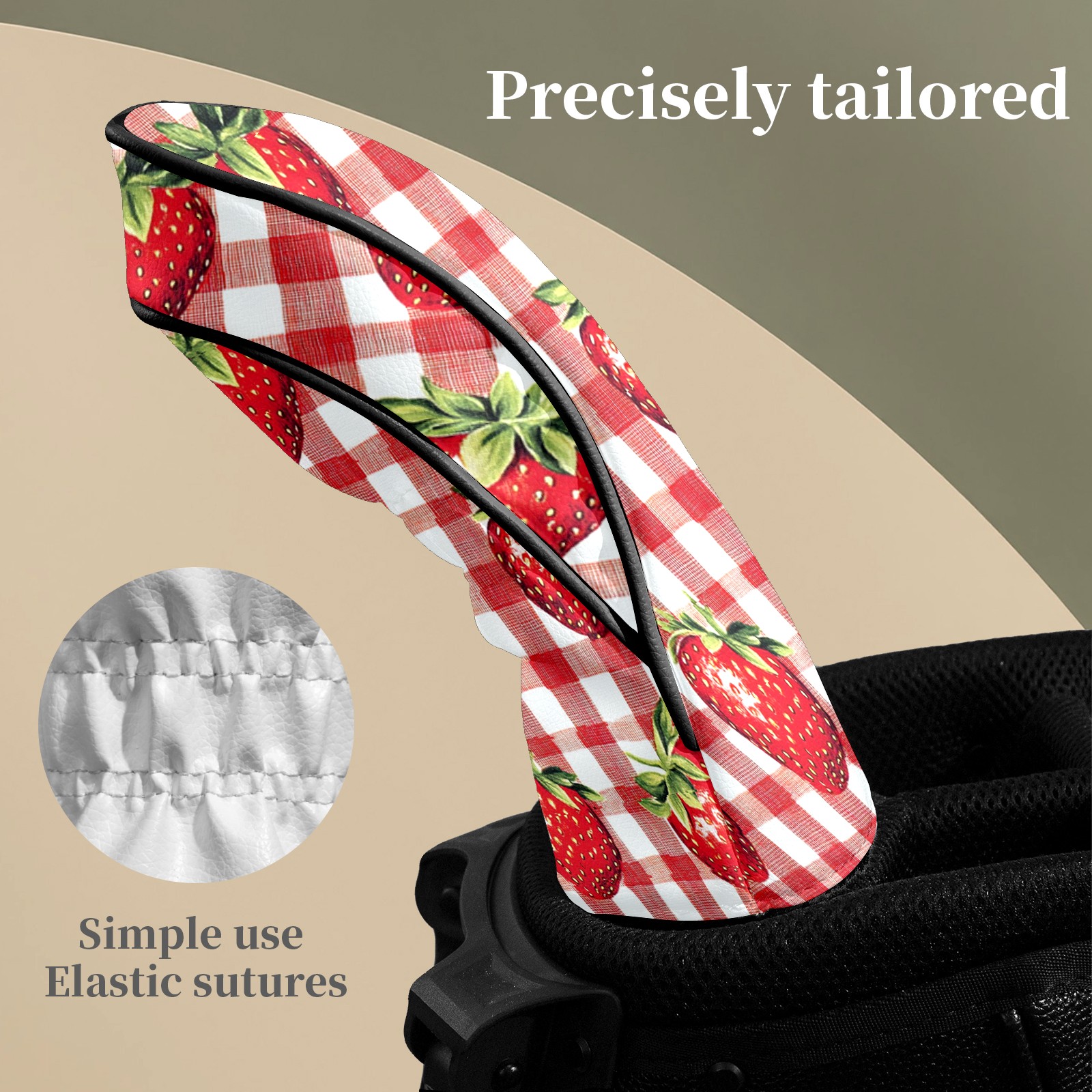 Golf Head Covers Fit Driver Headcover, Fairway Wood, and Hybrid Covers for Strawberry Checkered Pattern Design, Waterproof PU Leather, Classic Golf Gift & Accessories for Golfers