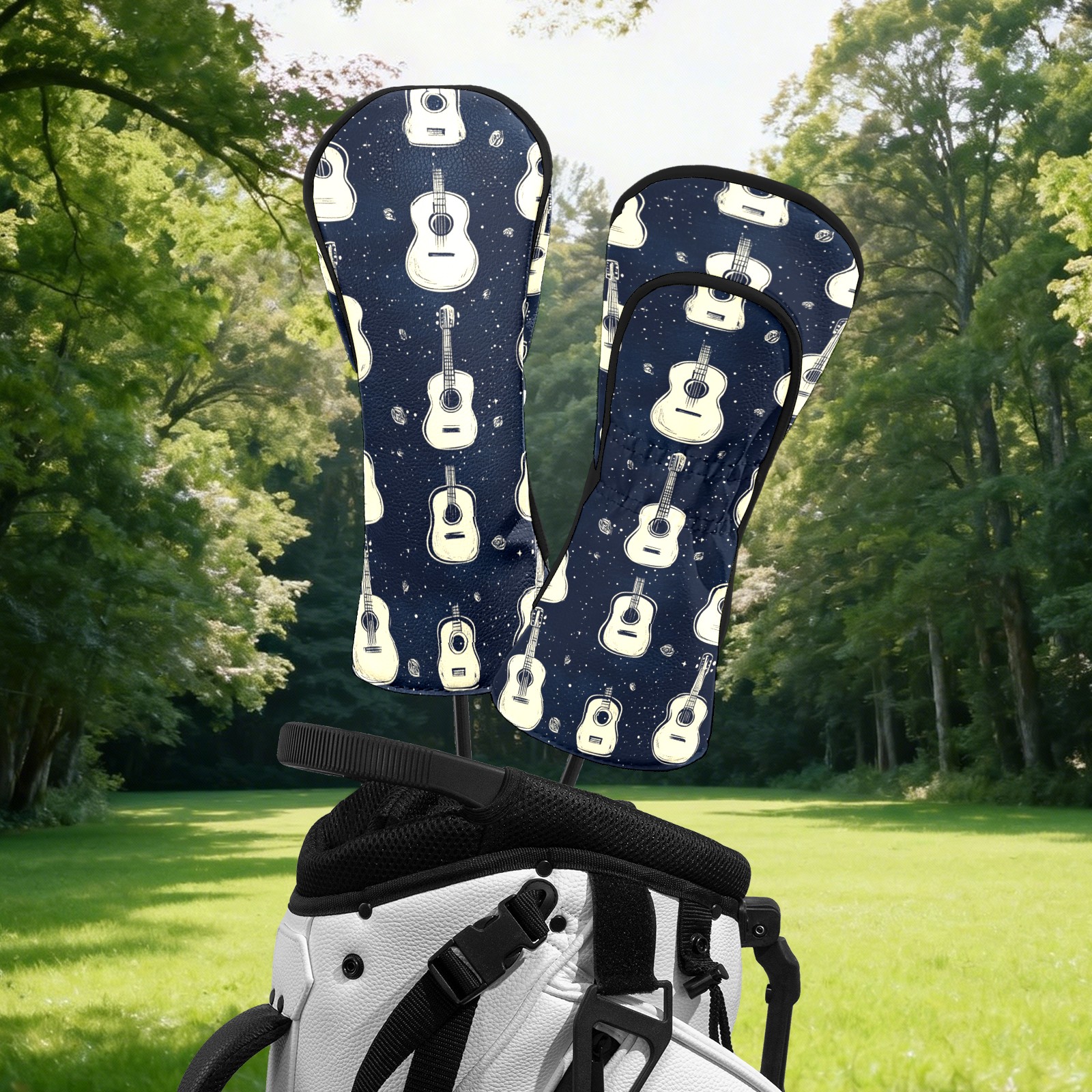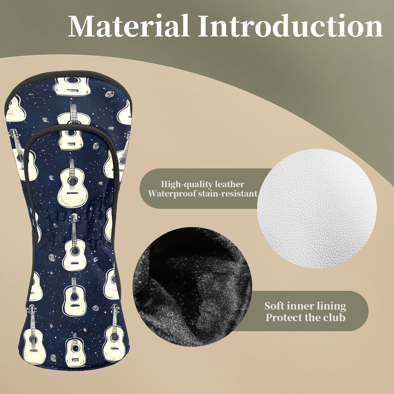 Golf Head Covers Fit Driver Headcover, Fairway Wood, and Hybrid Covers for Guitar Pattern Design, Waterproof PU Leather, Classic Golf Gift & Accessories for Golfers