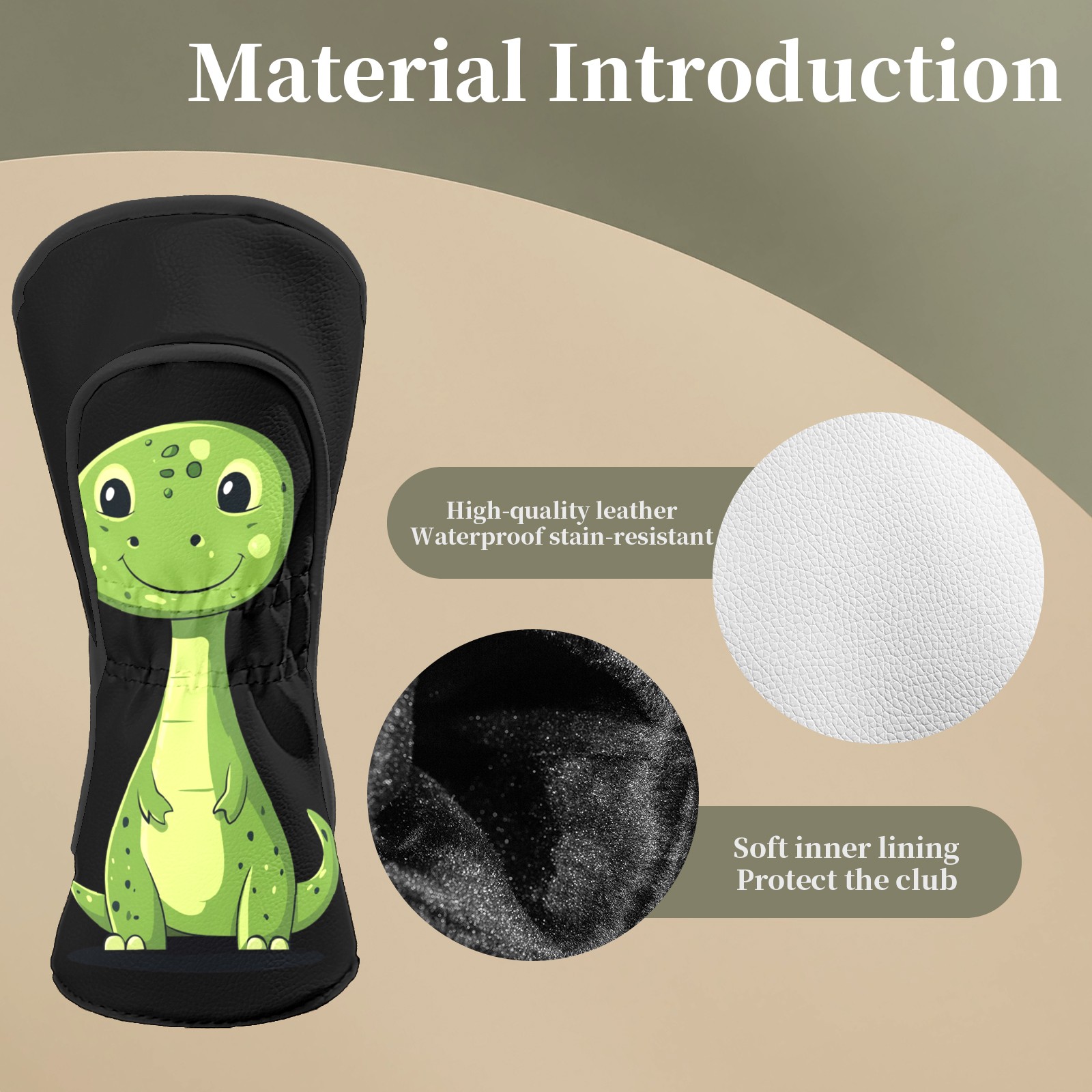Golf Head Covers Fit Driver Headcover, Fairway Wood, and Hybrid Covers for Cute Dinosaur Design, Waterproof PU Leather, Classic Golf Gift & Accessories for Golfers