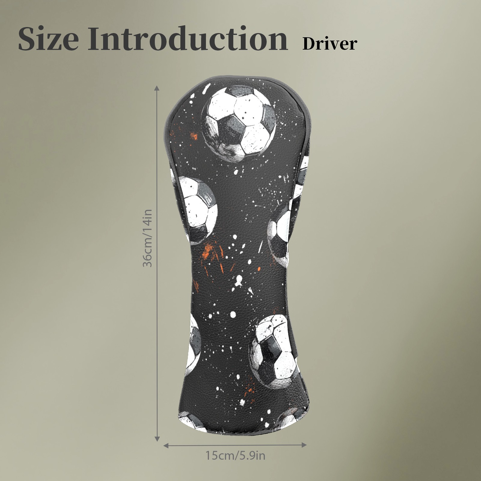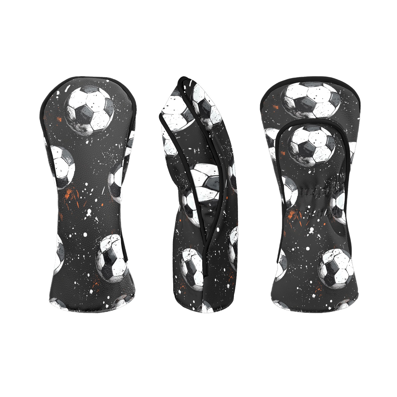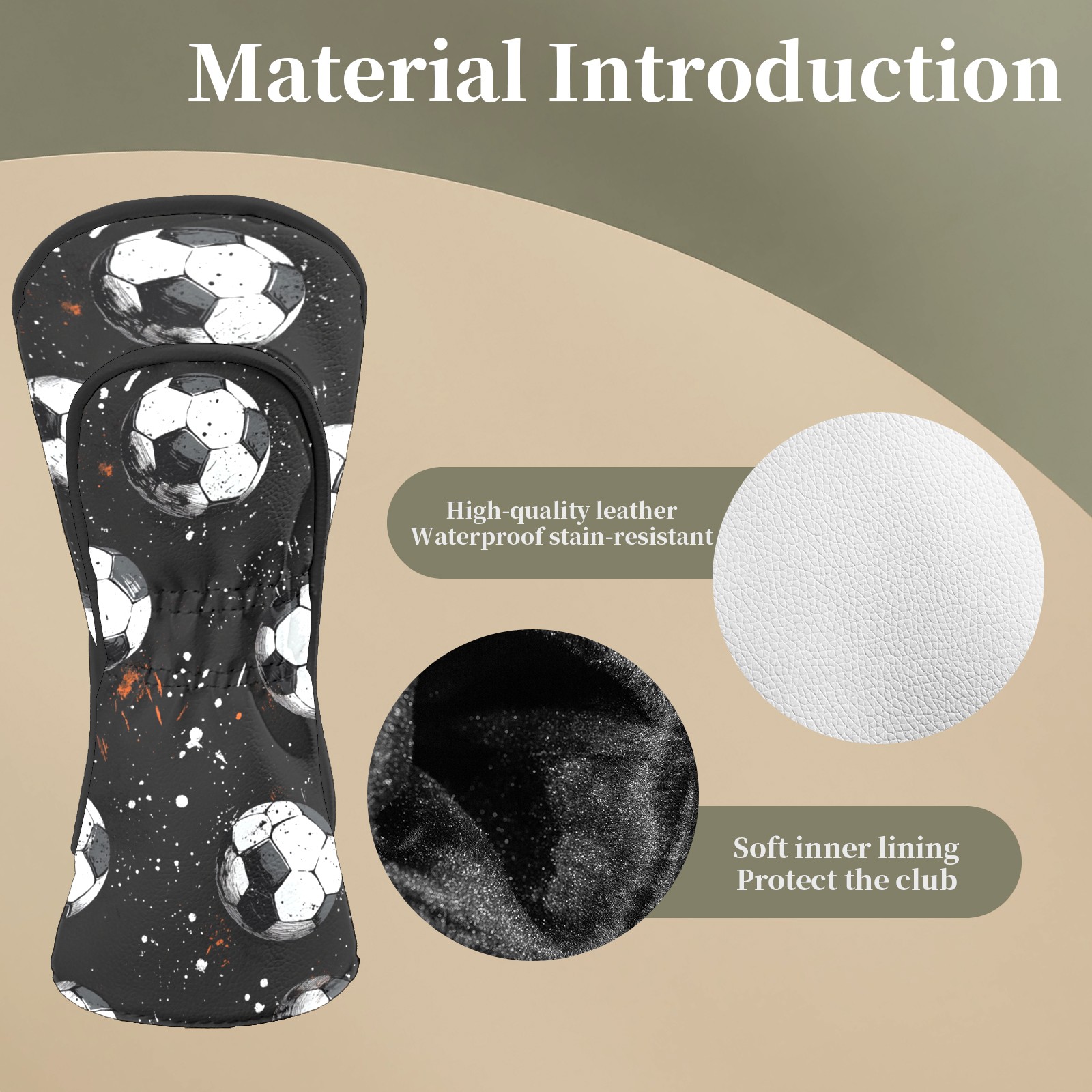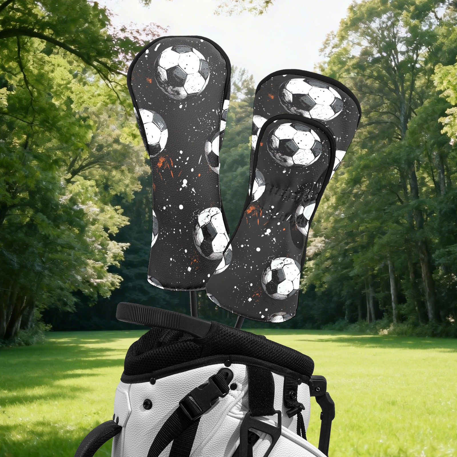 Golf Head Covers Fit Driver Headcover, Fairway Wood, and Hybrid Covers for Football Pattern Design, Waterproof PU Leather, Classic Golf Gift & Accessories for Golfers