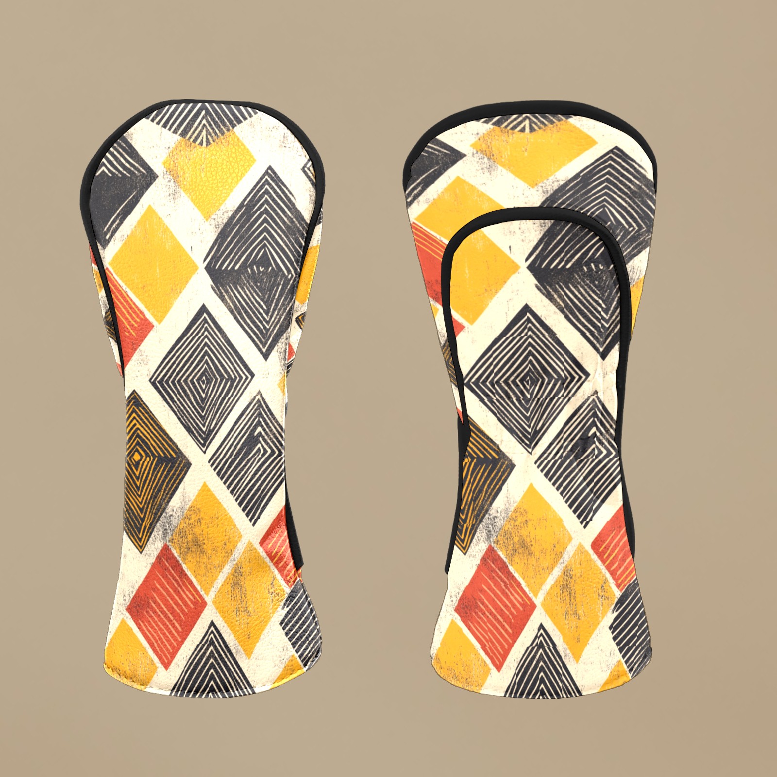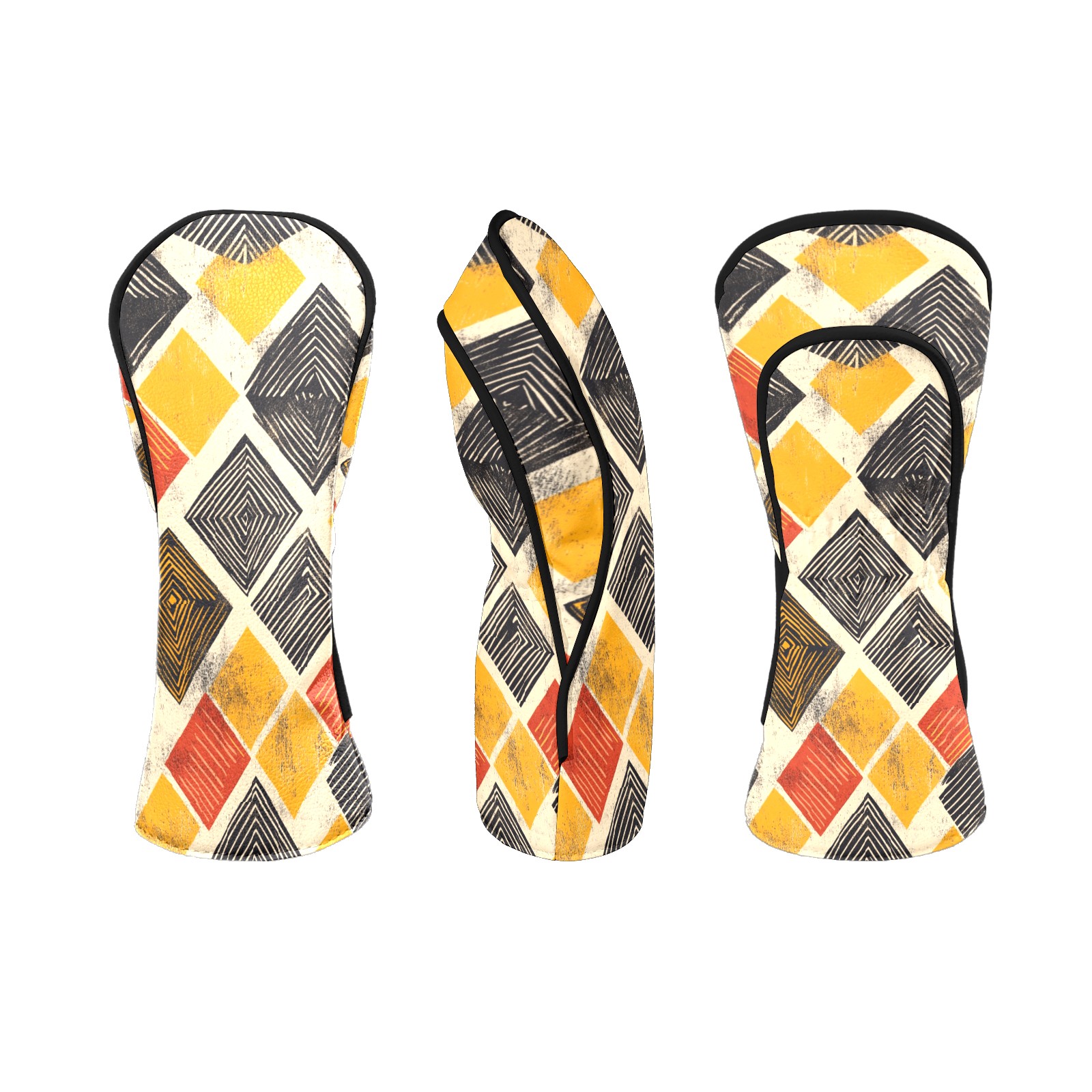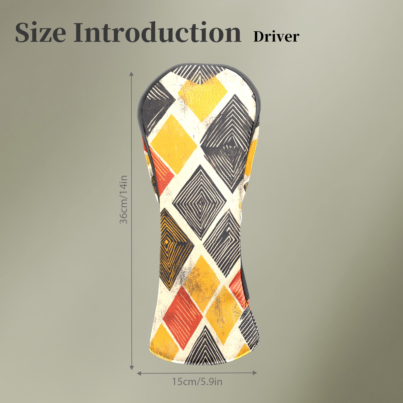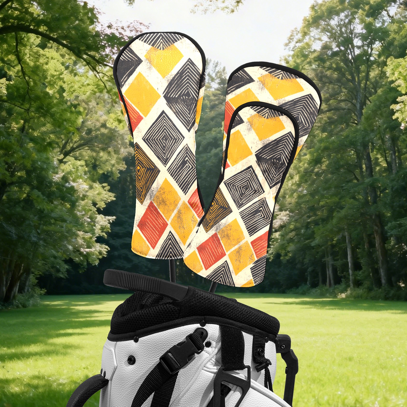 Golf Head Covers Fit Driver Headcover, Fairway Wood, and Hybrid Covers for Yellow Square Pattern Design, Waterproof PU Leather, Classic Golf Gift & Accessories for Golfers
