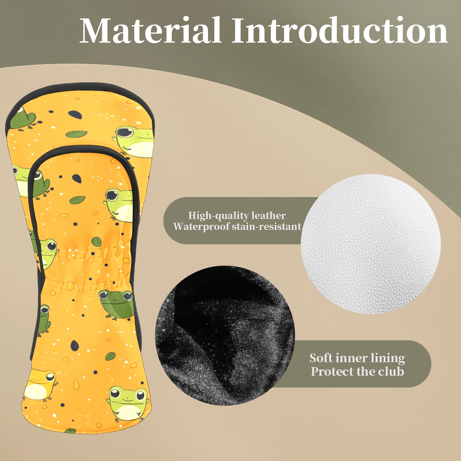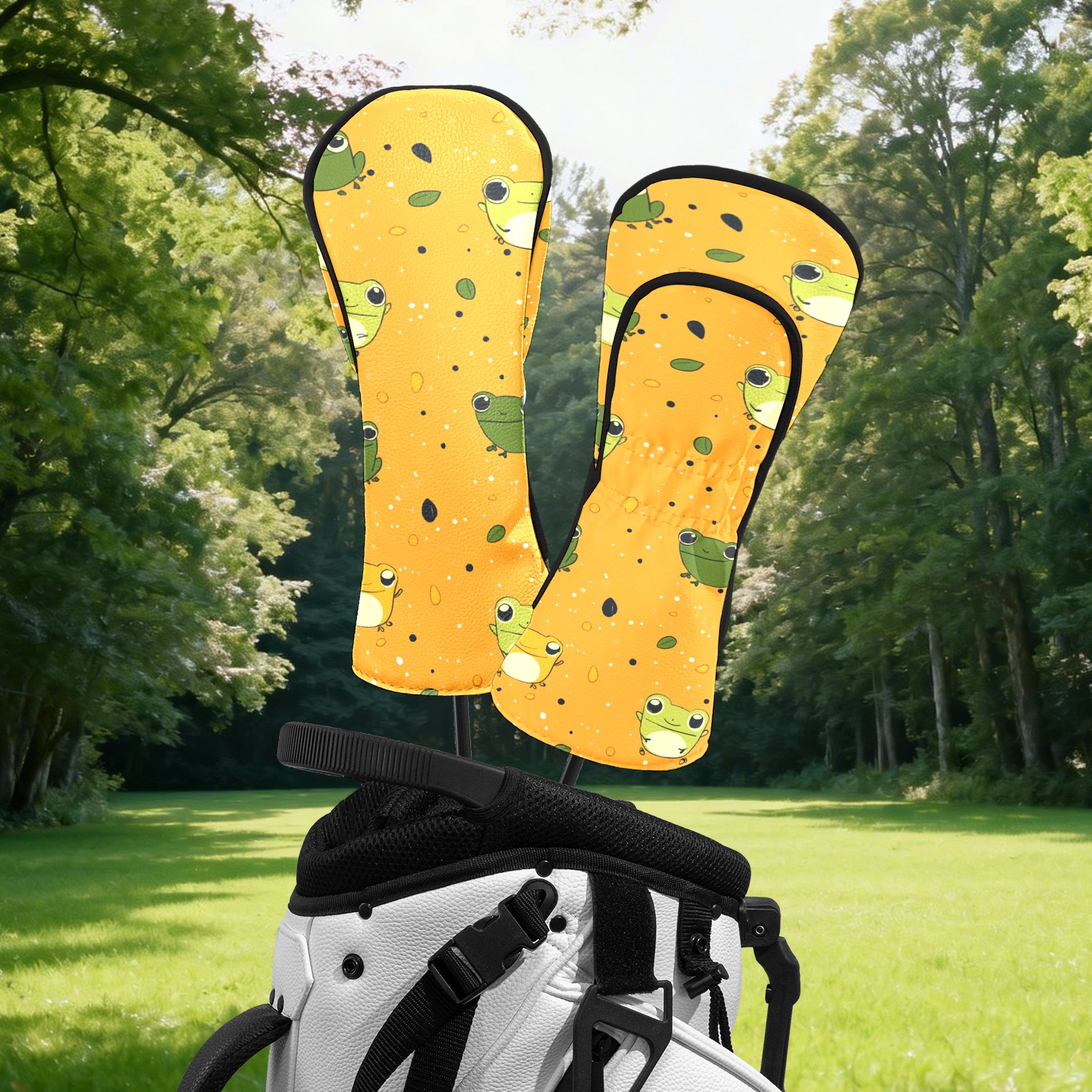 Golf Head Covers Fit Driver Headcover, Fairway Wood, and Hybrid Covers for Frog Pattern Design, Waterproof PU Leather, Classic Golf Gift & Accessories for Golfers