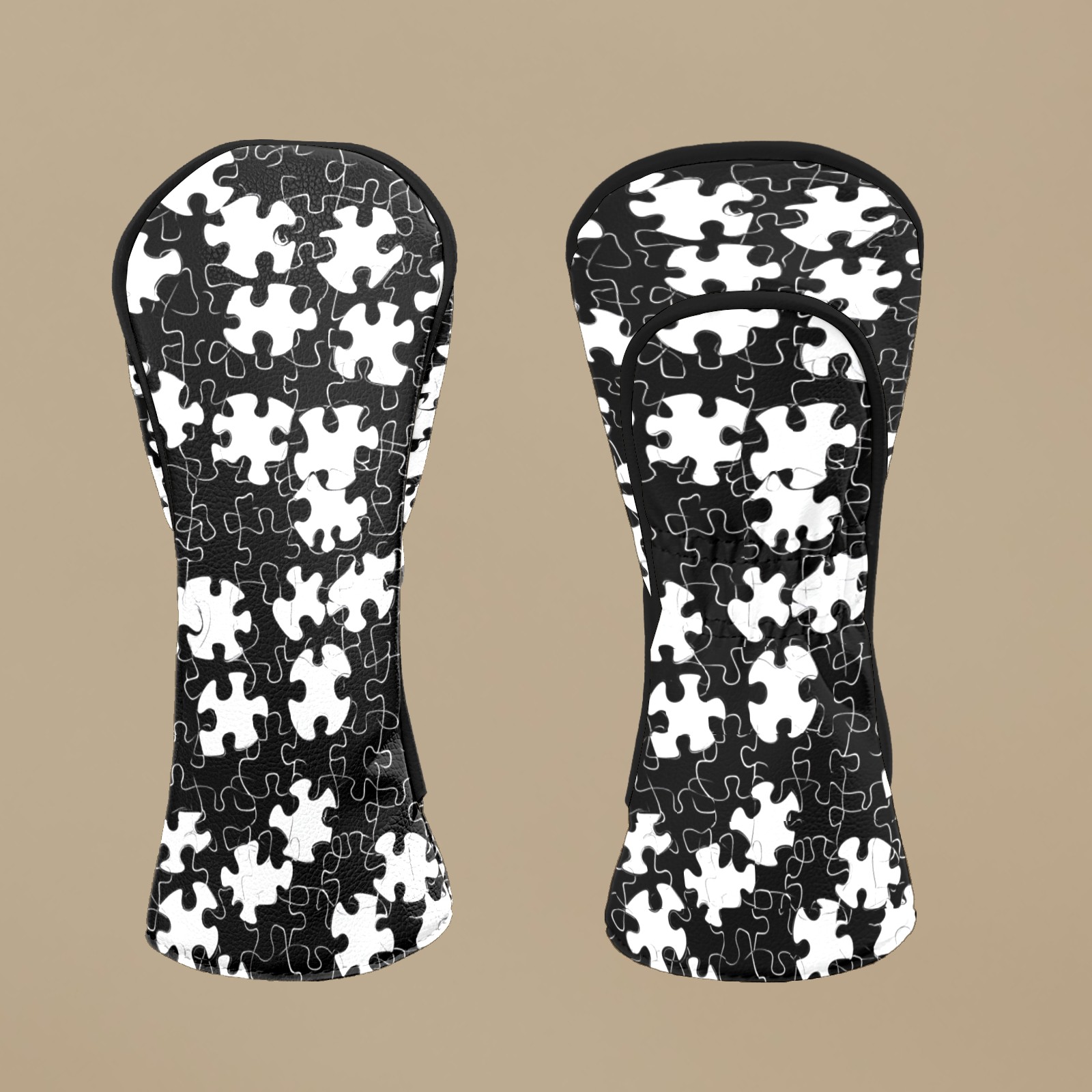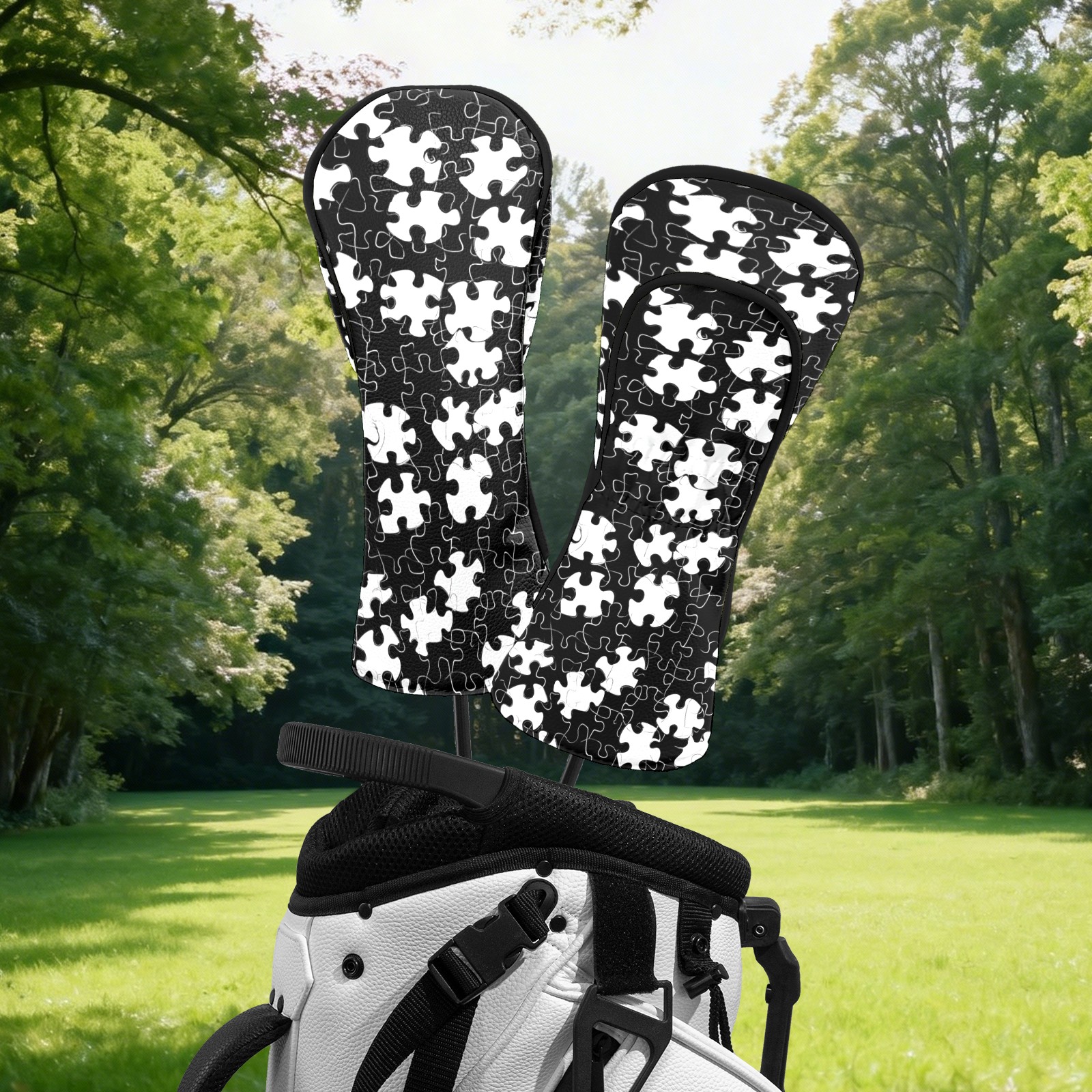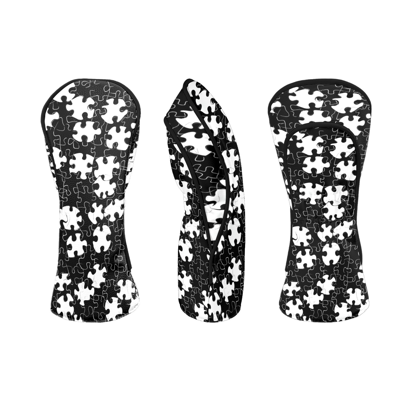 Golf Head Covers Fit Driver Headcover, Fairway Wood, and Hybrid Covers for Black Puzzle Pattern Design, Waterproof PU Leather, Classic Golf Gift & Accessories for Golfers