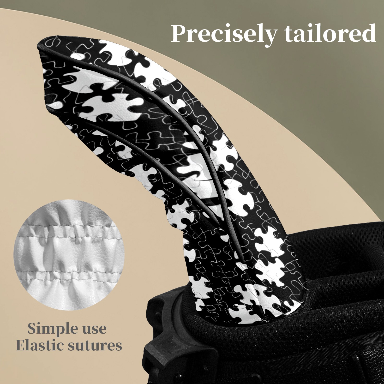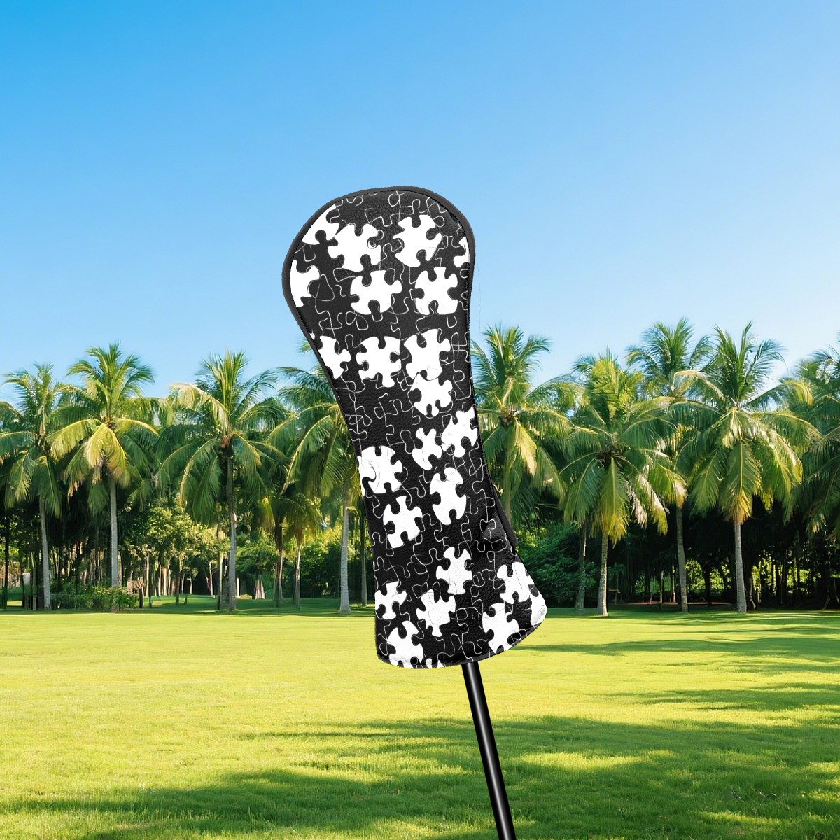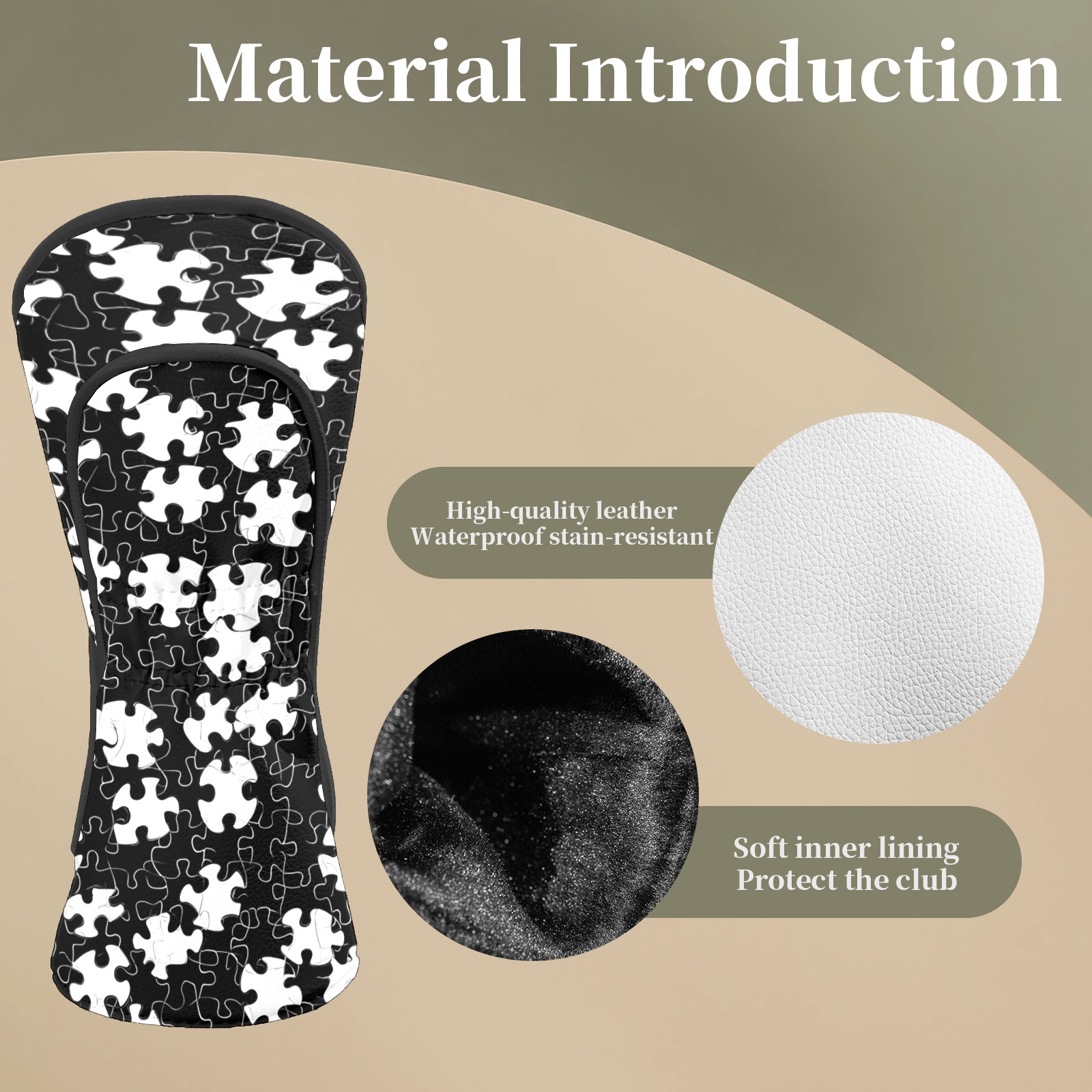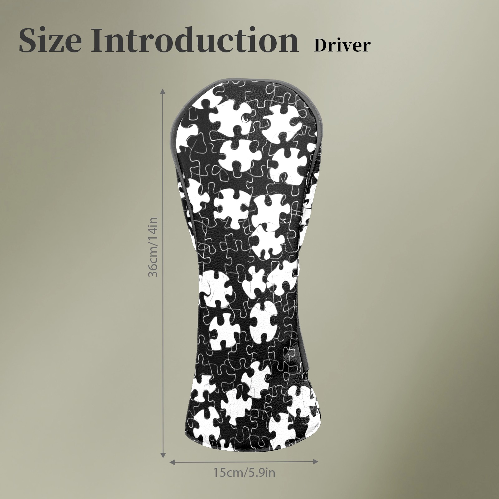 Golf Head Covers Fit Driver Headcover, Fairway Wood, and Hybrid Covers for Black Puzzle Pattern Design, Waterproof PU Leather, Classic Golf Gift & Accessories for Golfers