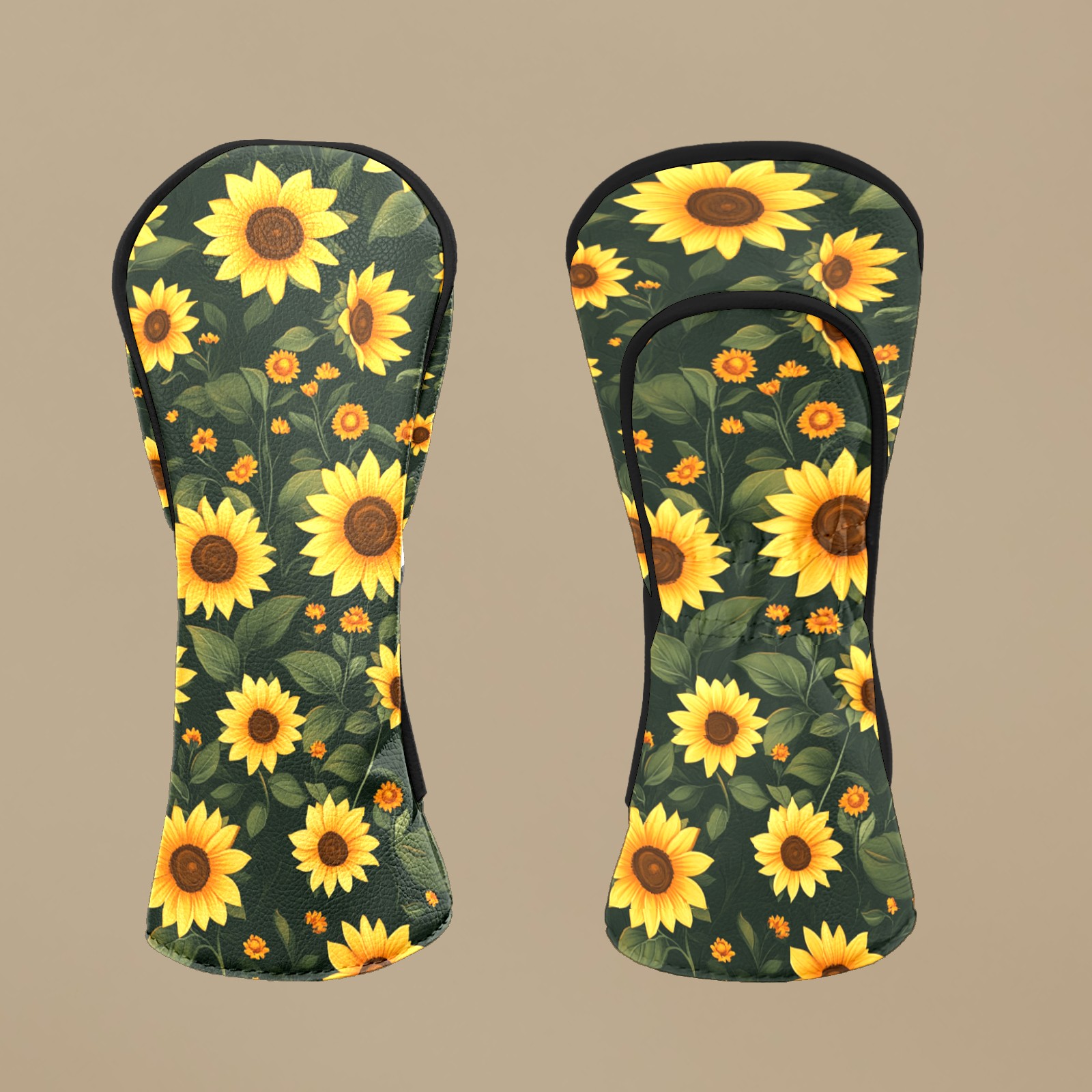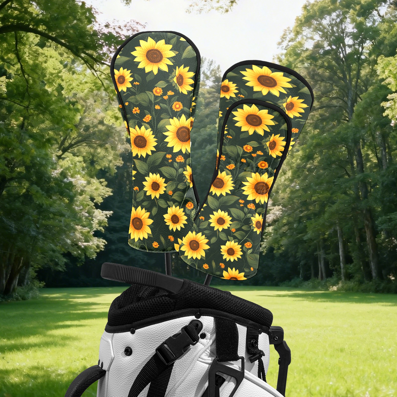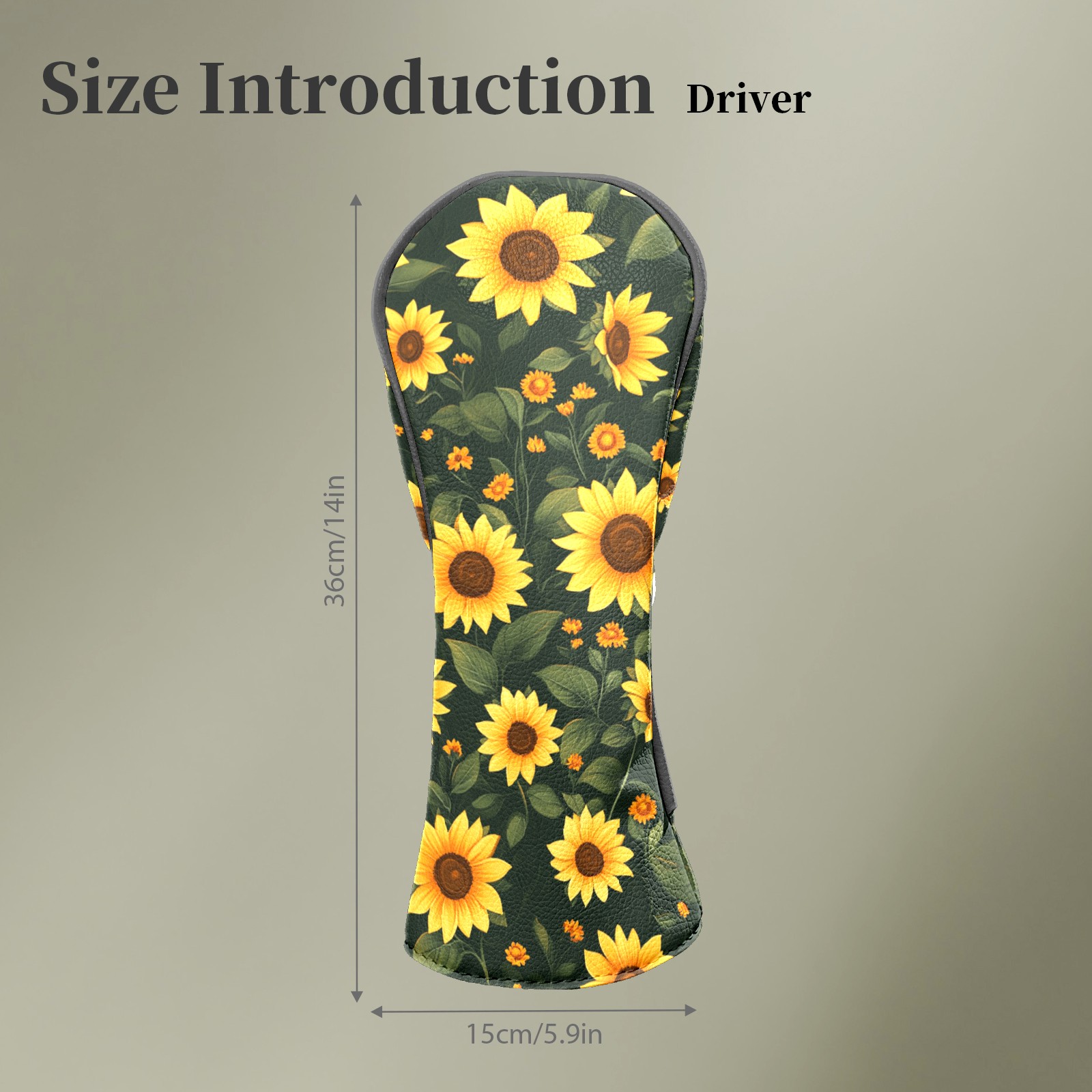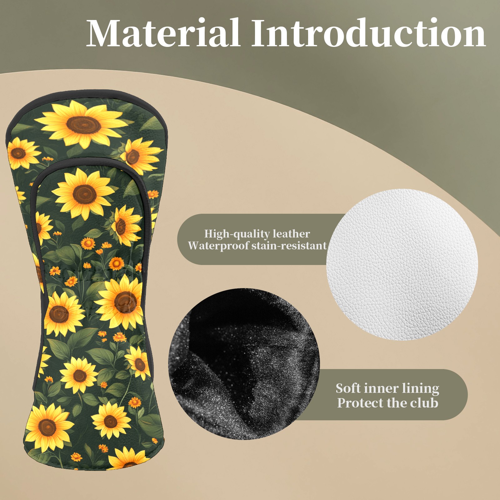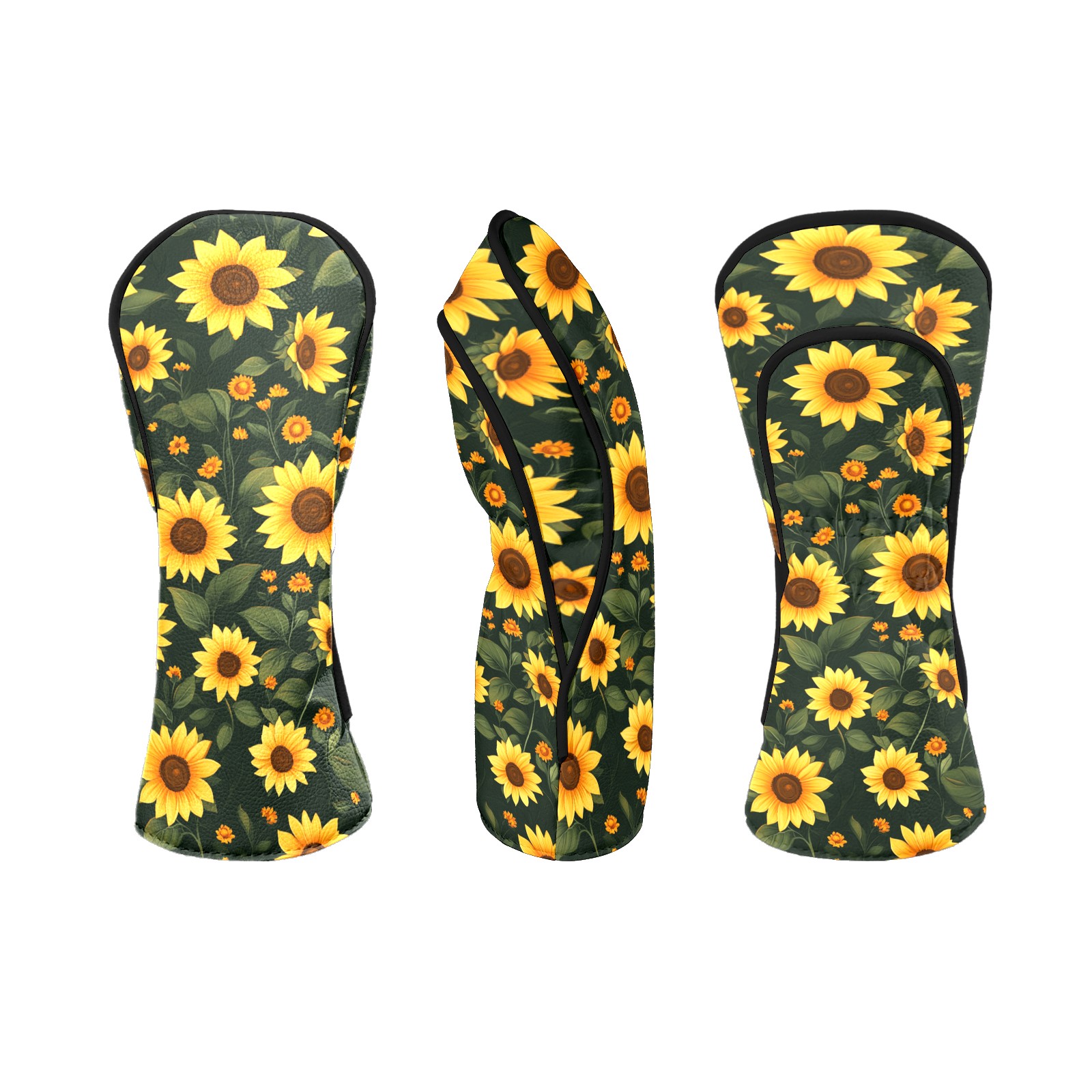 Golf Head Covers Fit Driver Headcover, Fairway Wood, and Hybrid Covers for Yellow Flower Pattern Design, Waterproof PU Leather, Classic Golf Gift & Accessories for Golfers