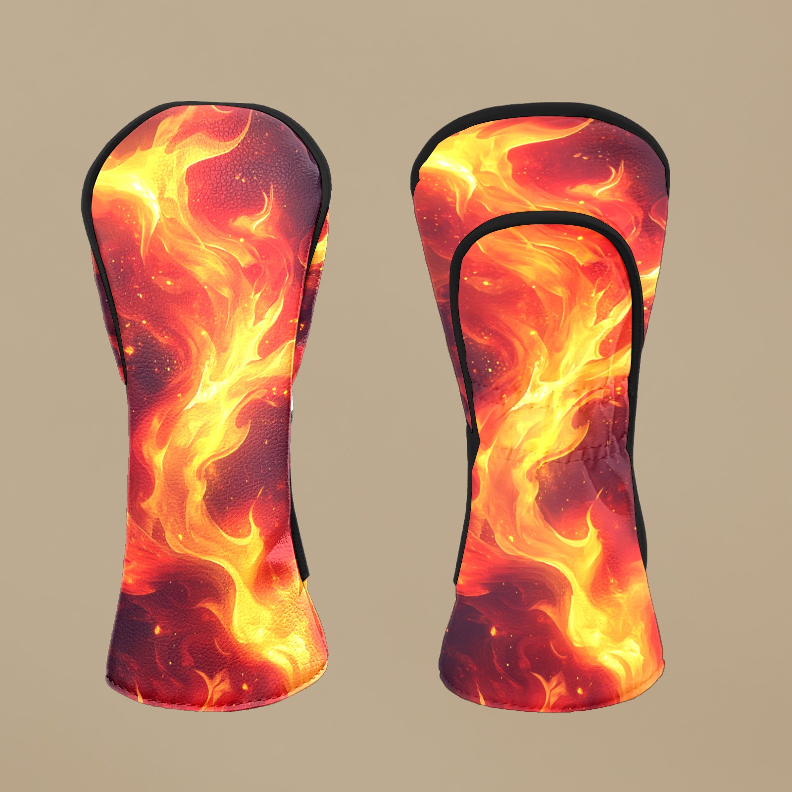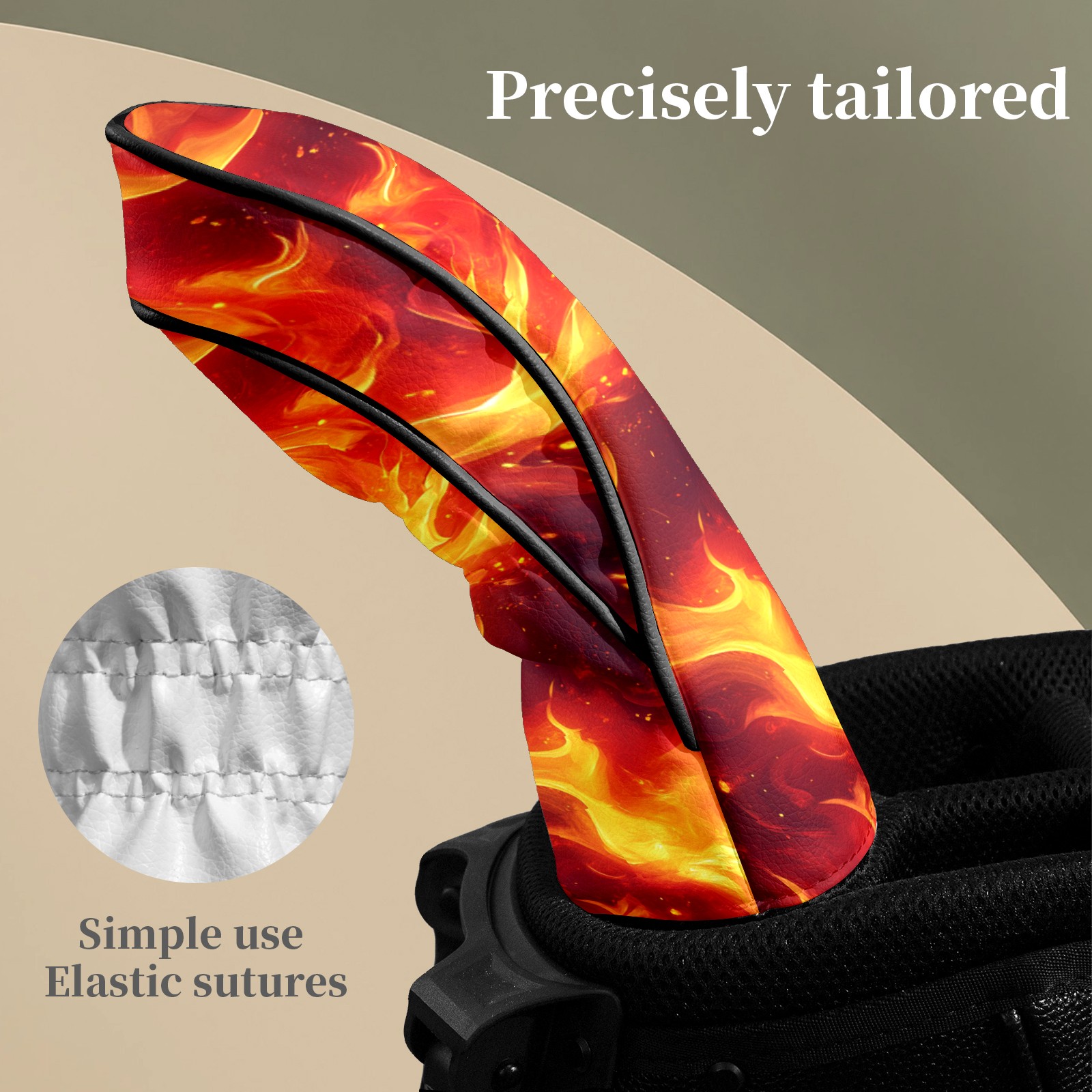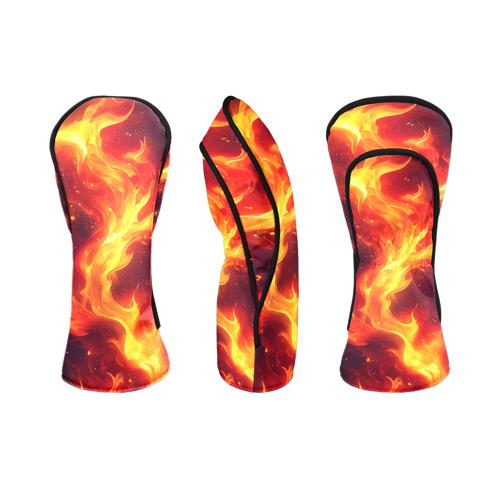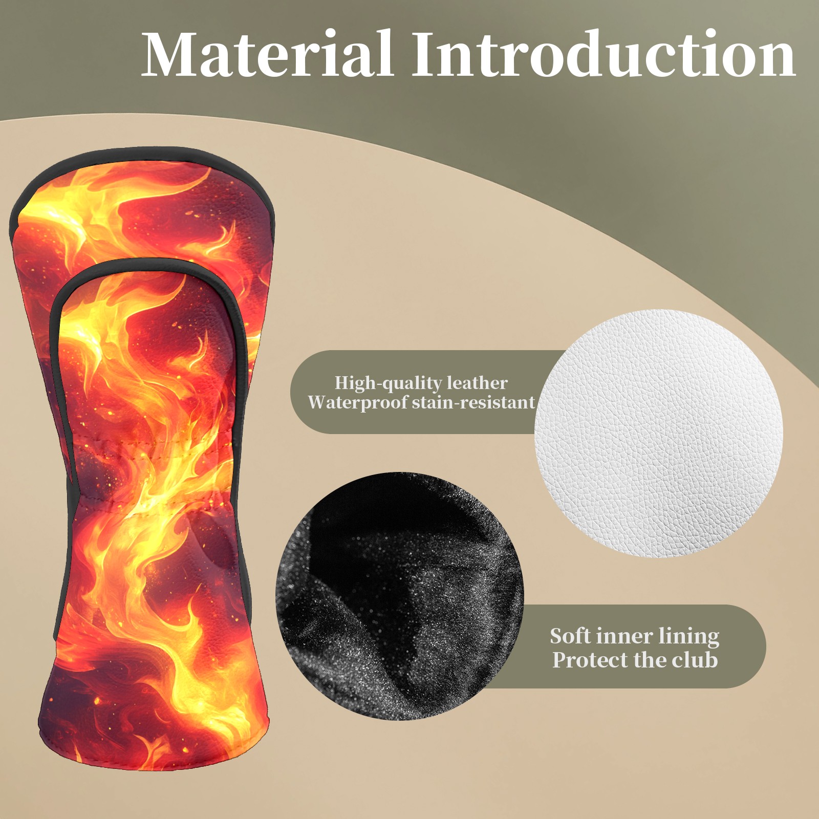 Golf Head Covers Fit Driver Headcover, Fairway Wood, and Hybrid Covers for Flame Pattern Design, Waterproof PU Leather, Classic Golf Gift & Accessories for Golfers