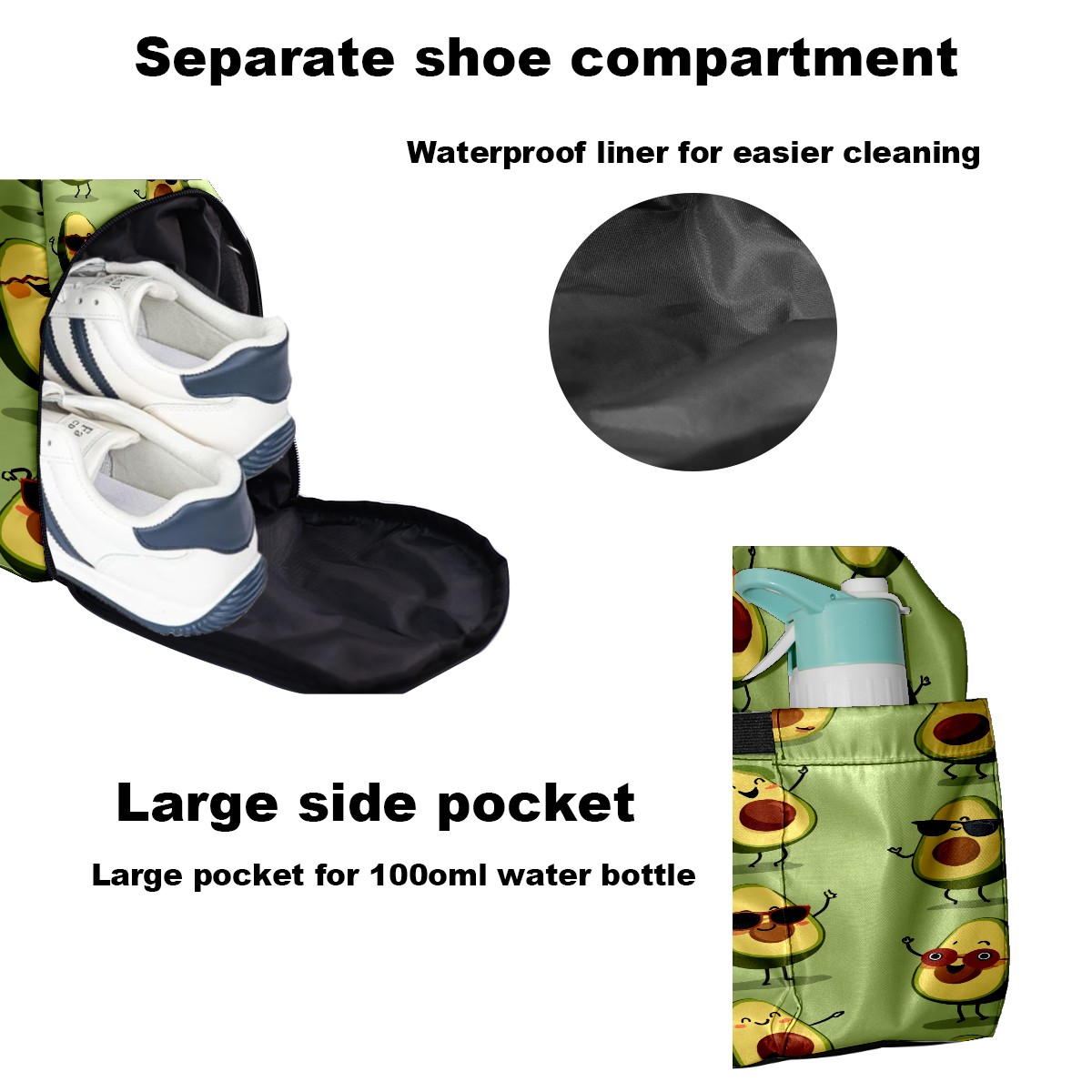 Counullo Cool Avocado Green Gym Bag for Women & Tennis Bag, Large Sports Duffel Bag Waterproof with Ventilated Shoe Compartment & Front Racket Sleeve, Lightweight Travel Weekender Overnight Bag