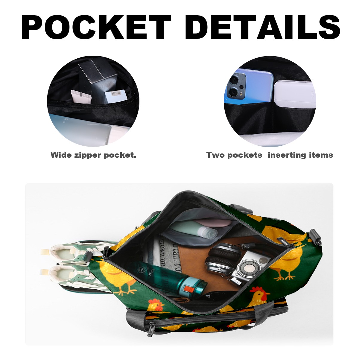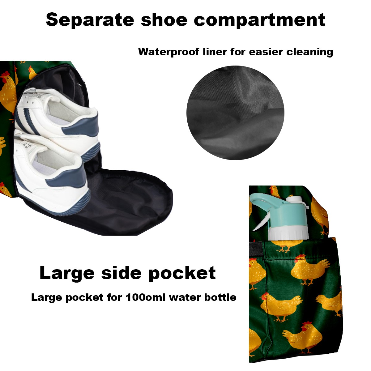 Counullo Lively Chick Green Gym Bag for Women & Tennis Bag, Large Sports Duffel Bag Waterproof with Ventilated Shoe Compartment & Front Racket Sleeve, Lightweight Travel Weekender Overnight Bag