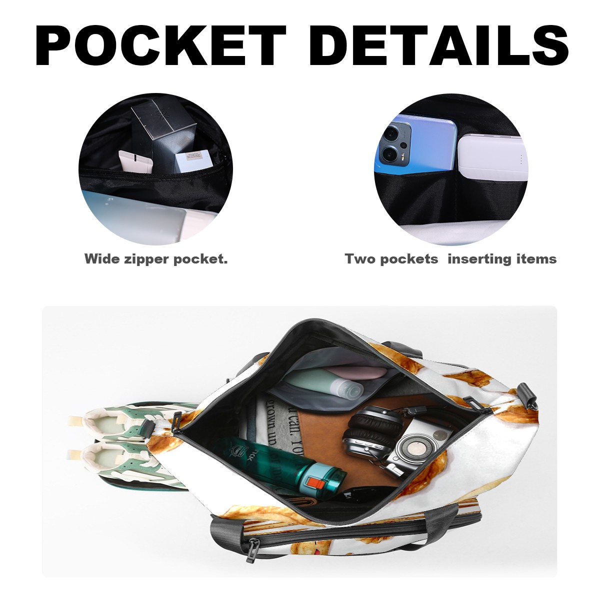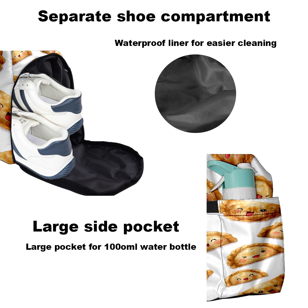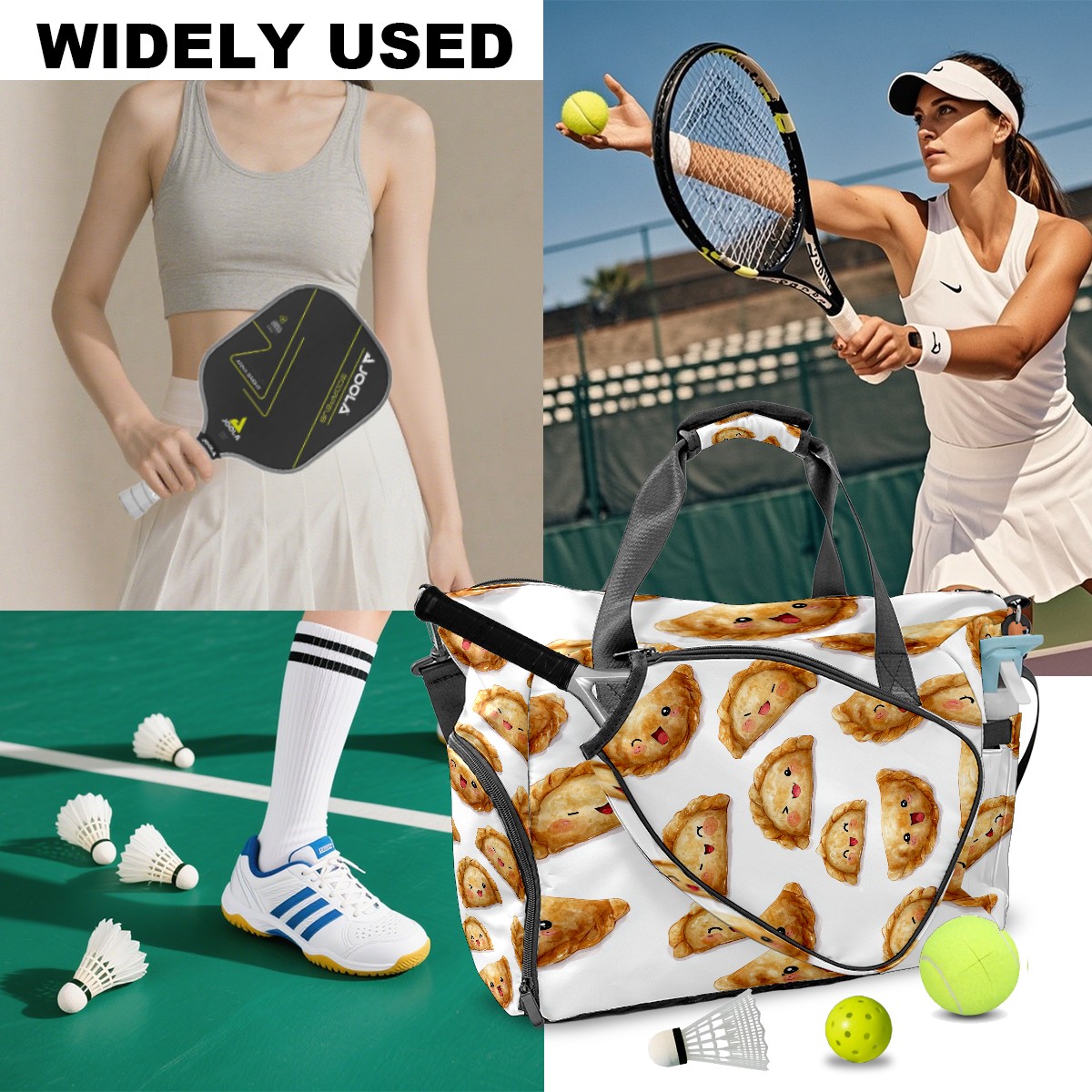 Counullo Sweet Pierogi Yellow Gym Bag for Women & Tennis Bag, Large Sports Duffel Bag Waterproof with Ventilated Shoe Compartment & Front Racket Sleeve, Lightweight Travel Weekender Overnight Bag