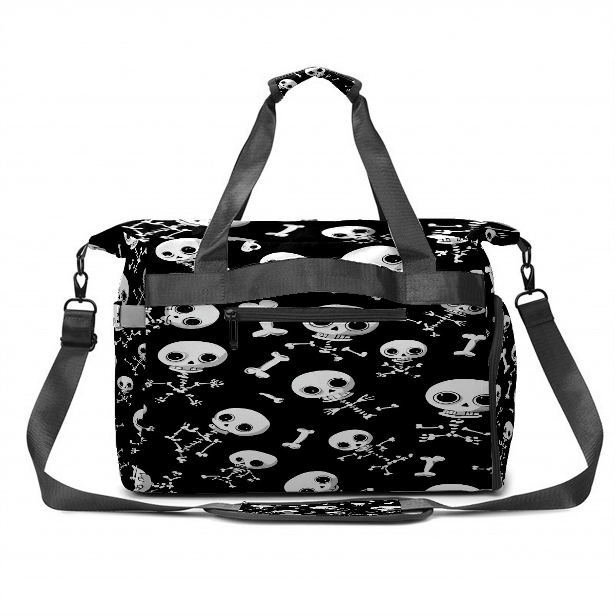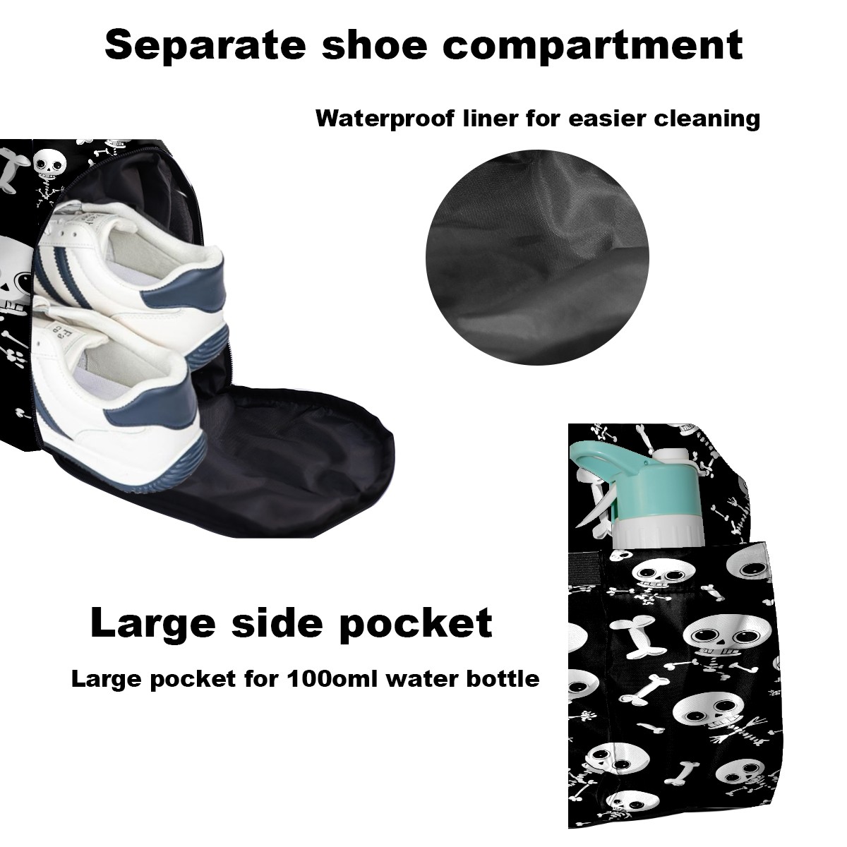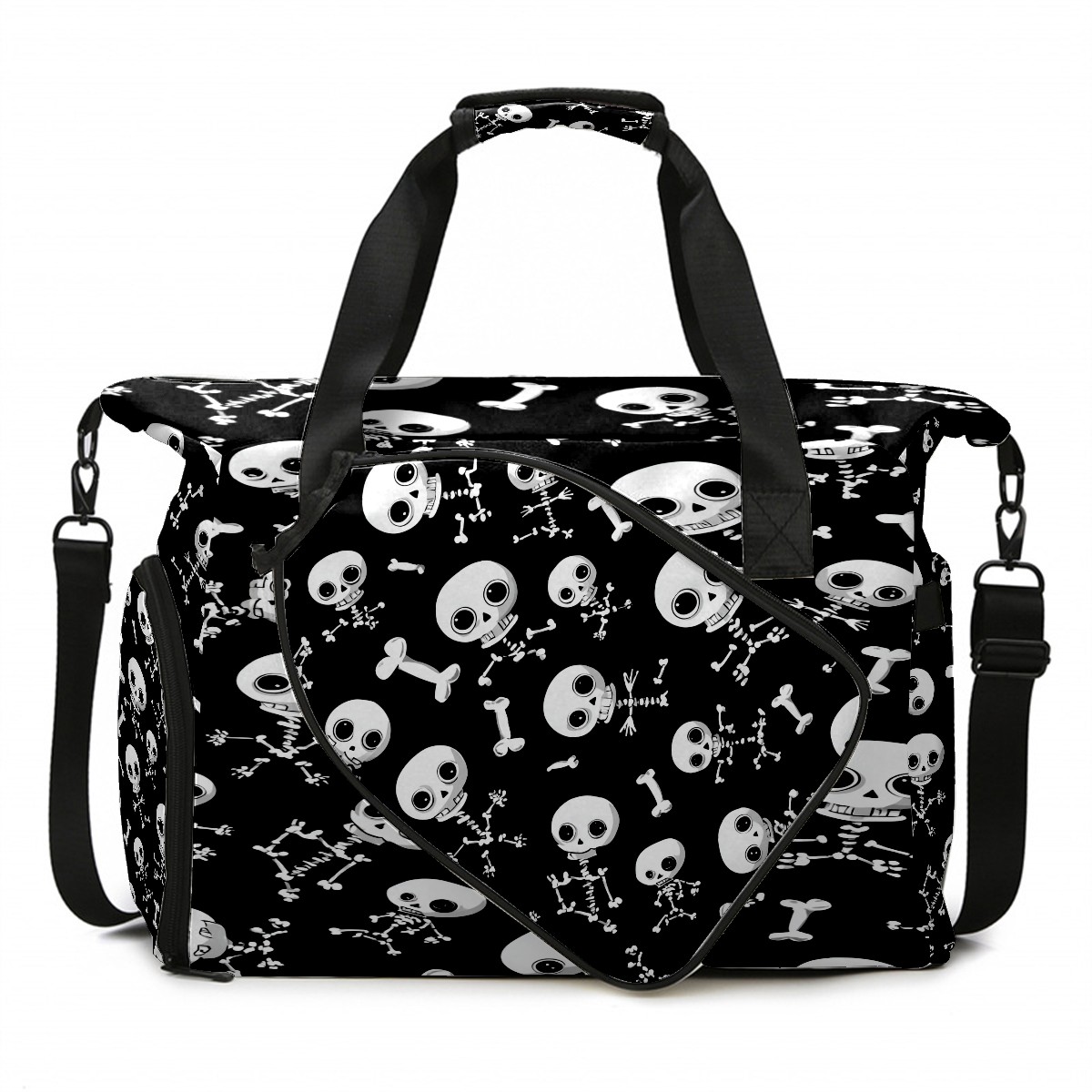 Counullo Cool Skull Black Gym Bag for Women & Tennis Bag, Large Sports Duffel Bag Waterproof with Ventilated Shoe Compartment & Front Racket Sleeve, Lightweight Travel Weekender Overnight Bag