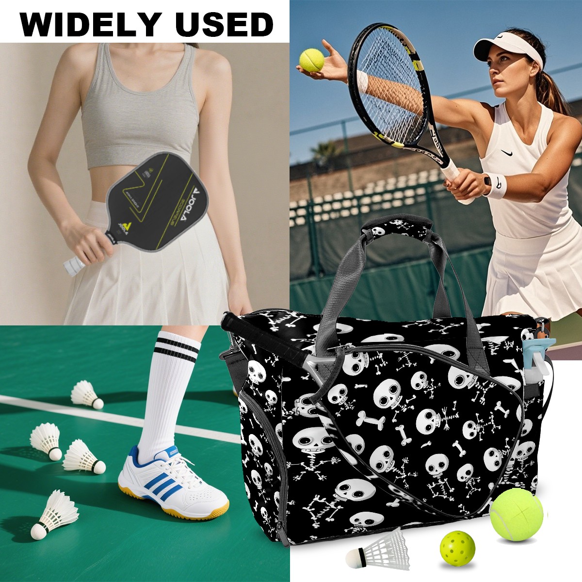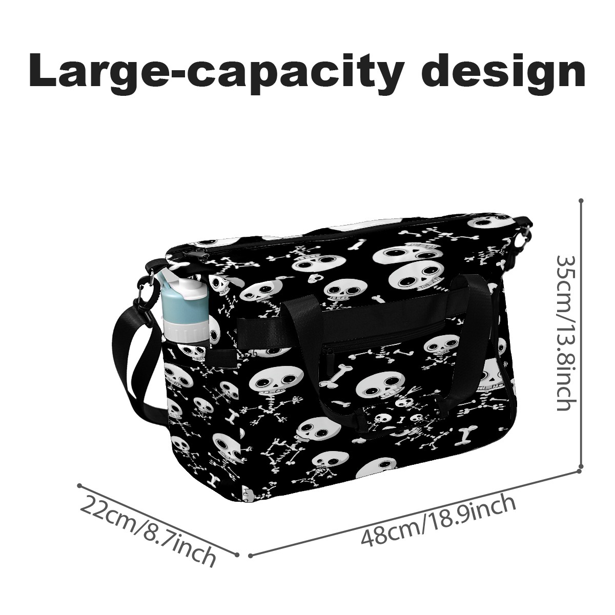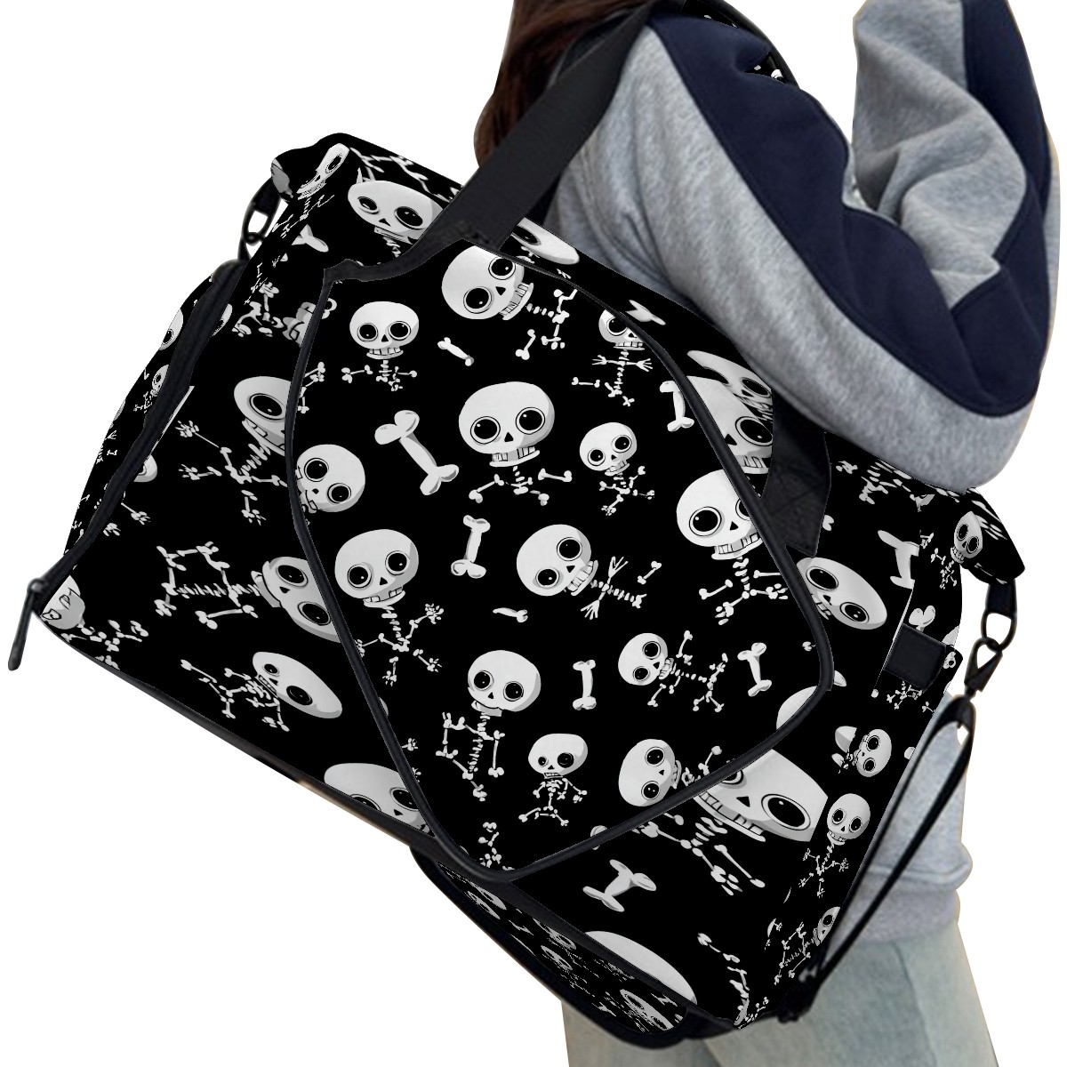 Counullo Cool Skull Black Gym Bag for Women & Tennis Bag, Large Sports Duffel Bag Waterproof with Ventilated Shoe Compartment & Front Racket Sleeve, Lightweight Travel Weekender Overnight Bag