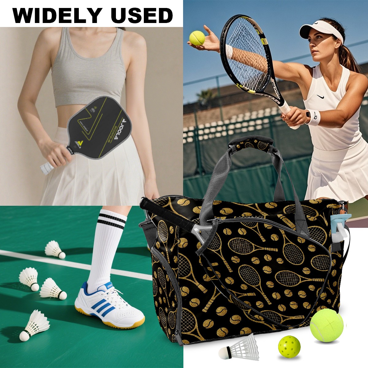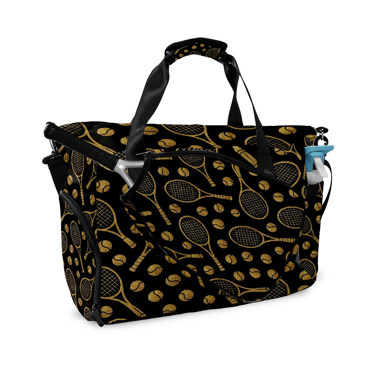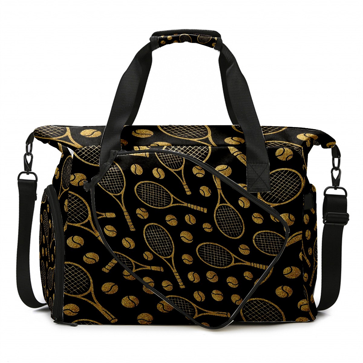 Counullo Luxury Racket Black Gym Bag for Women & Tennis Bag, Large Sports Duffel Bag Waterproof with Ventilated Shoe Compartment & Front Racket Sleeve, Lightweight Travel Weekender Overnight Bag