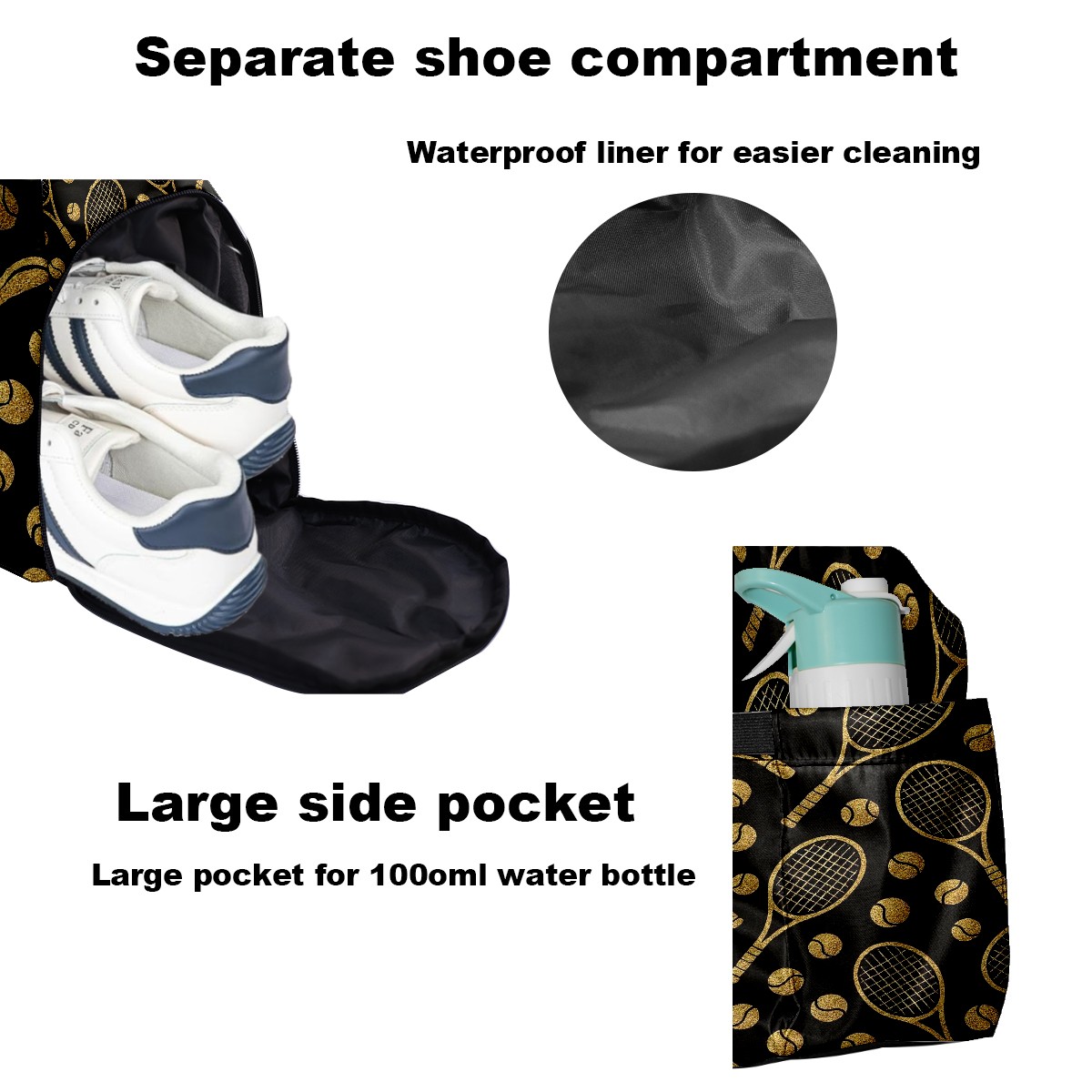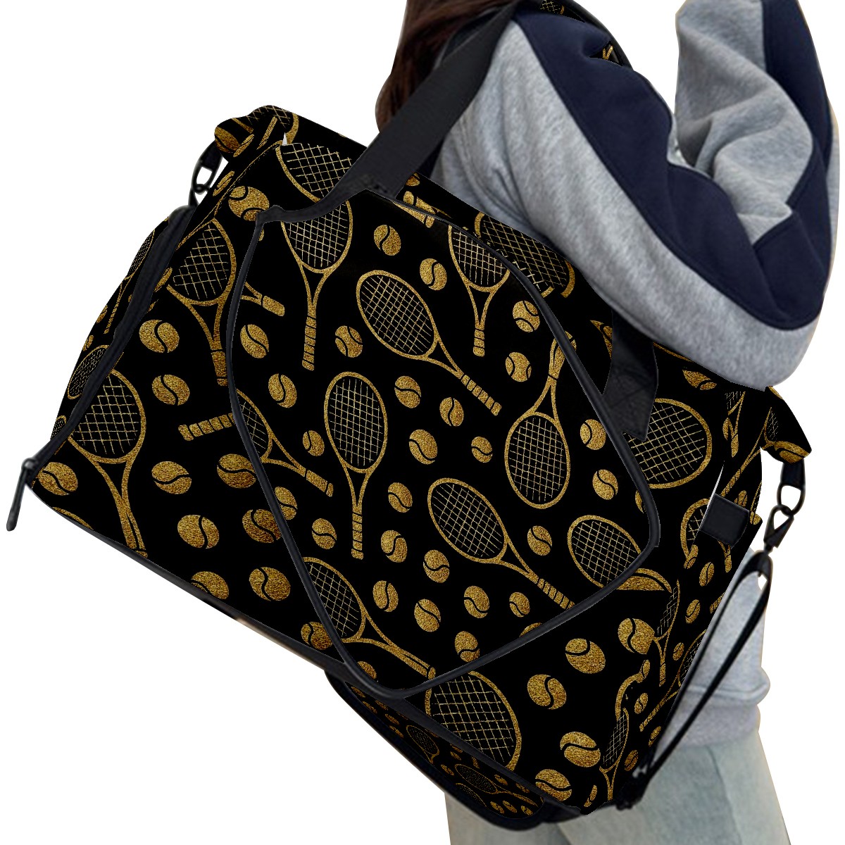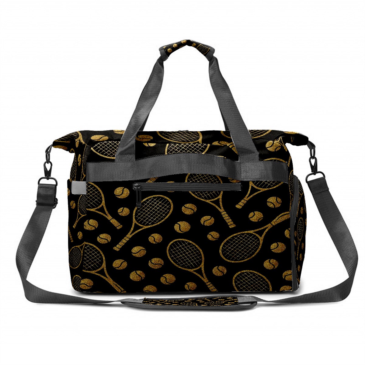 Counullo Luxury Racket Black Gym Bag for Women & Tennis Bag, Large Sports Duffel Bag Waterproof with Ventilated Shoe Compartment & Front Racket Sleeve, Lightweight Travel Weekender Overnight Bag