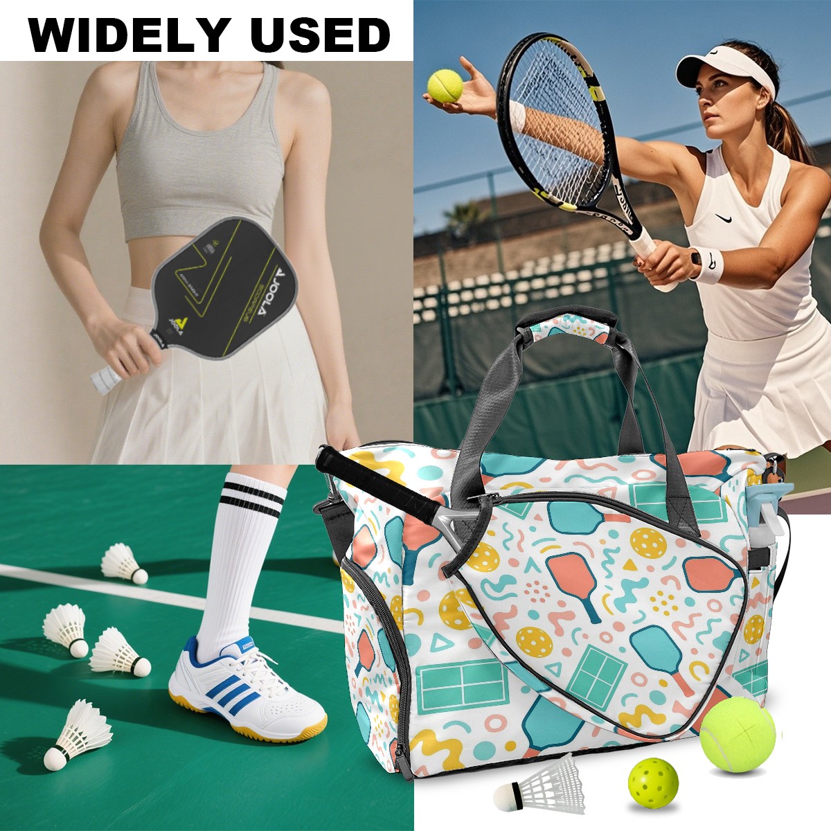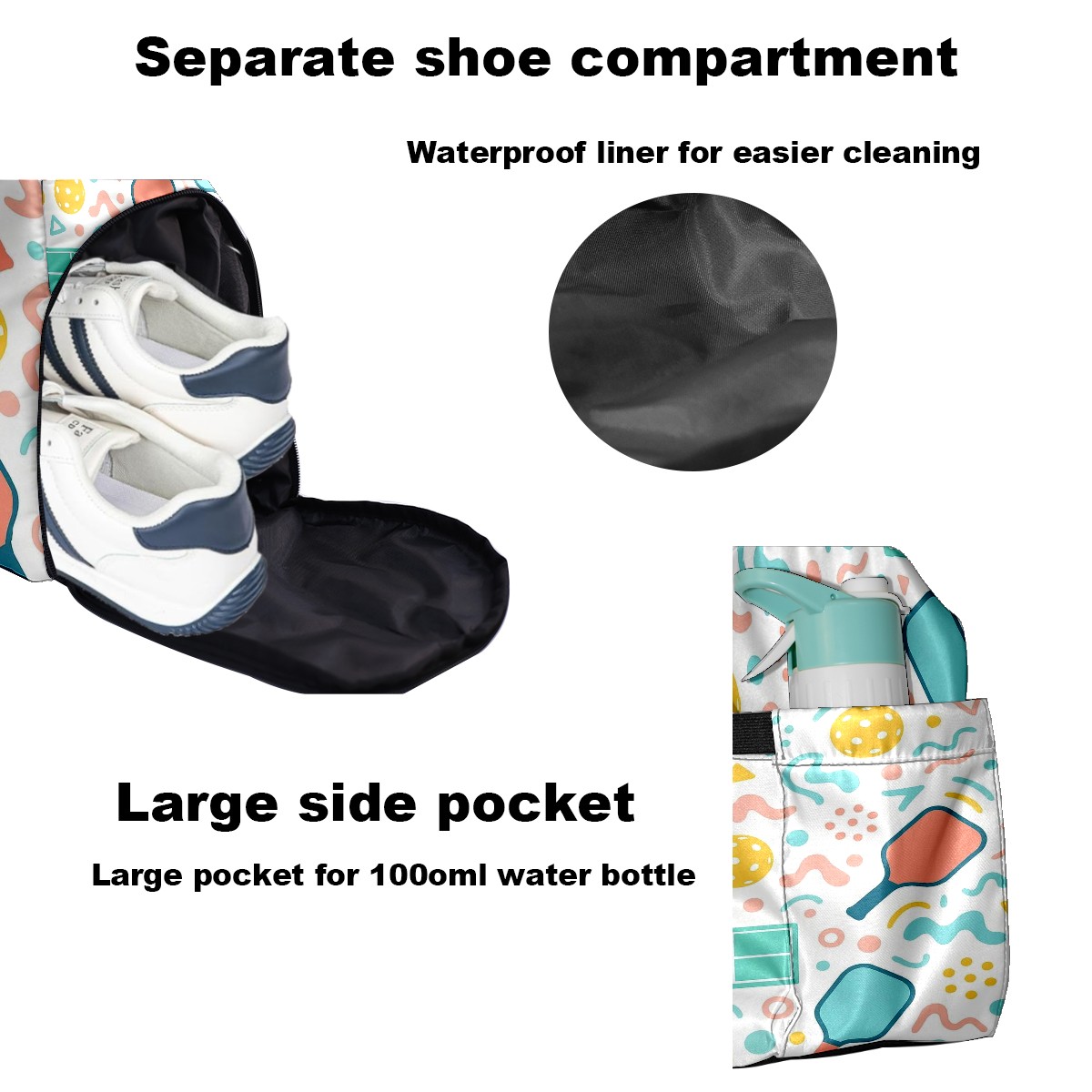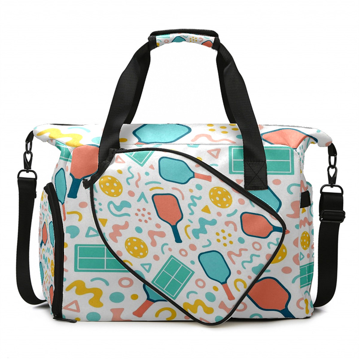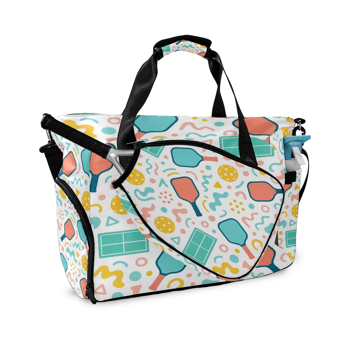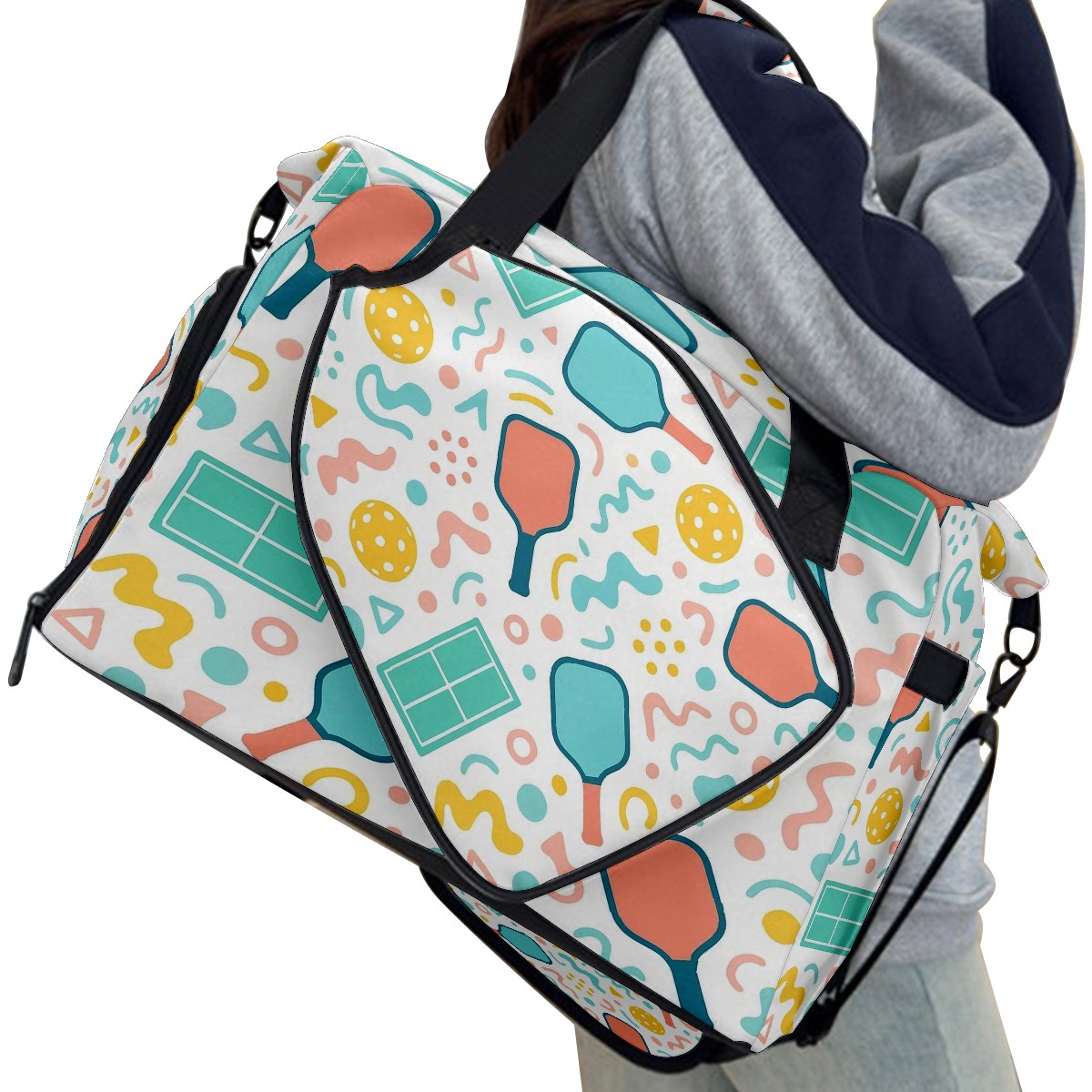 Counullo Playful Racket Pink Gym Bag for Women & Tennis Bag, Large Sports Duffel Bag Waterproof with Ventilated Shoe Compartment & Front Racket Sleeve, Lightweight Travel Weekender Overnight Bag