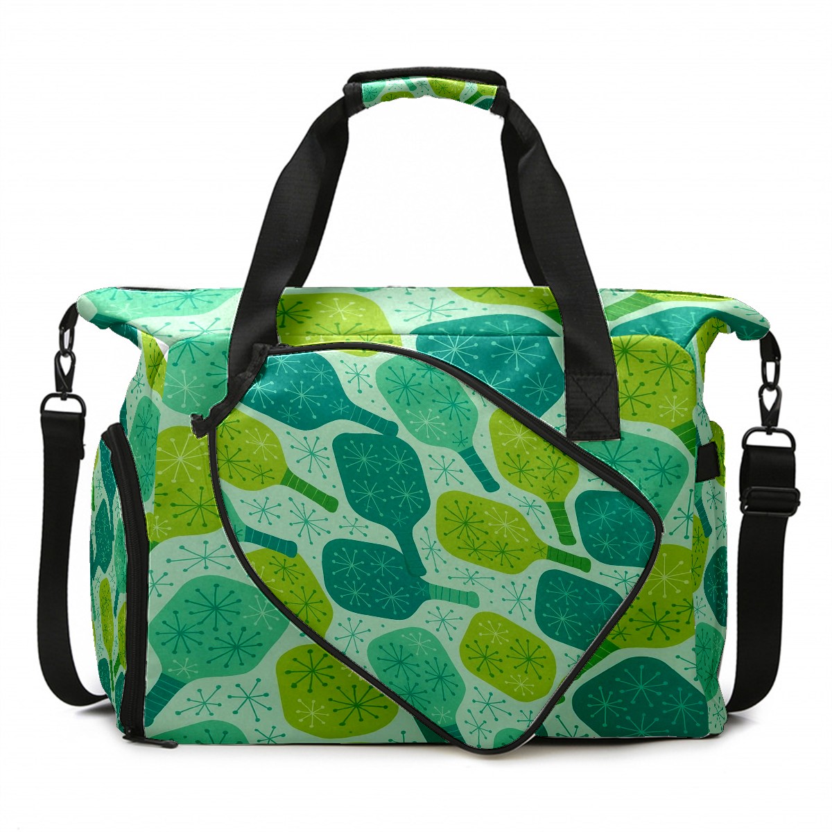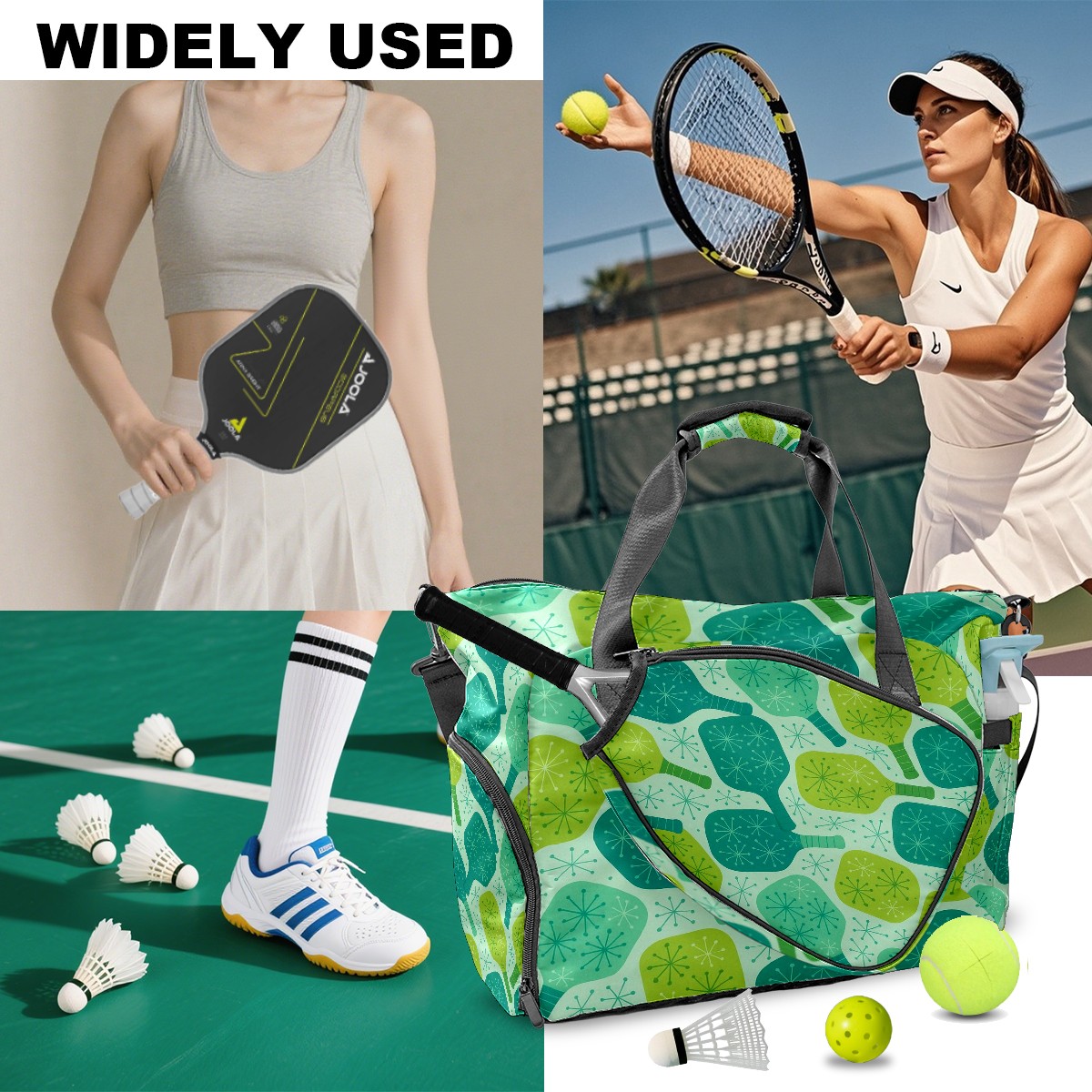 Counullo Vibrant Racket Green Gym Bag for Women & Tennis Bag, Large Sports Duffel Bag Waterproof with Ventilated Shoe Compartment & Front Racket Sleeve, Lightweight Travel Weekender Overnight Bag