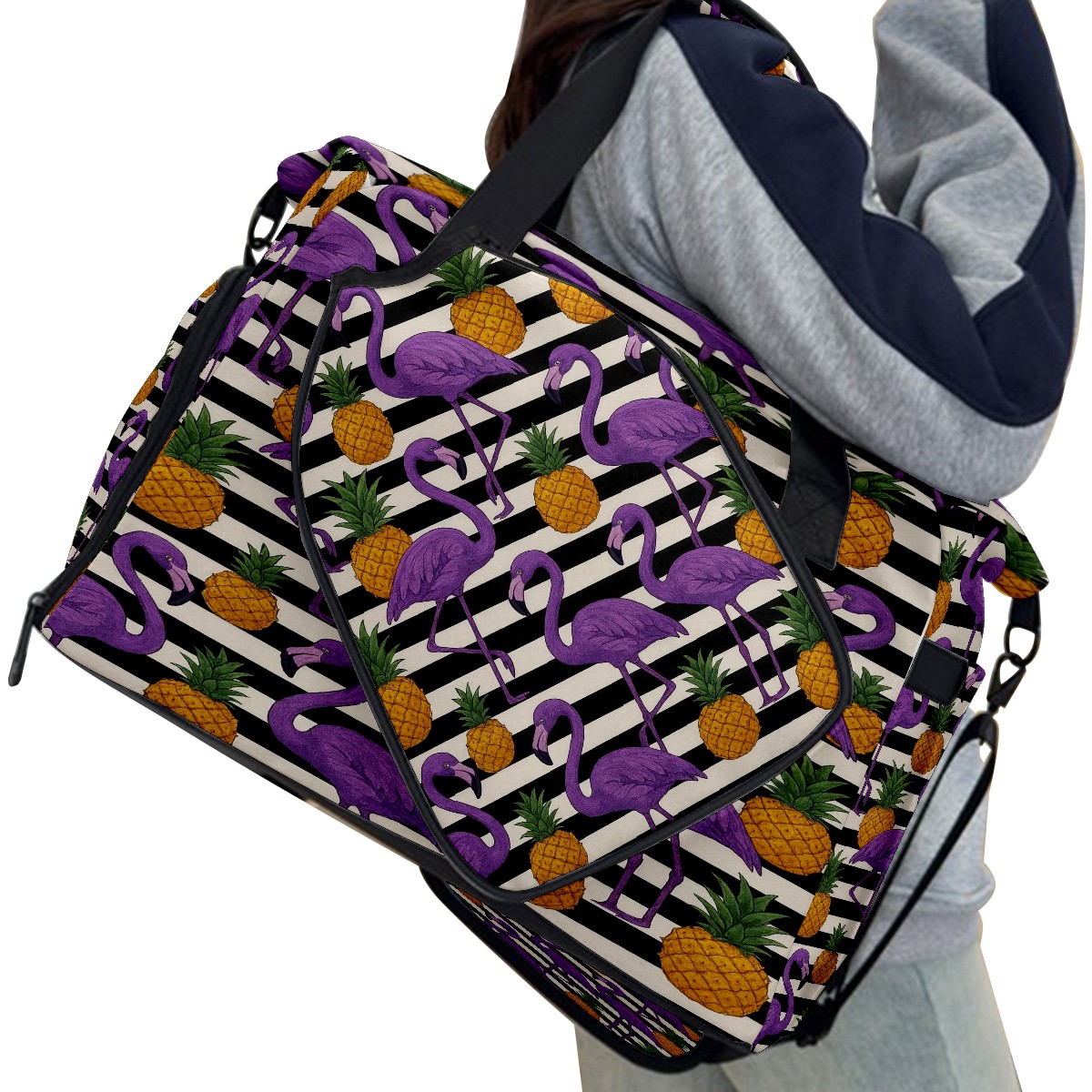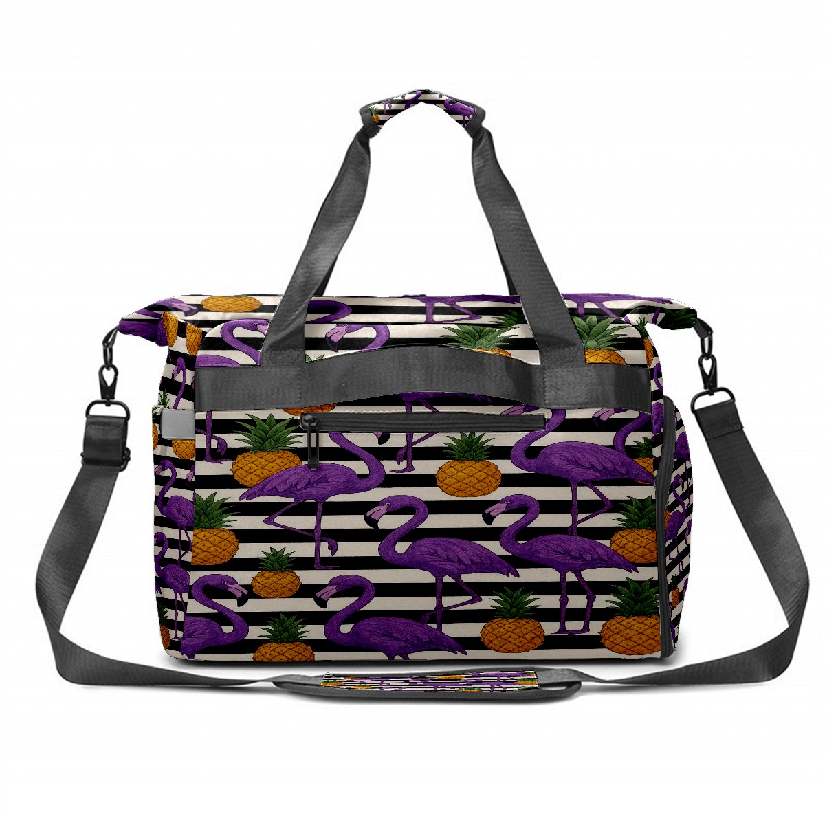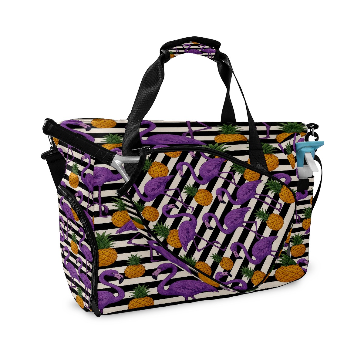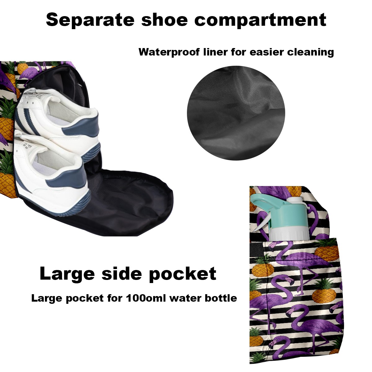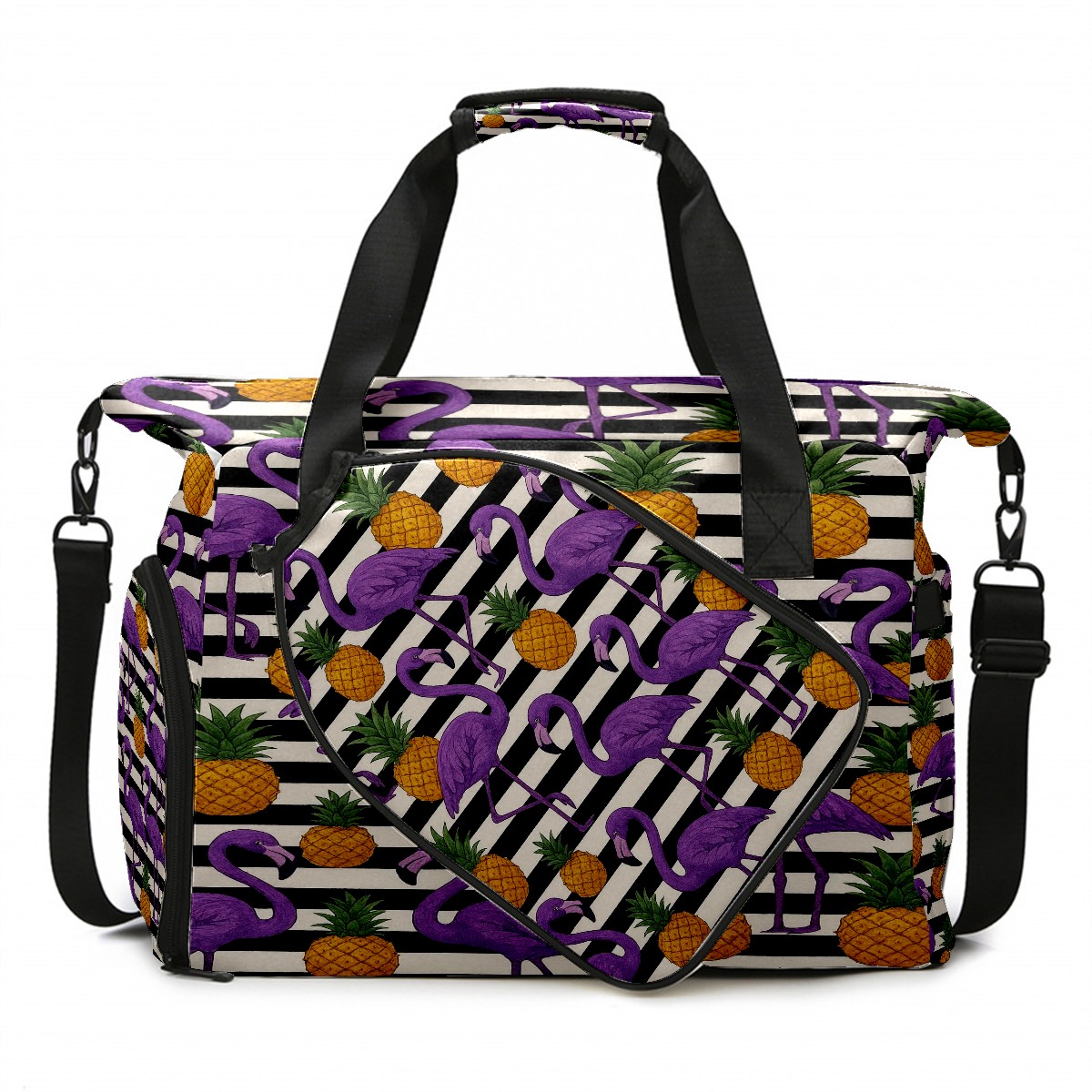Counullo Mysterious Flamingo Purple Gym Bag for Women & Tennis Bag, Large Sports Duffel Bag Waterproof with Ventilated Shoe Compartment & Front Racket Sleeve, Lightweight Travel Weekender Overnight Bag