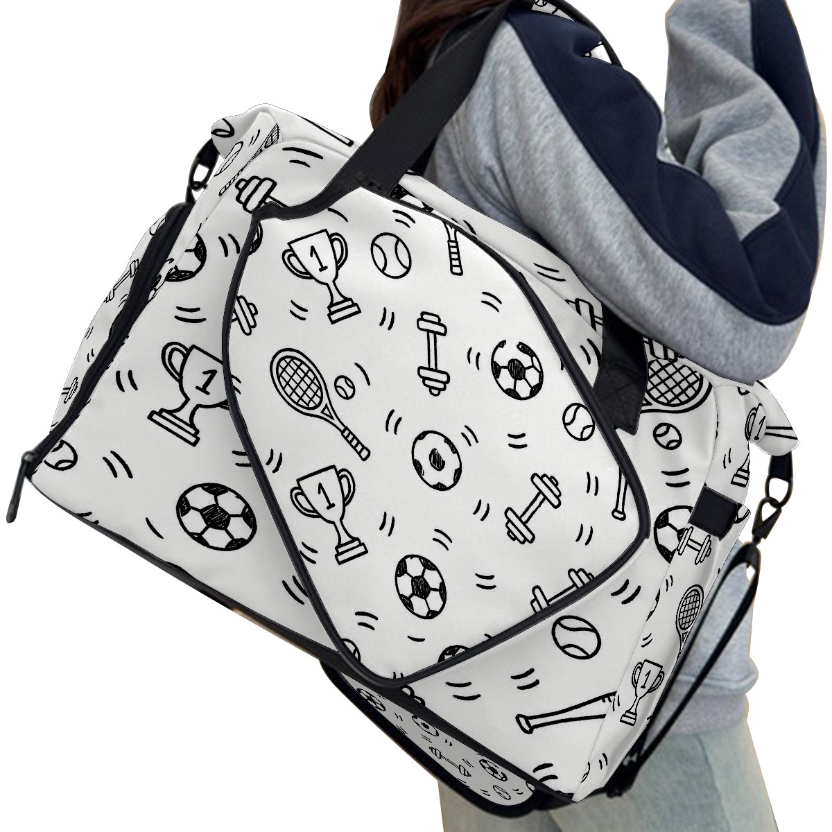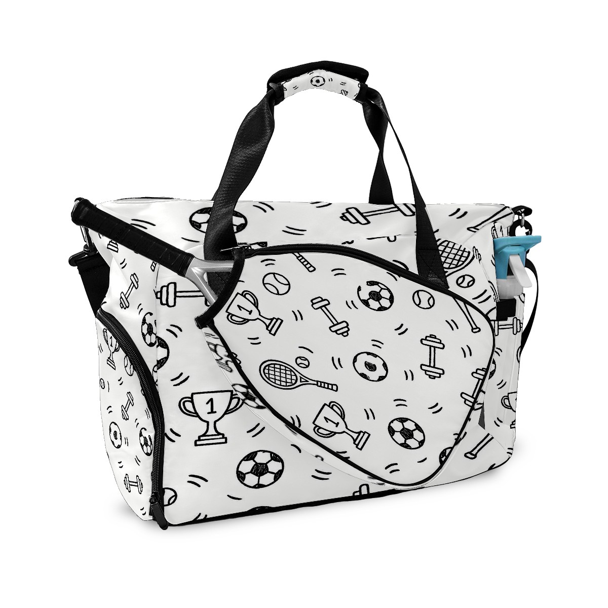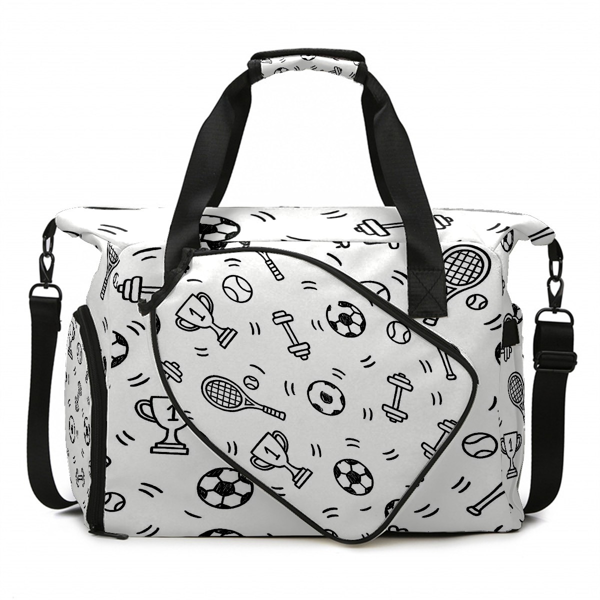 Counullo Simple Sports White Gym Bag for Women & Tennis Bag, Large Sports Duffel Bag Waterproof with Ventilated Shoe Compartment & Front Racket Sleeve, Lightweight Travel Weekender Overnight Bag