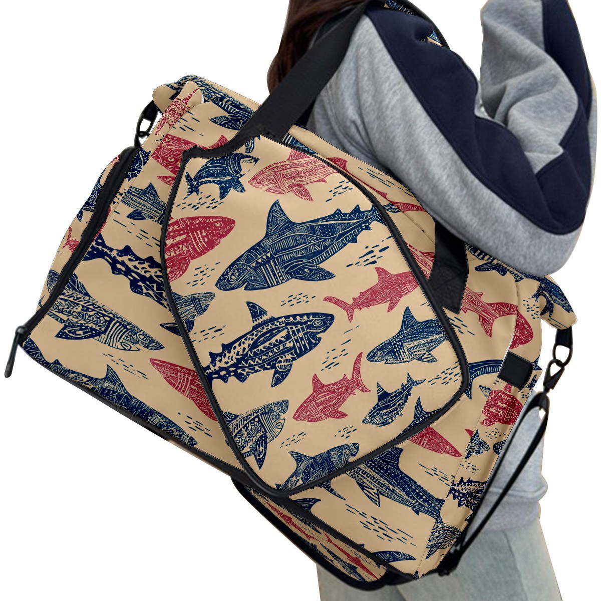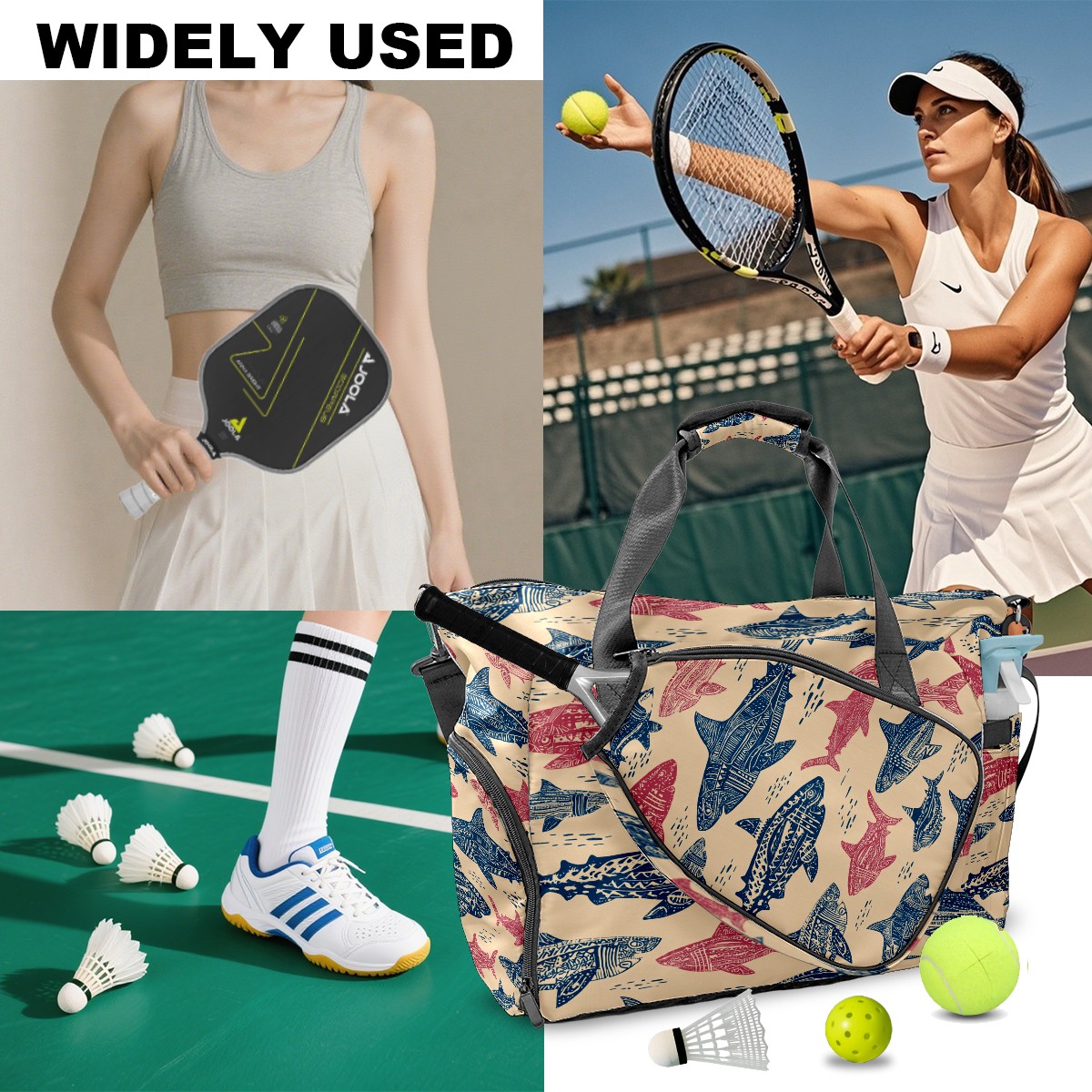 Counullo Chilly Shark Pink Gym Bag for Women & Tennis Bag, Large Sports Duffel Bag Waterproof with Ventilated Shoe Compartment & Front Racket Sleeve, Lightweight Travel Weekender Overnight Bag