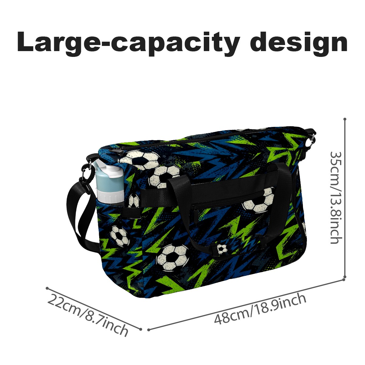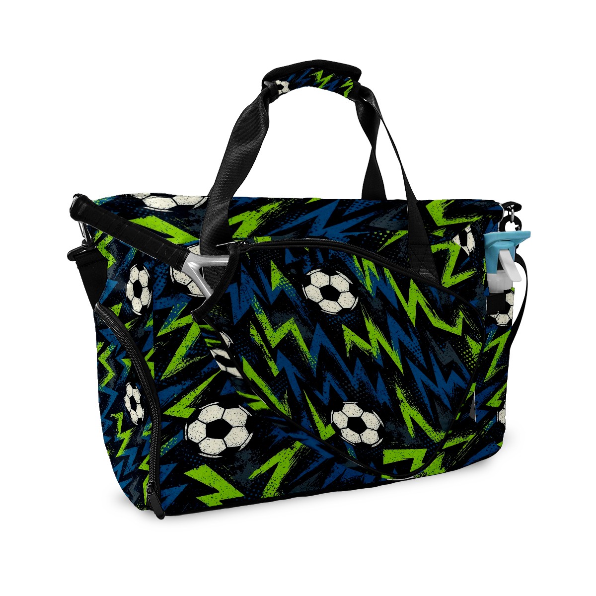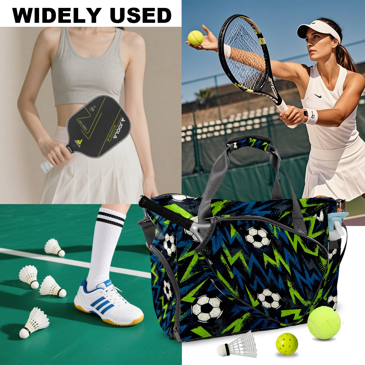 Counullo Dynamic Soccer Blue Gym Bag for Women & Tennis Bag, Large Sports Duffel Bag Waterproof with Ventilated Shoe Compartment & Front Racket Sleeve, Lightweight Travel Weekender Overnight Bag