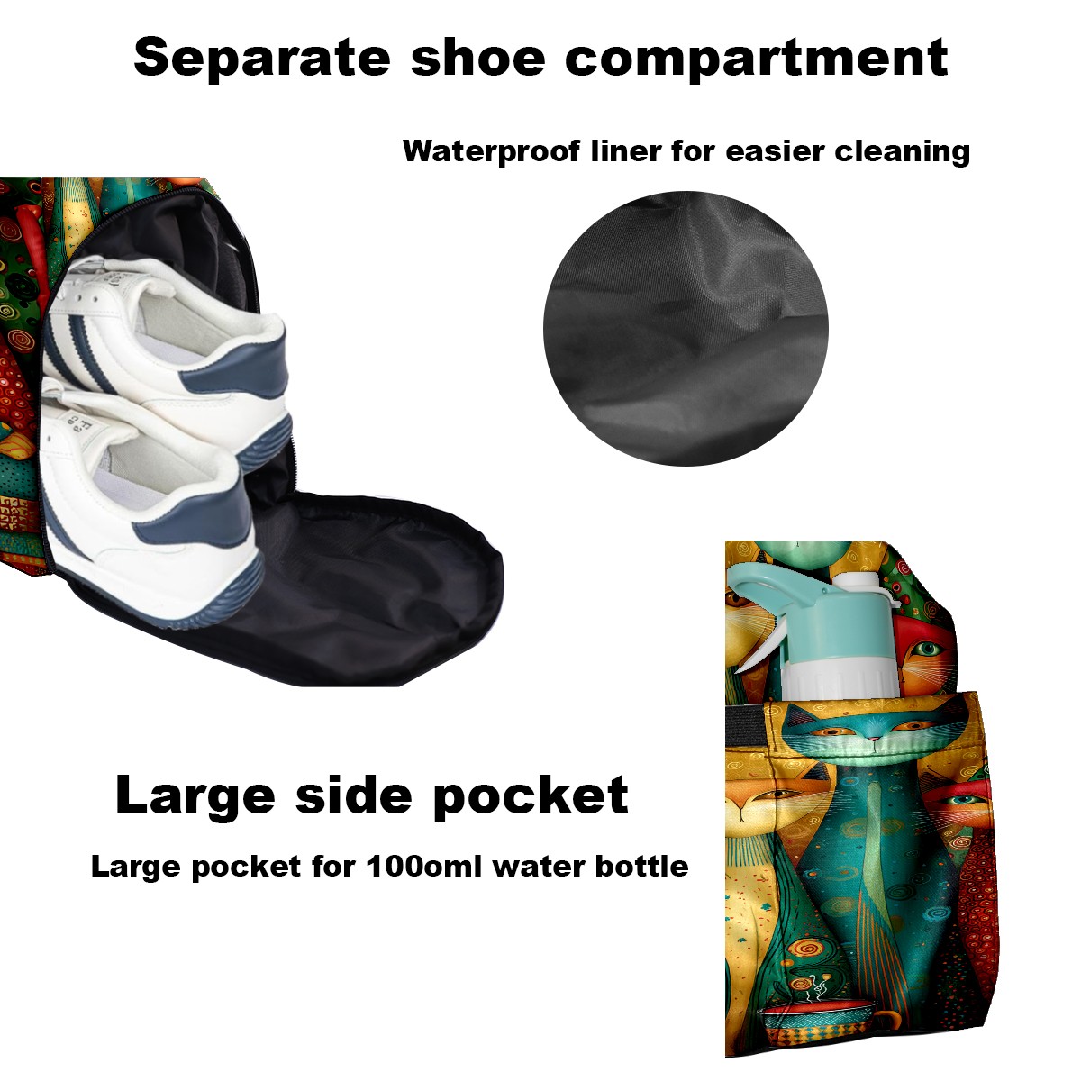 Counullo Fantasy Cat Multi Gym Bag for Women & Tennis Bag, Large Sports Duffel Bag Waterproof with Ventilated Shoe Compartment & Front Racket Sleeve, Lightweight Travel Weekender Overnight Bag