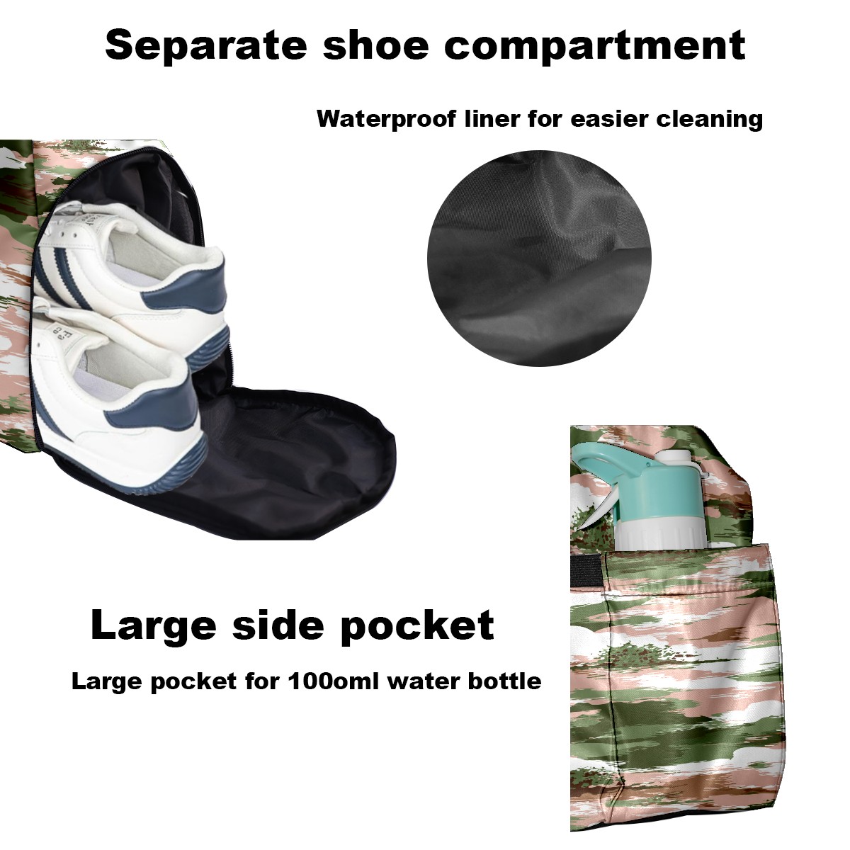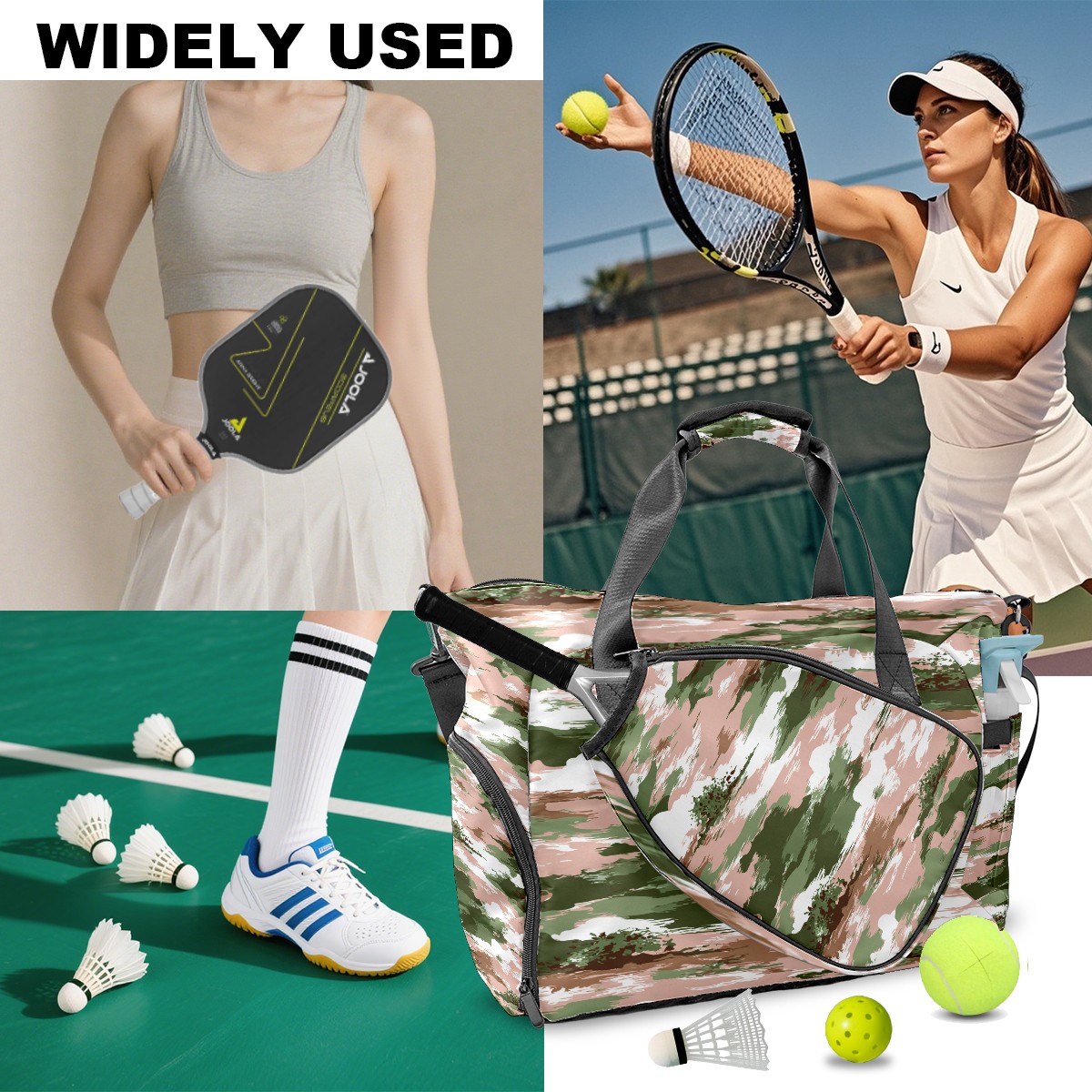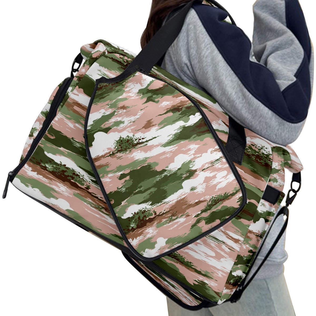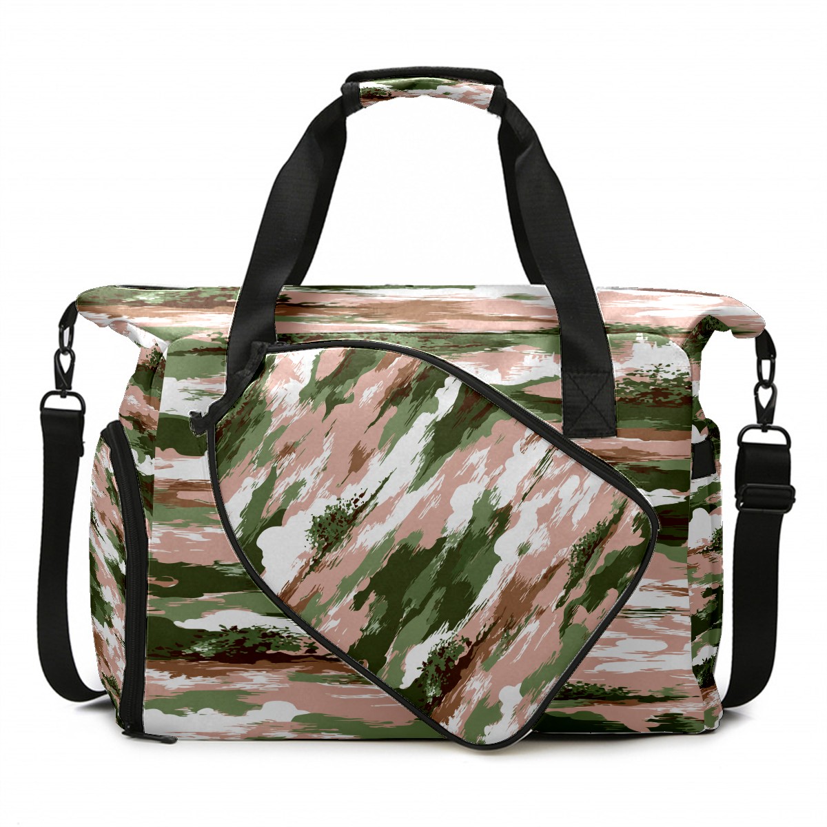 Counullo Soft Camouflage Pink Gym Bag for Women & Tennis Bag, Large Sports Duffel Bag Waterproof with Ventilated Shoe Compartment & Front Racket Sleeve, Lightweight Travel Weekender Overnight Bag