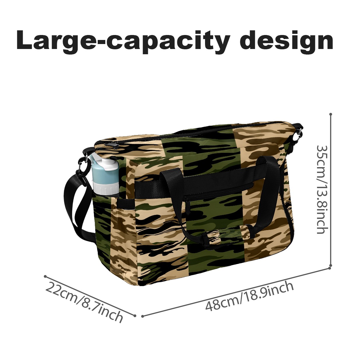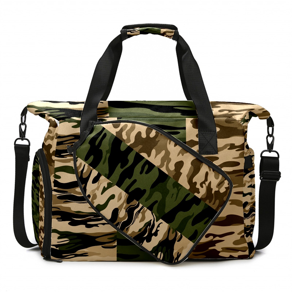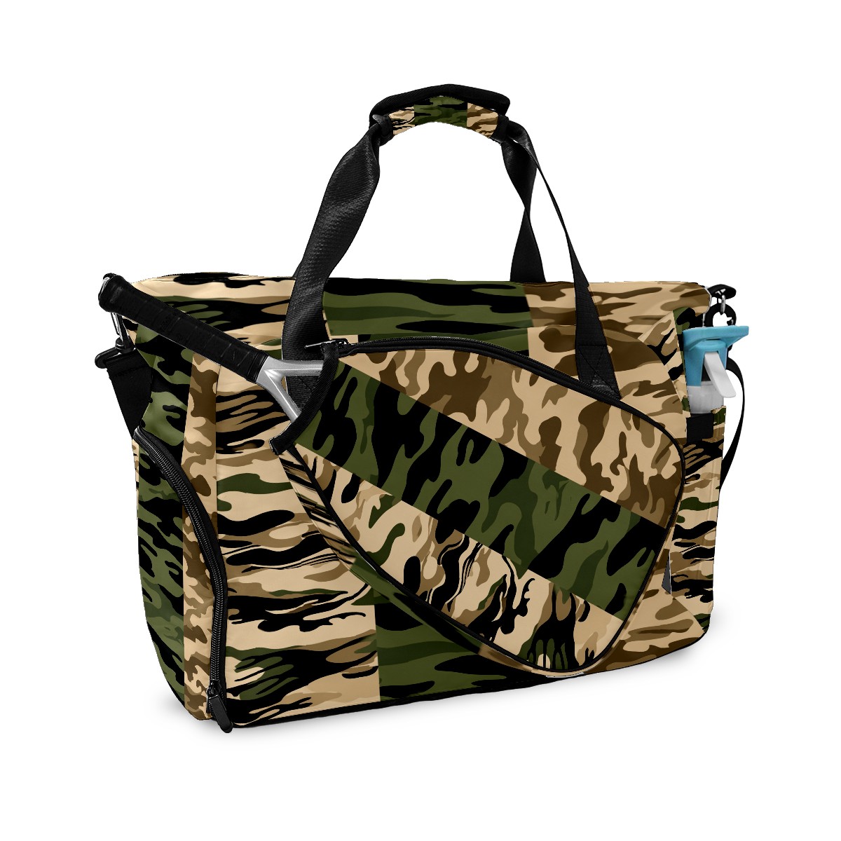 Counullo Cool Camouflage Brown Gym Bag for Women & Tennis Bag, Large Sports Duffel Bag Waterproof with Ventilated Shoe Compartment & Front Racket Sleeve, Lightweight Travel Weekender Overnight Bag