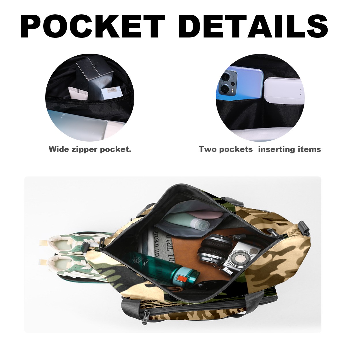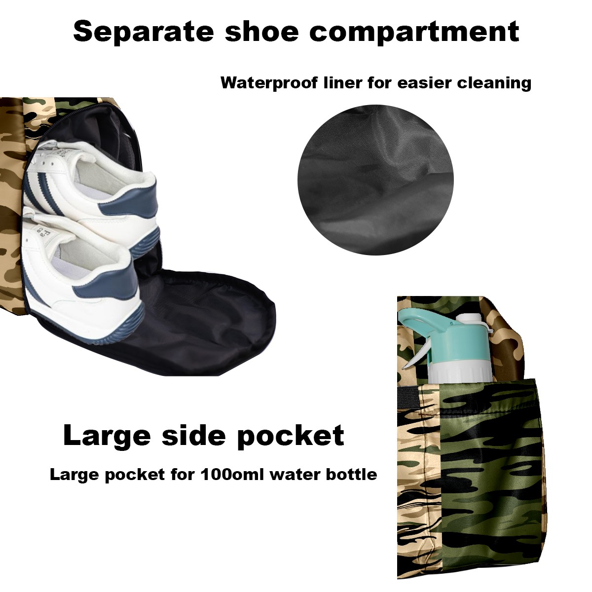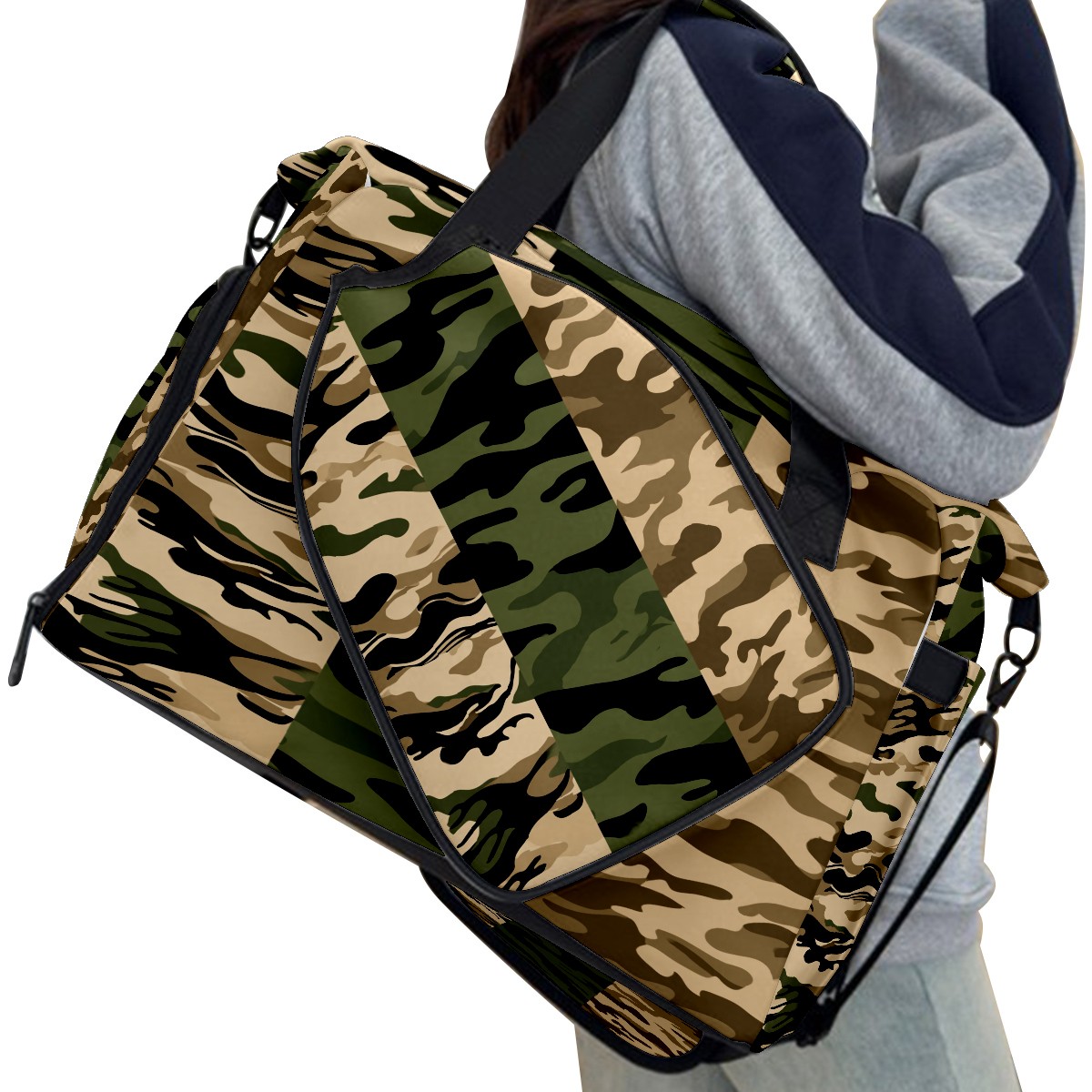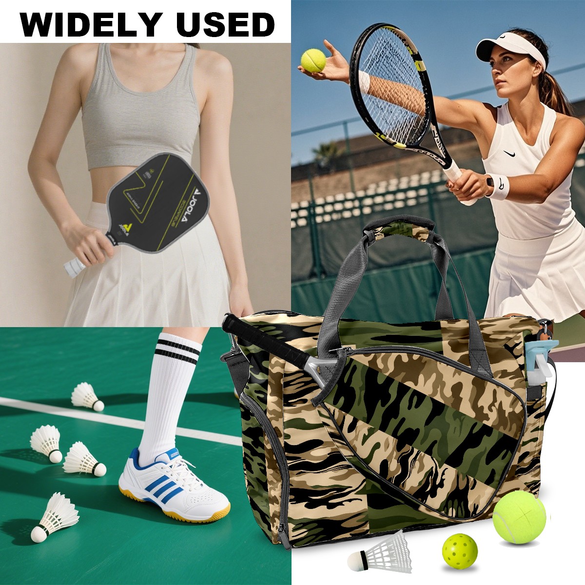 Counullo Cool Camouflage Brown Gym Bag for Women & Tennis Bag, Large Sports Duffel Bag Waterproof with Ventilated Shoe Compartment & Front Racket Sleeve, Lightweight Travel Weekender Overnight Bag