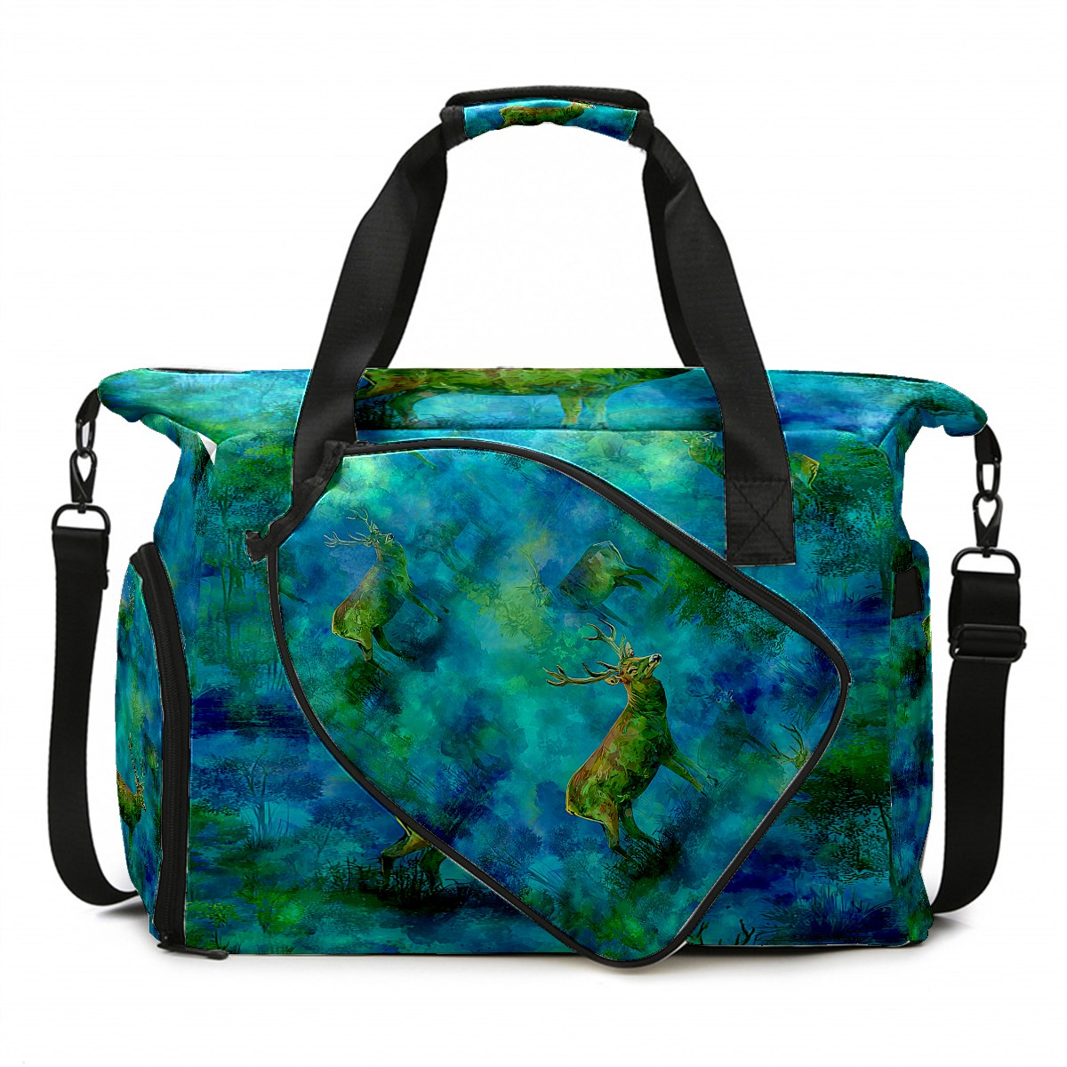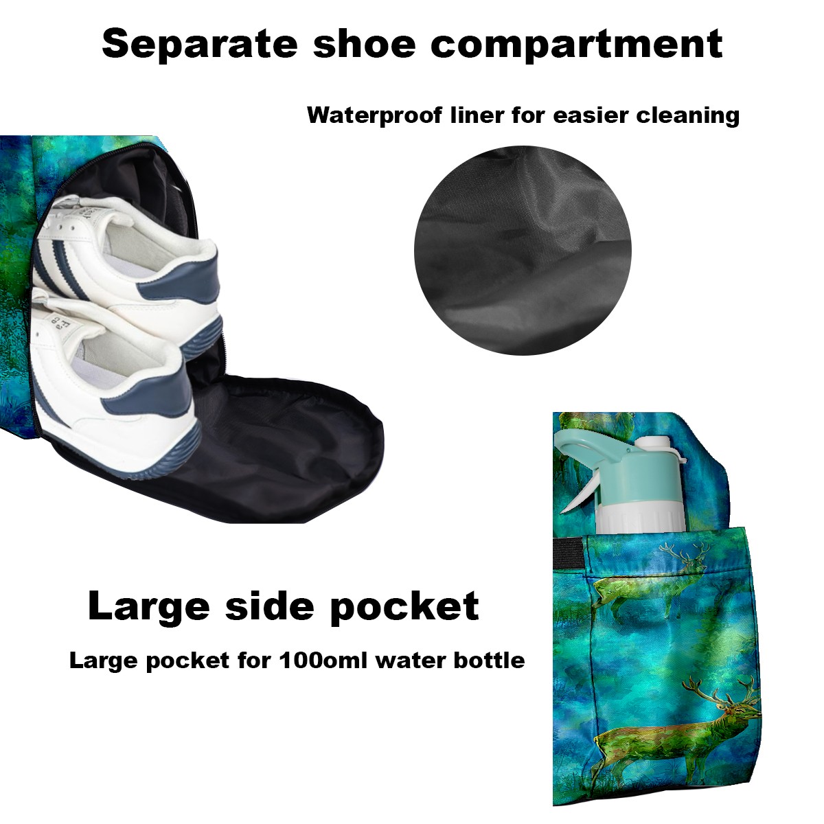 Counullo Ethereal Deer Blue Gym Bag for Women & Tennis Bag, Large Sports Duffel Bag Waterproof with Ventilated Shoe Compartment & Front Racket Sleeve, Lightweight Travel Weekender Overnight Bag