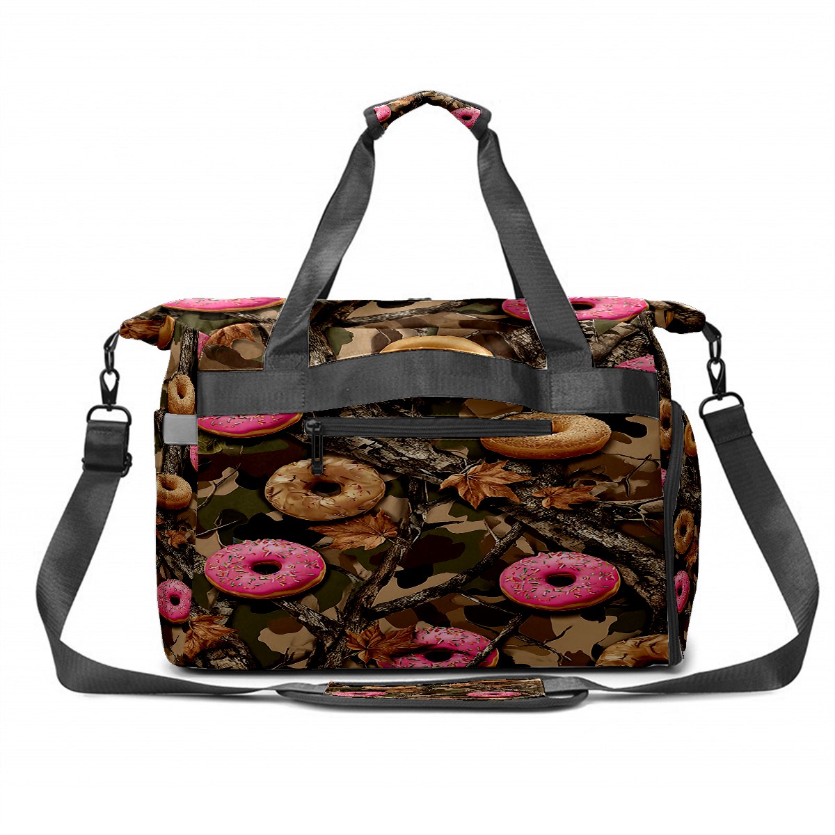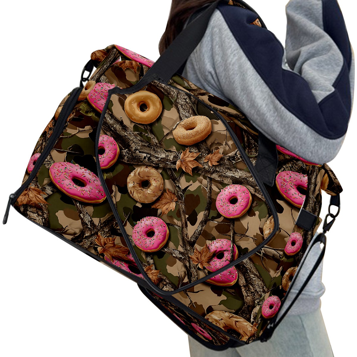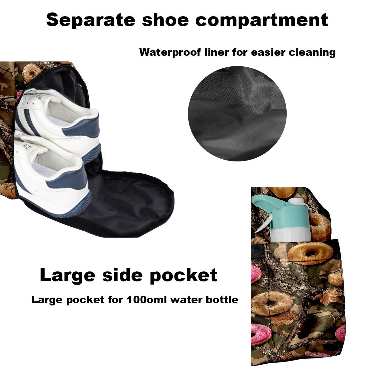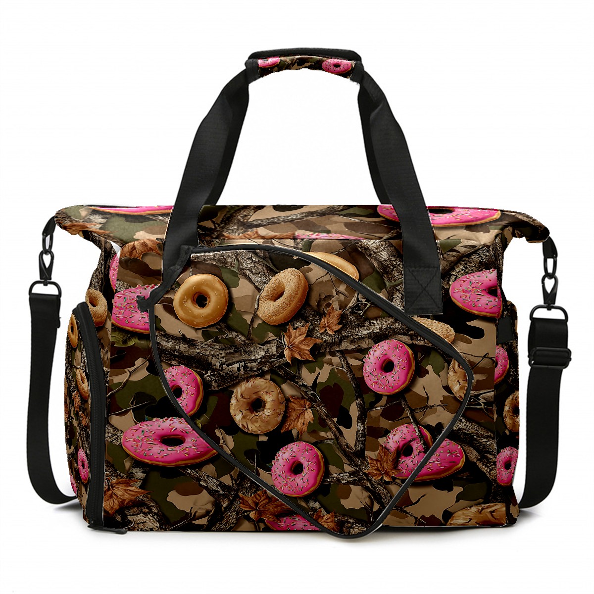 Counullo Sweet Donut Pink Gym Bag for Women & Tennis Bag, Large Sports Duffel Bag Waterproof with Ventilated Shoe Compartment & Front Racket Sleeve, Lightweight Travel Weekender Overnight Bag