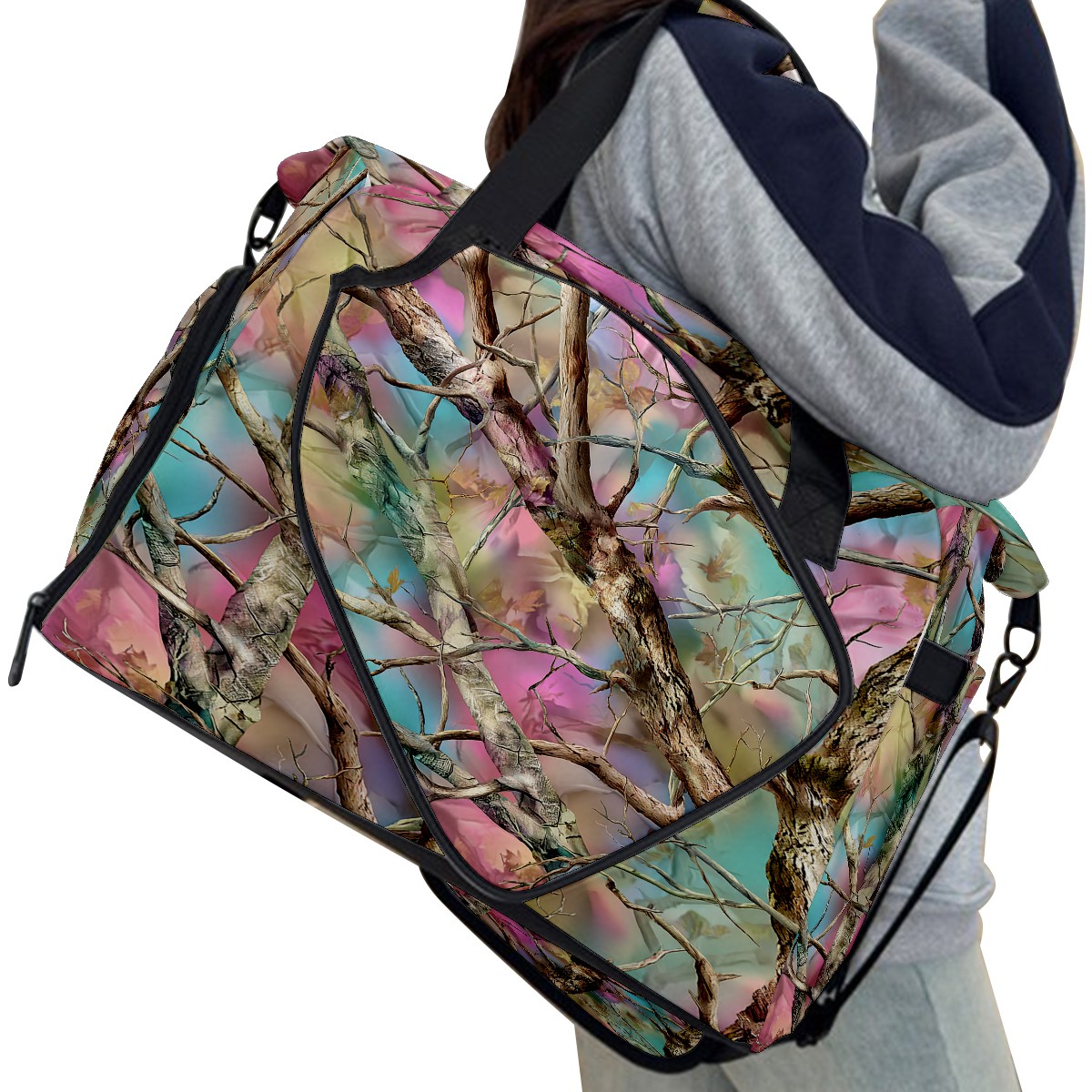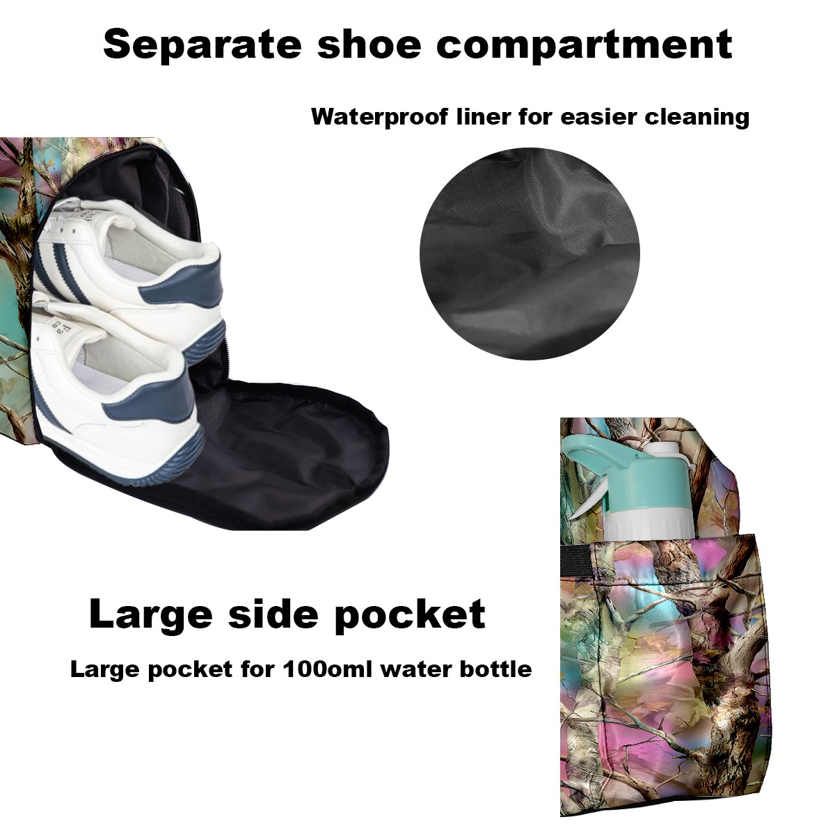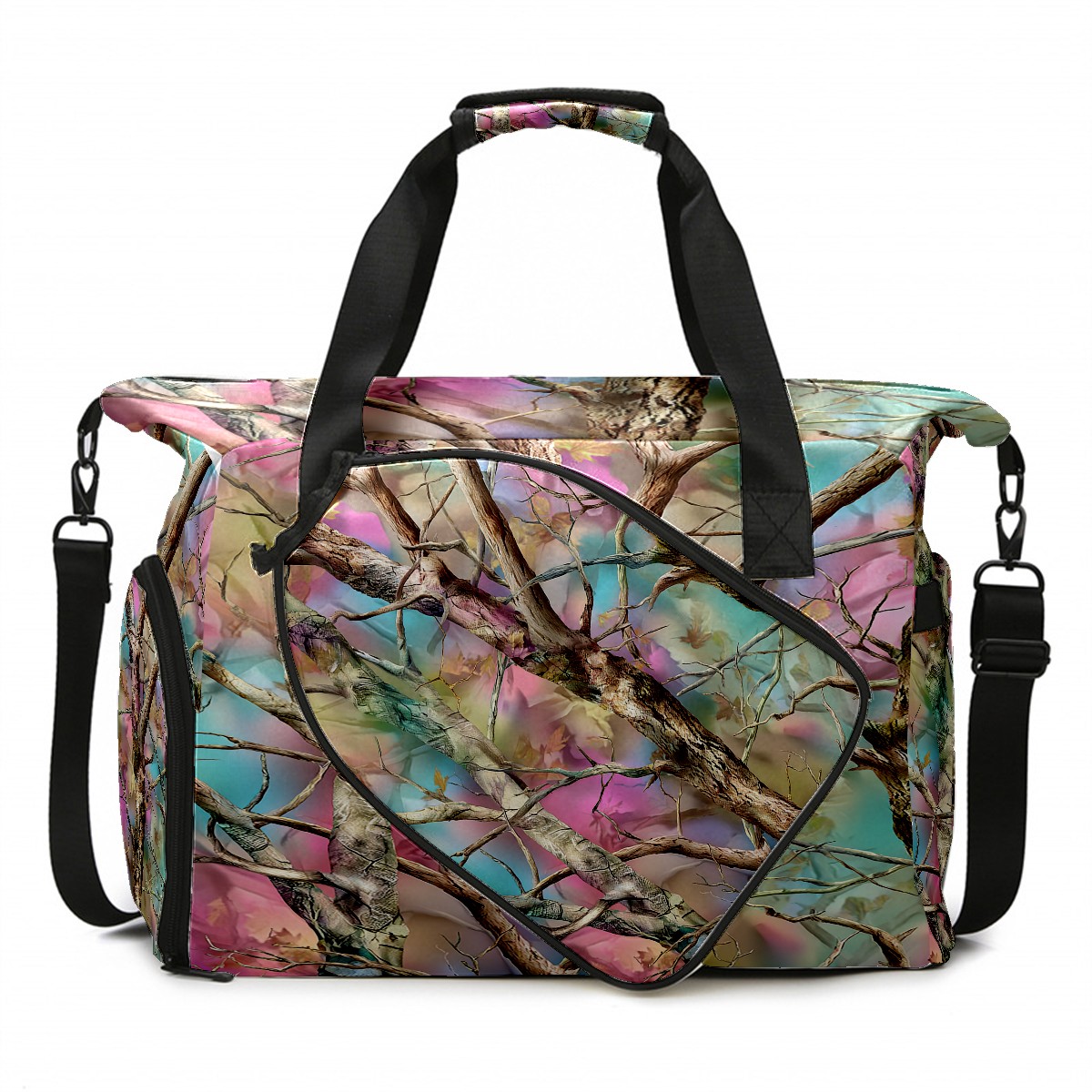 Counullo Tree Shadow Multi Gym Bag for Women & Tennis Bag, Large Sports Duffel Bag Waterproof with Ventilated Shoe Compartment & Front Racket Sleeve, Lightweight Travel Weekender Overnight Bag
