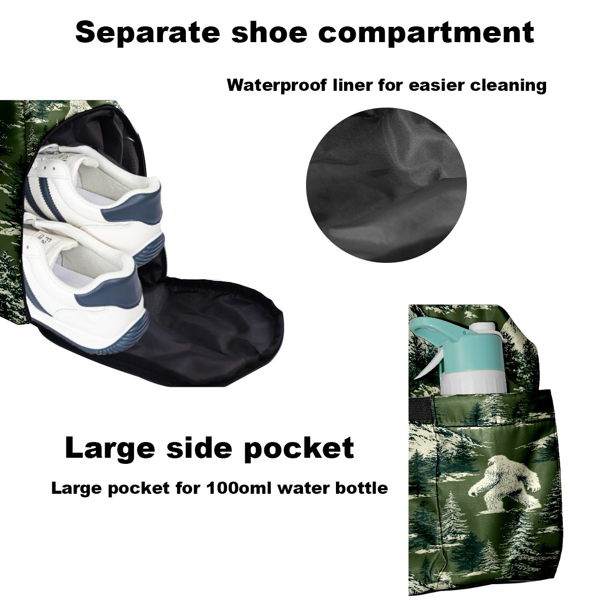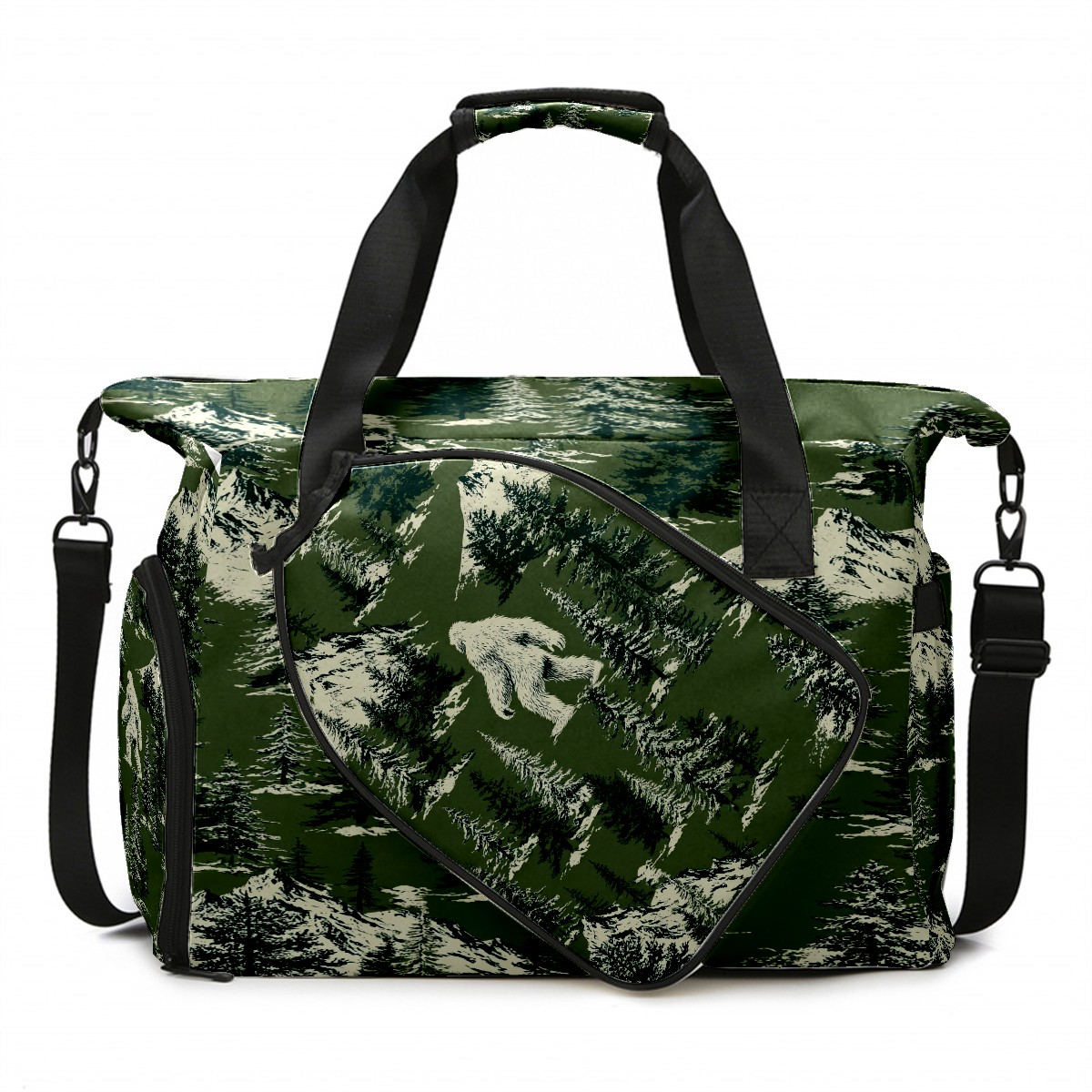 Counullo Mysterious Yeti Green Gym Bag for Women & Tennis Bag, Large Sports Duffel Bag Waterproof with Ventilated Shoe Compartment & Front Racket Sleeve, Lightweight Travel Weekender Overnight Bag