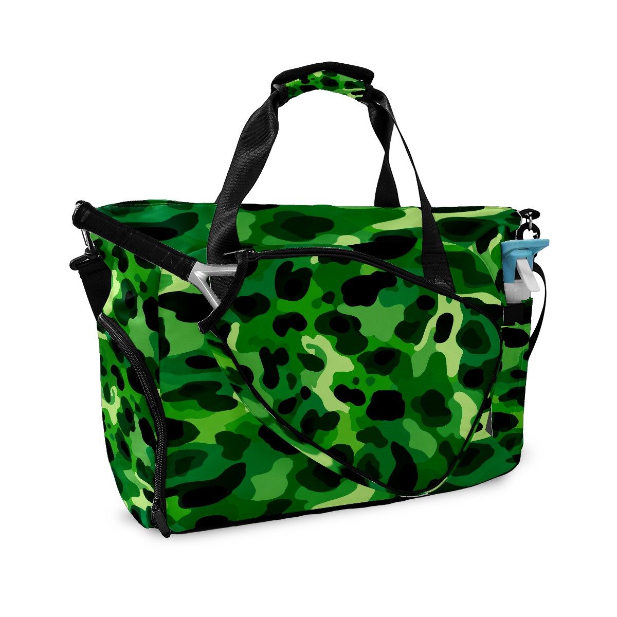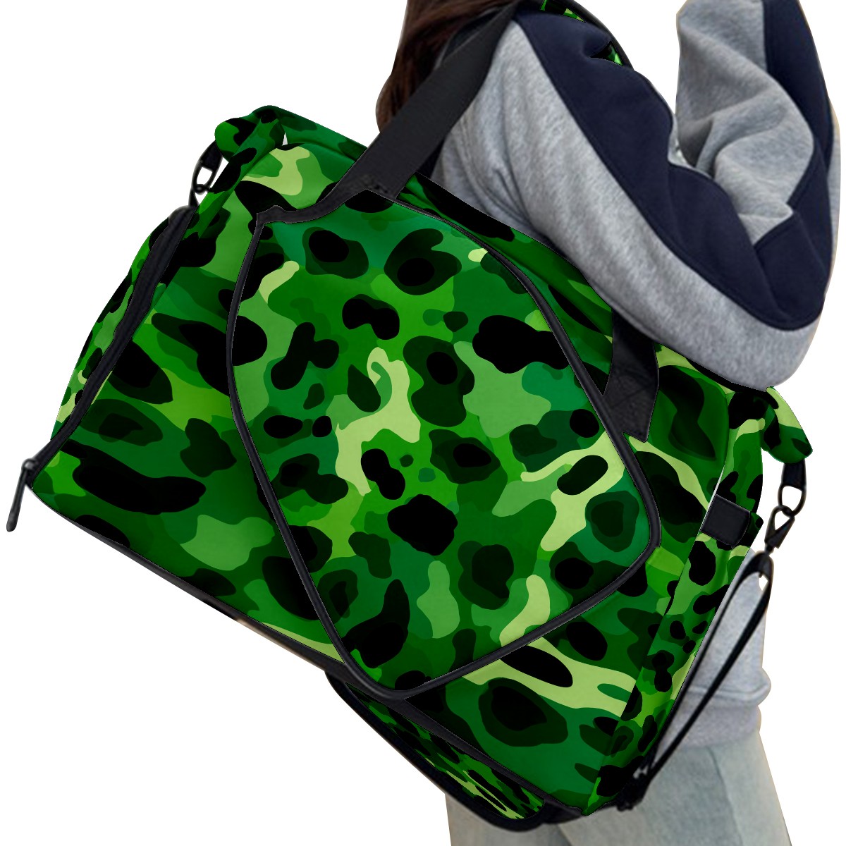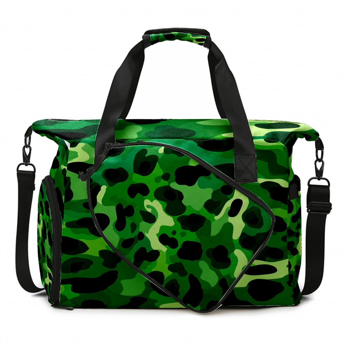 Counullo Cool Leopard Green Gym Bag for Women & Tennis Bag, Large Sports Duffel Bag Waterproof with Ventilated Shoe Compartment & Front Racket Sleeve, Lightweight Travel Weekender Overnight Bag