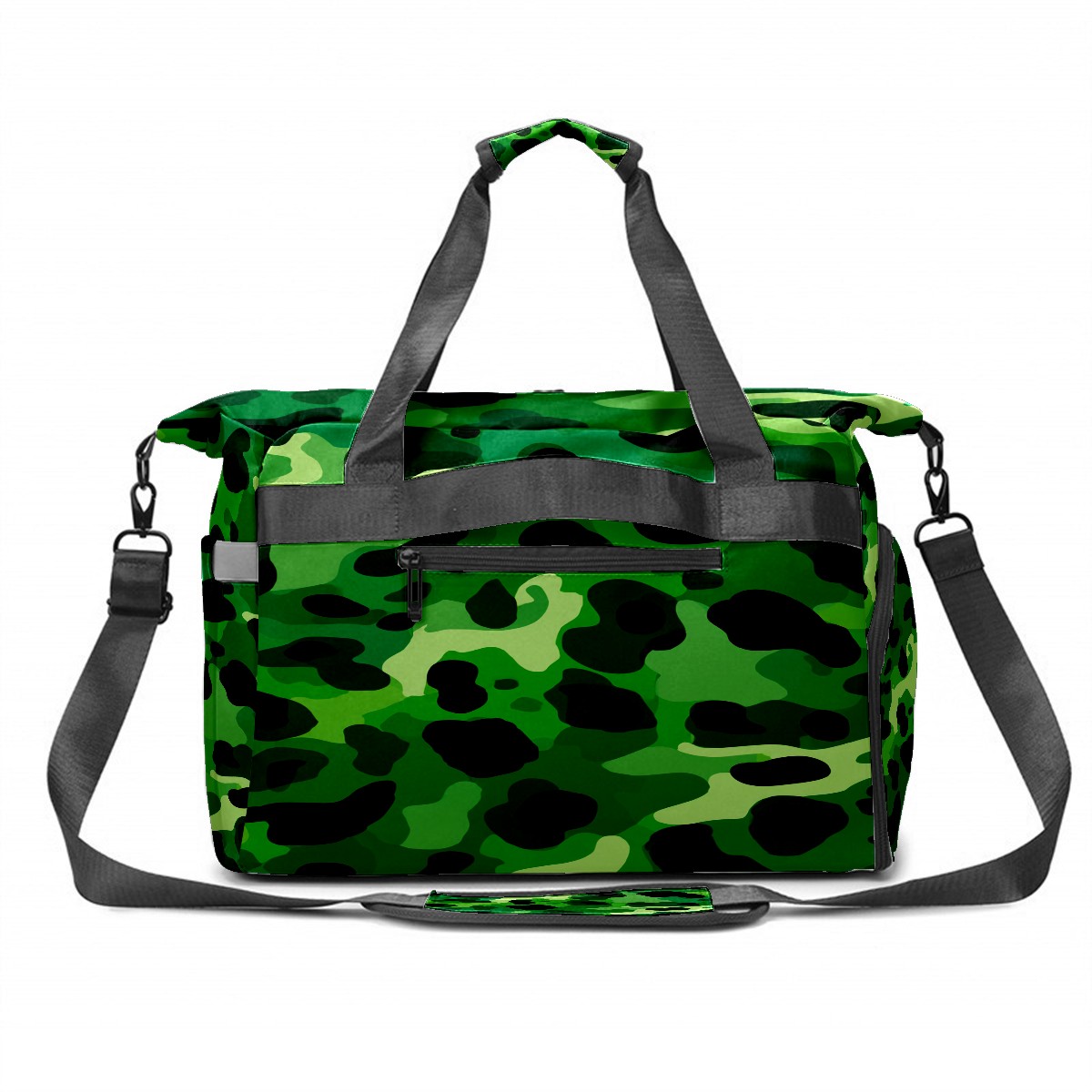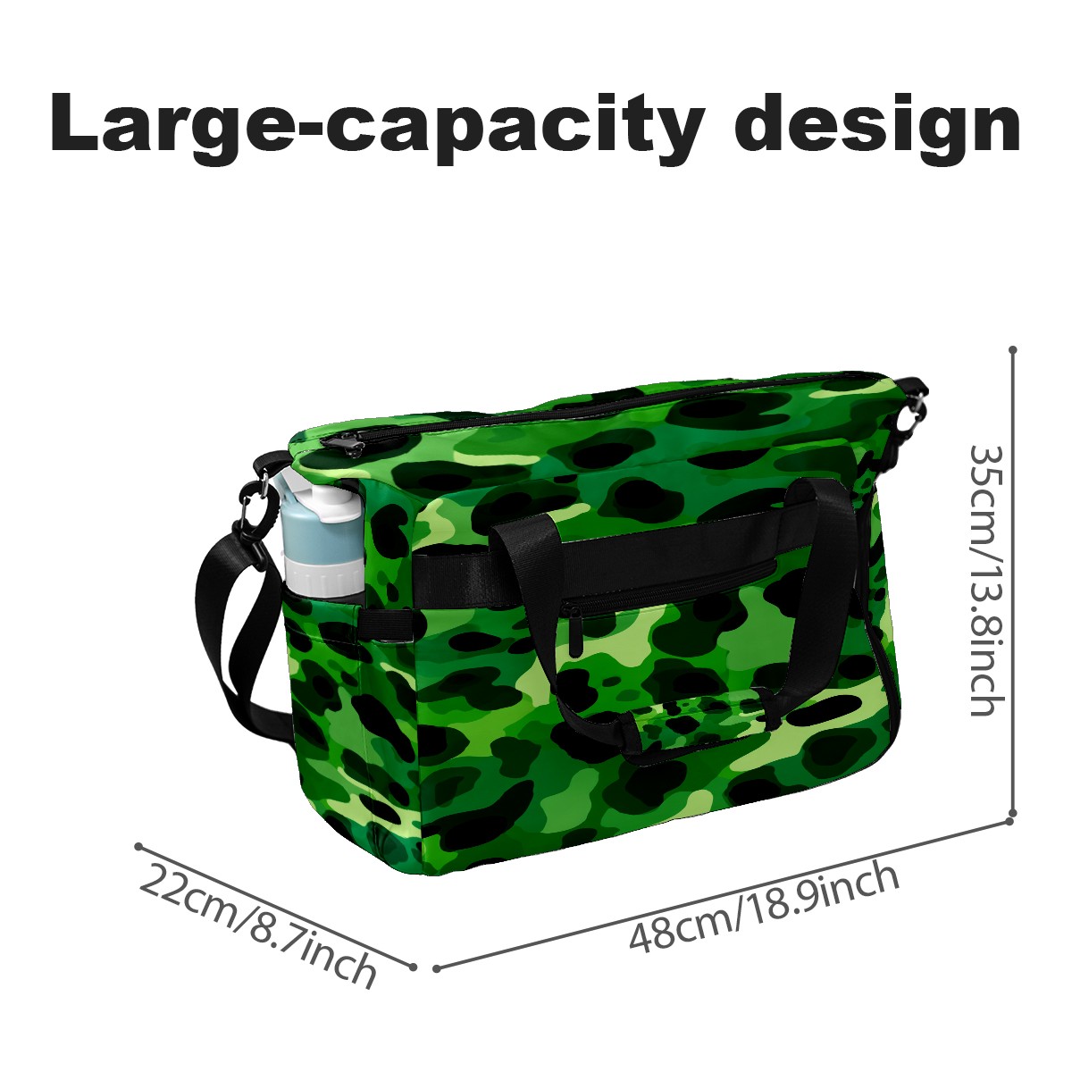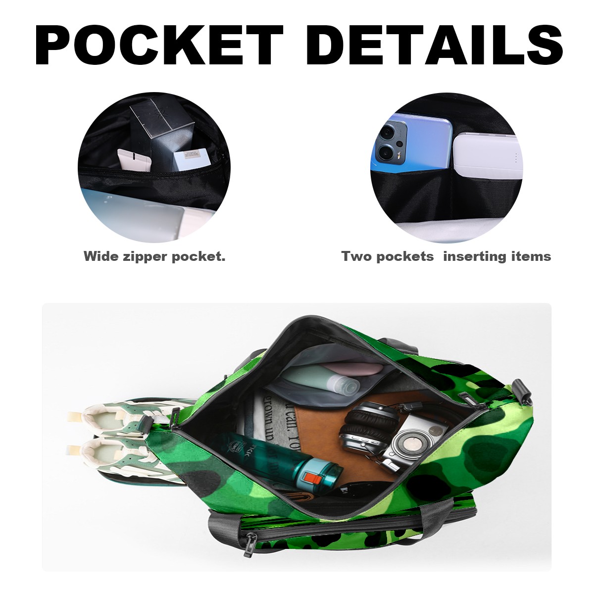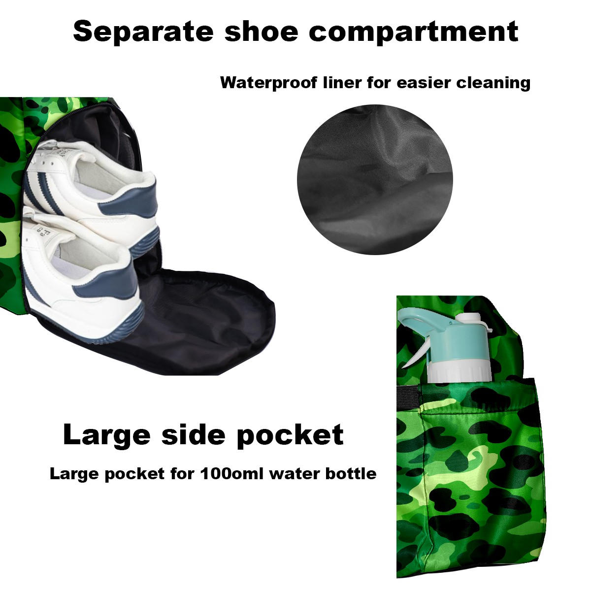 Counullo Cool Leopard Green Gym Bag for Women & Tennis Bag, Large Sports Duffel Bag Waterproof with Ventilated Shoe Compartment & Front Racket Sleeve, Lightweight Travel Weekender Overnight Bag