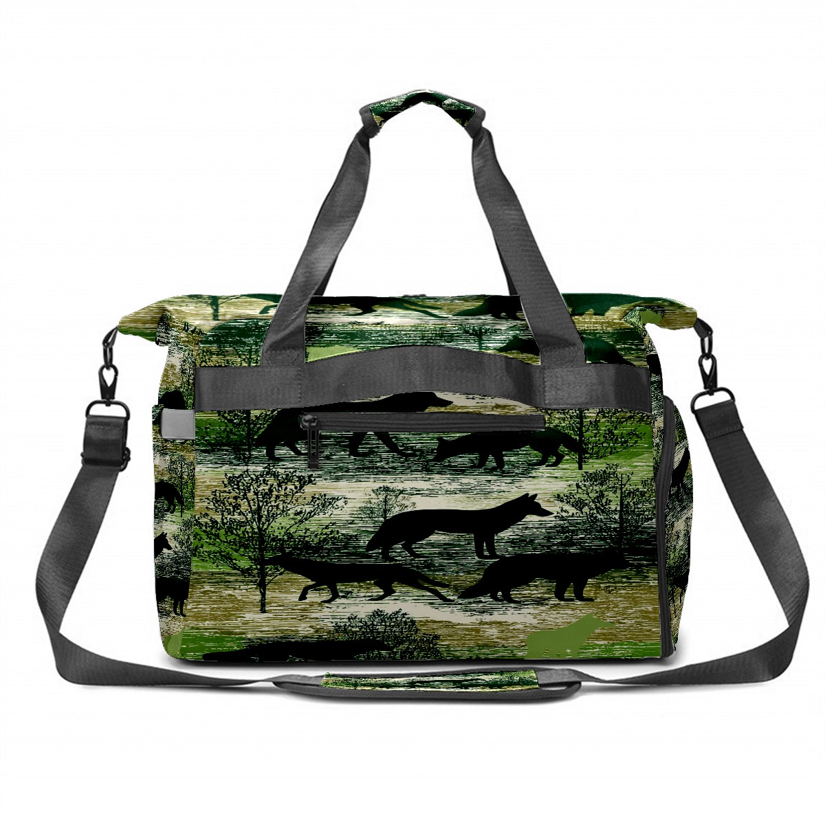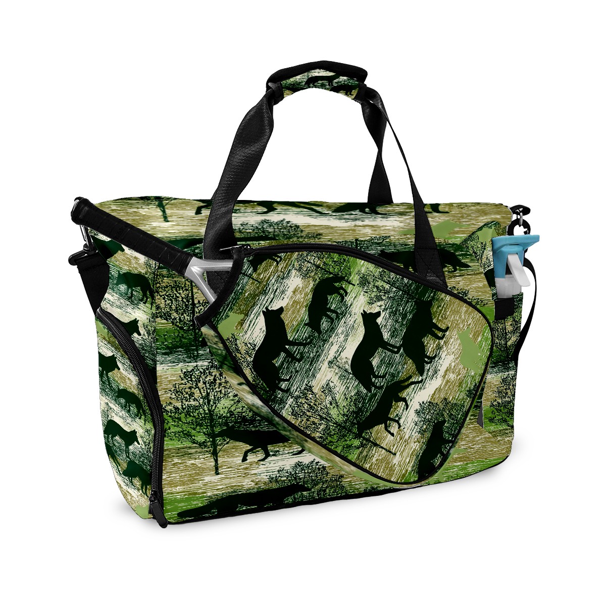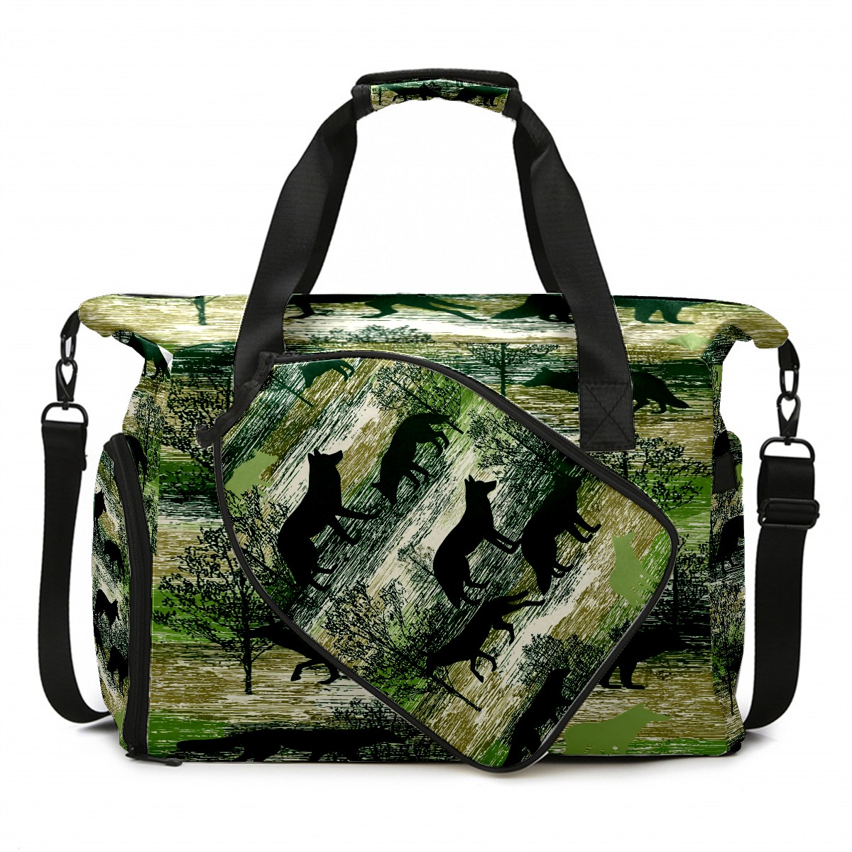Counullo Wild Wolf Green Gym Bag for Women & Tennis Bag, Large Sports Duffel Bag Waterproof with Ventilated Shoe Compartment & Front Racket Sleeve, Lightweight Travel Weekender Overnight Bag