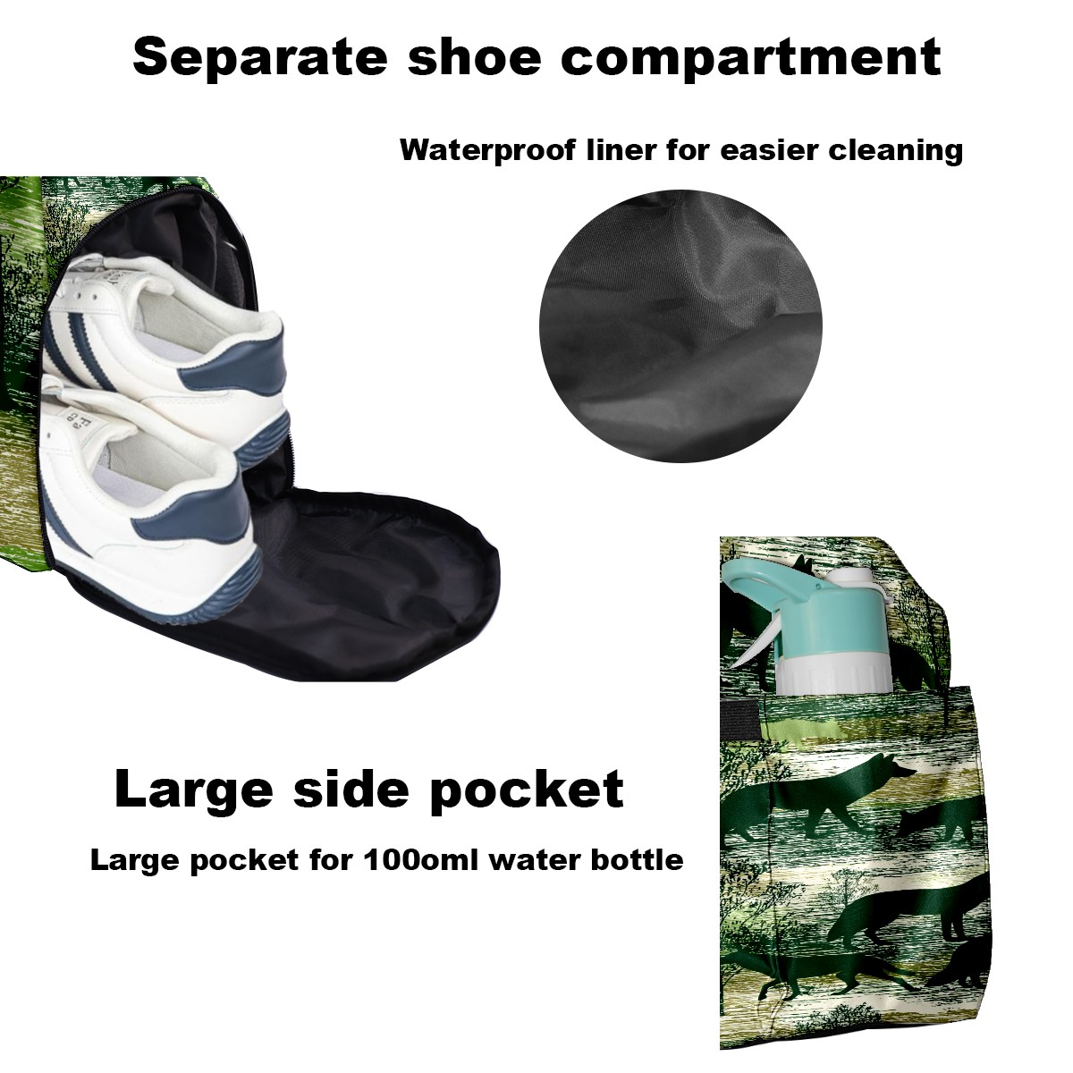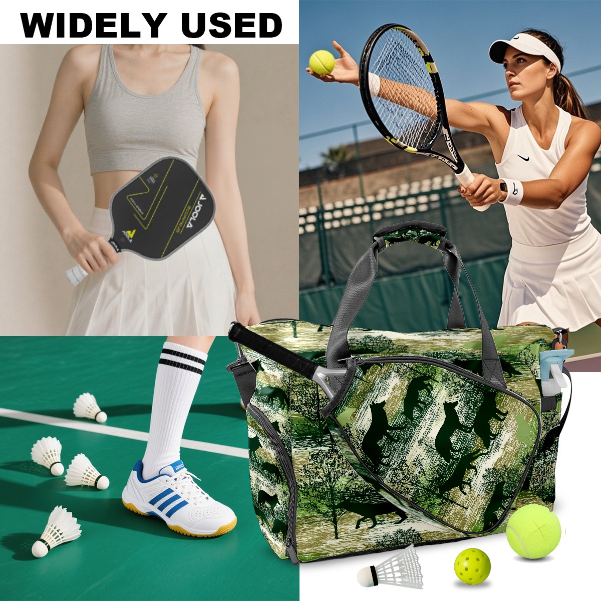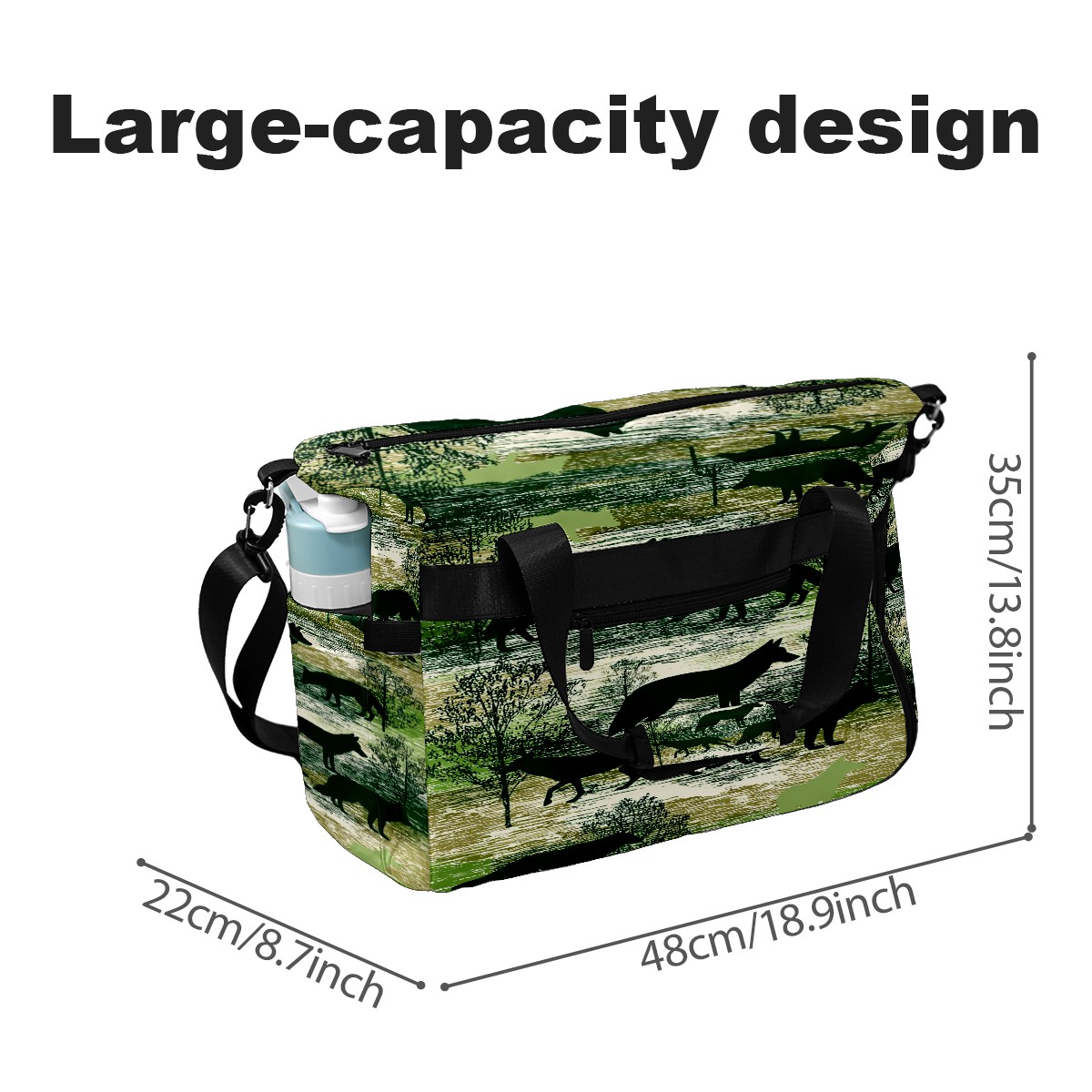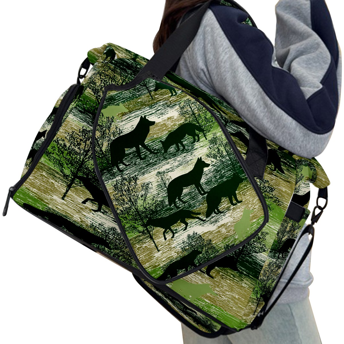 Counullo Wild Wolf Green Gym Bag for Women & Tennis Bag, Large Sports Duffel Bag Waterproof with Ventilated Shoe Compartment & Front Racket Sleeve, Lightweight Travel Weekender Overnight Bag