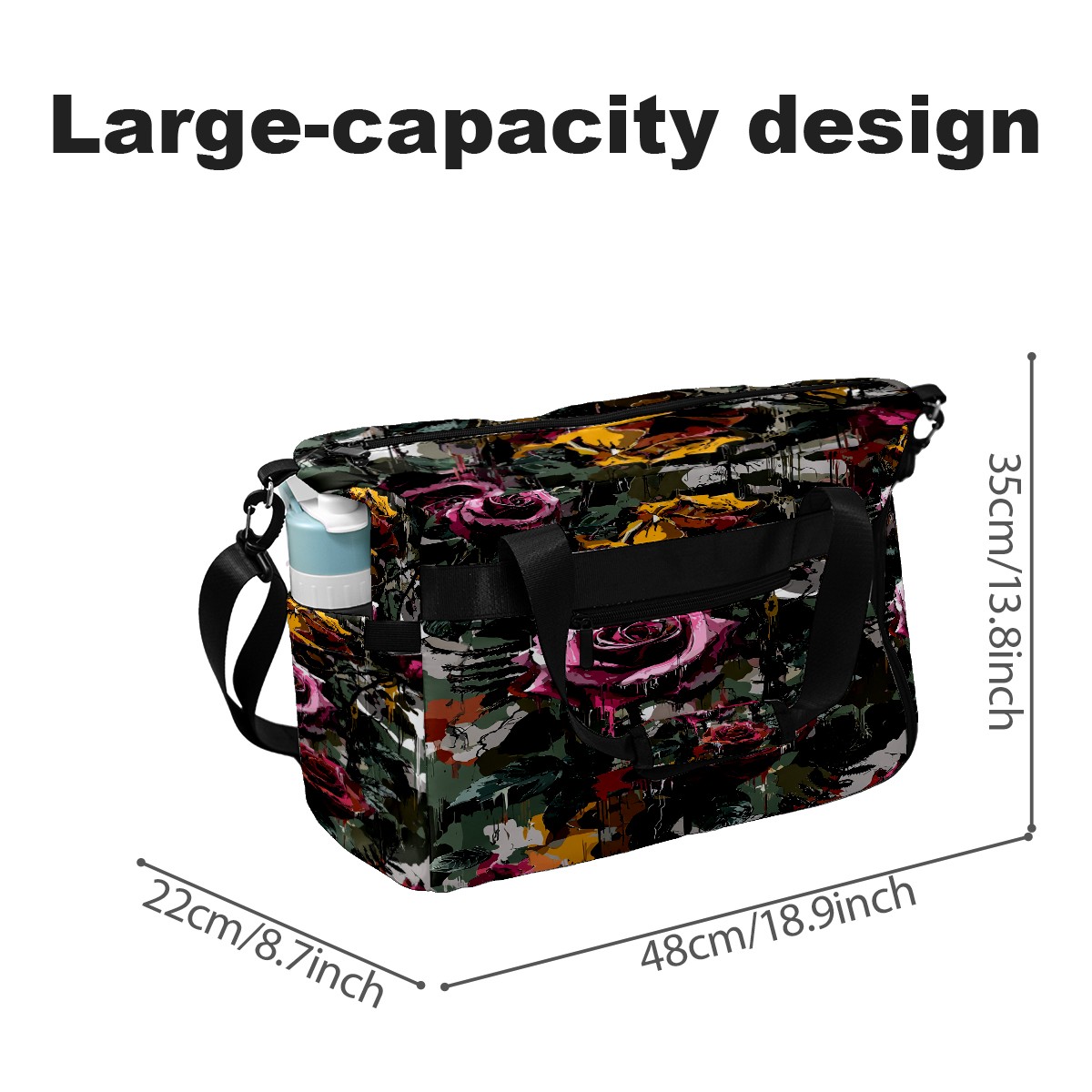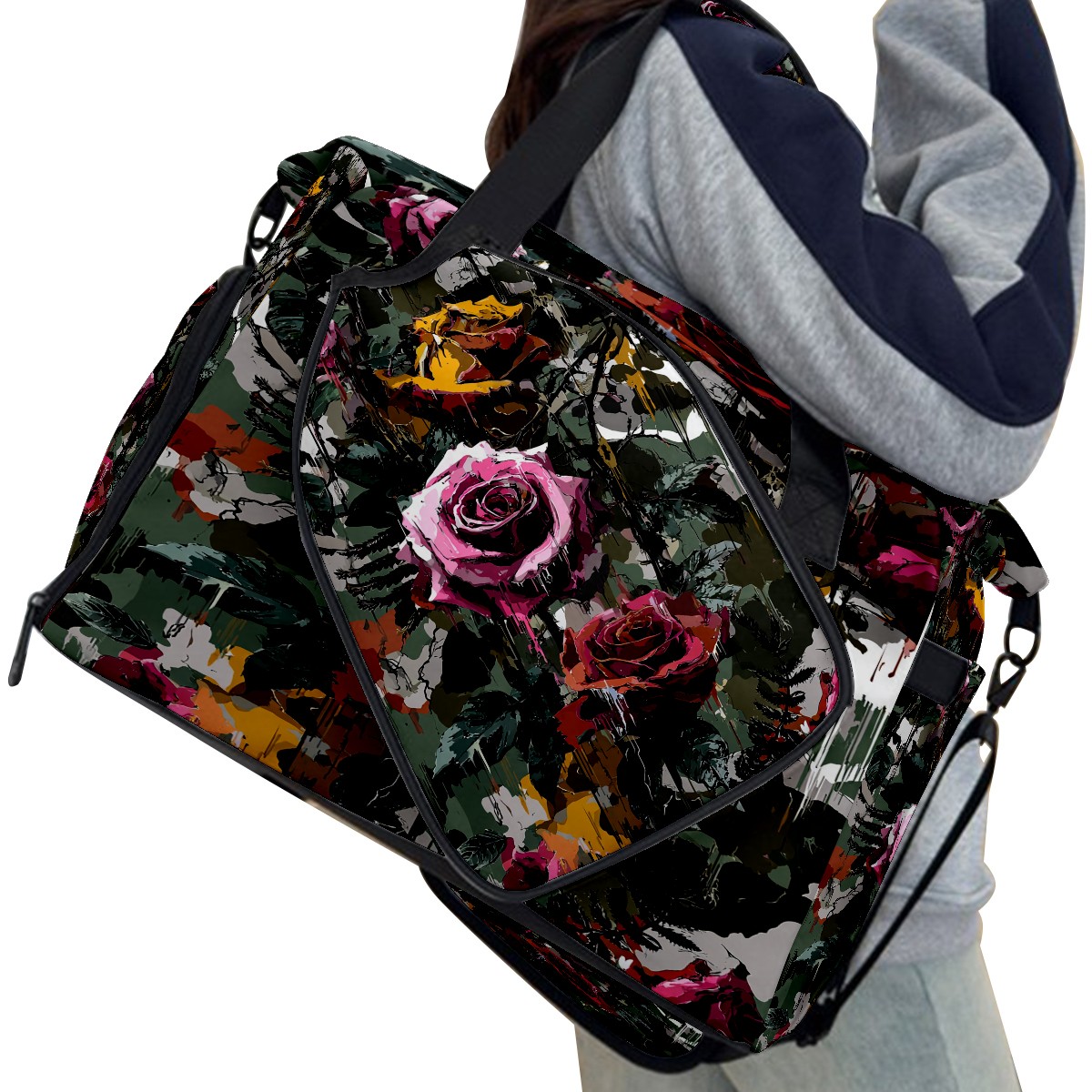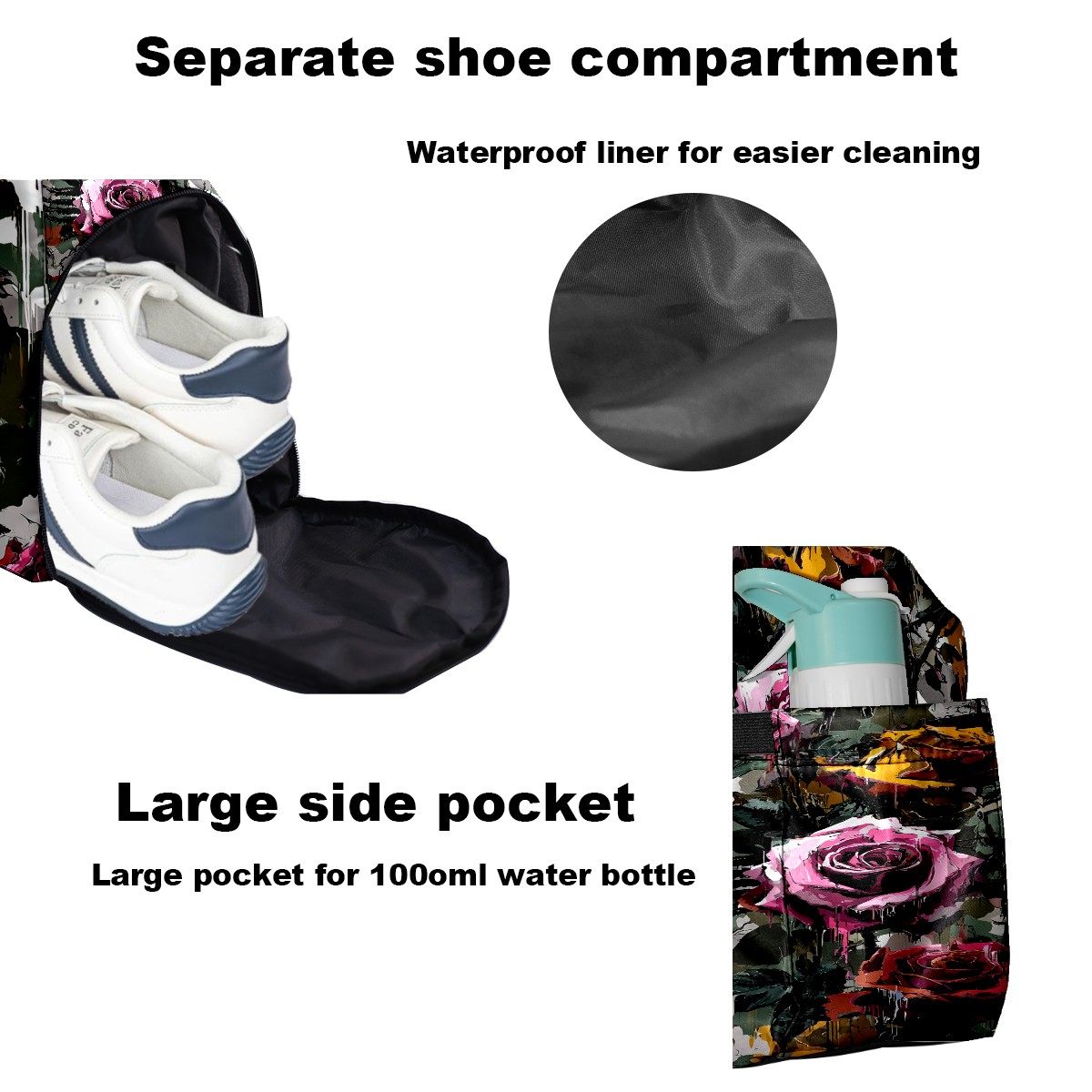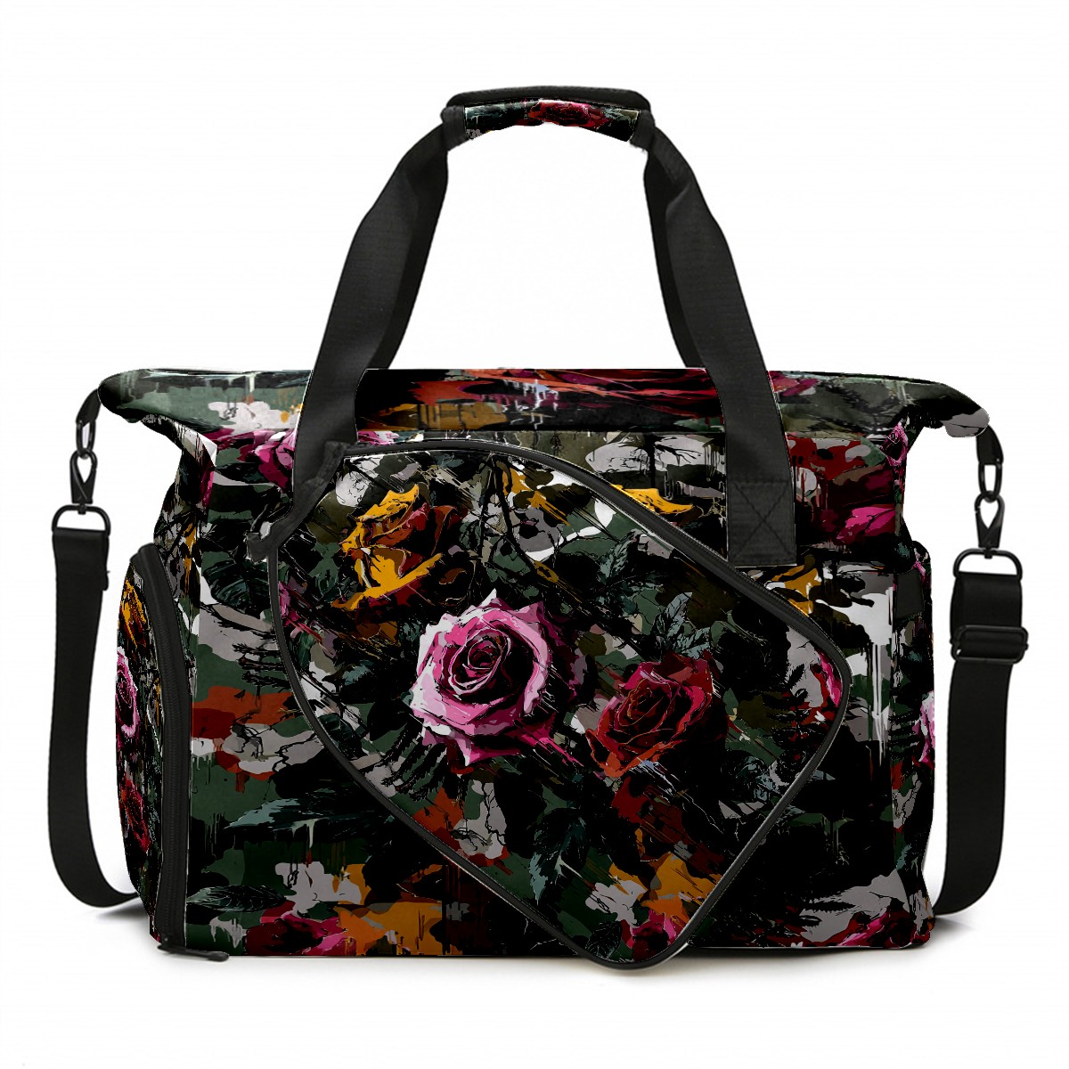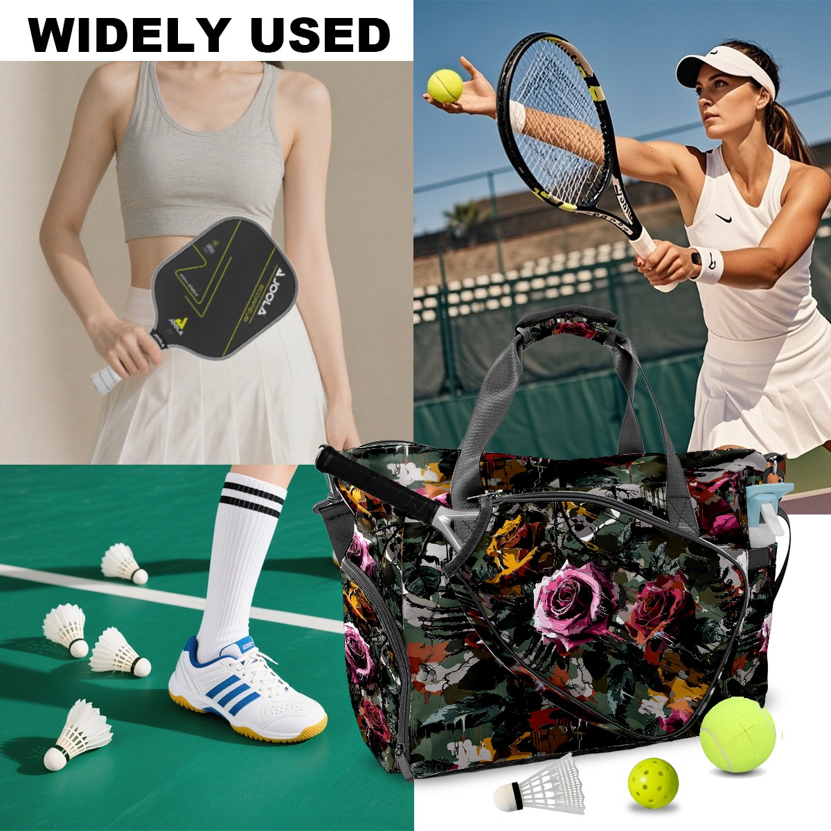 Counullo Romantic Rose Purple Gym Bag for Women & Tennis Bag, Large Sports Duffel Bag Waterproof with Ventilated Shoe Compartment & Front Racket Sleeve, Lightweight Travel Weekender Overnight Bag