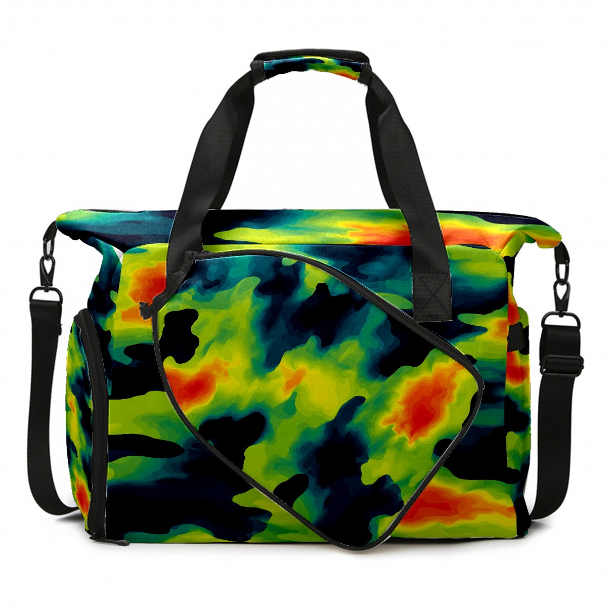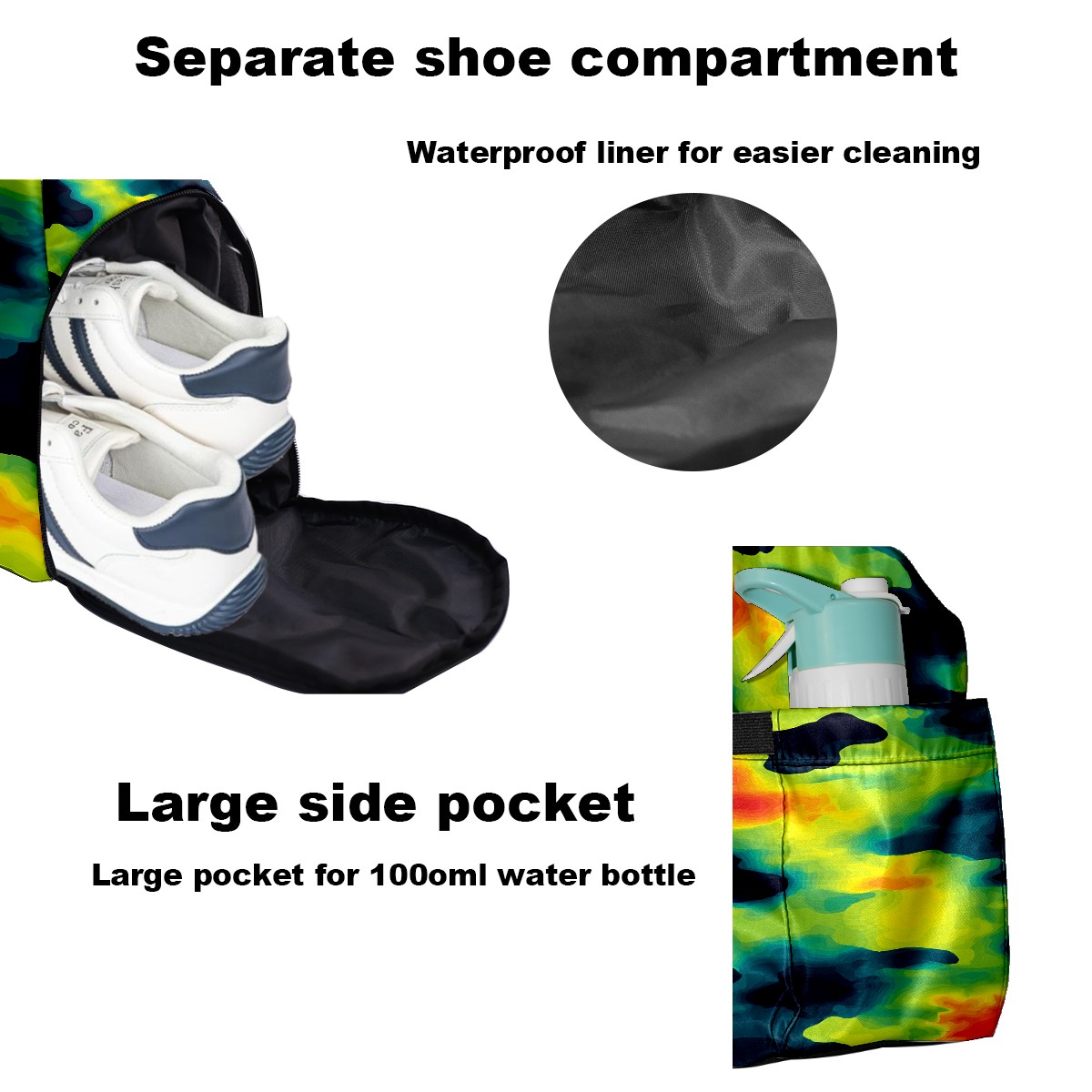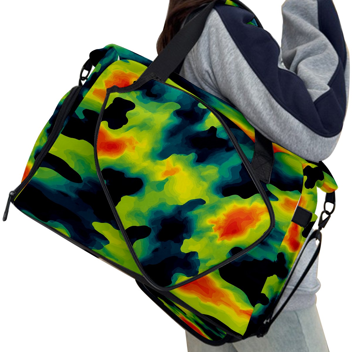 Counullo Camouflage Iridescent Gym Bag for Women & Tennis Bag, Large Sports Duffel Bag Waterproof with Ventilated Shoe Compartment & Front Racket Sleeve, Lightweight Travel Weekender Overnight Bag
