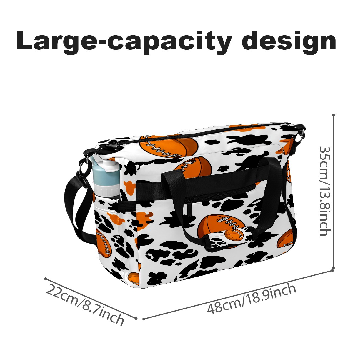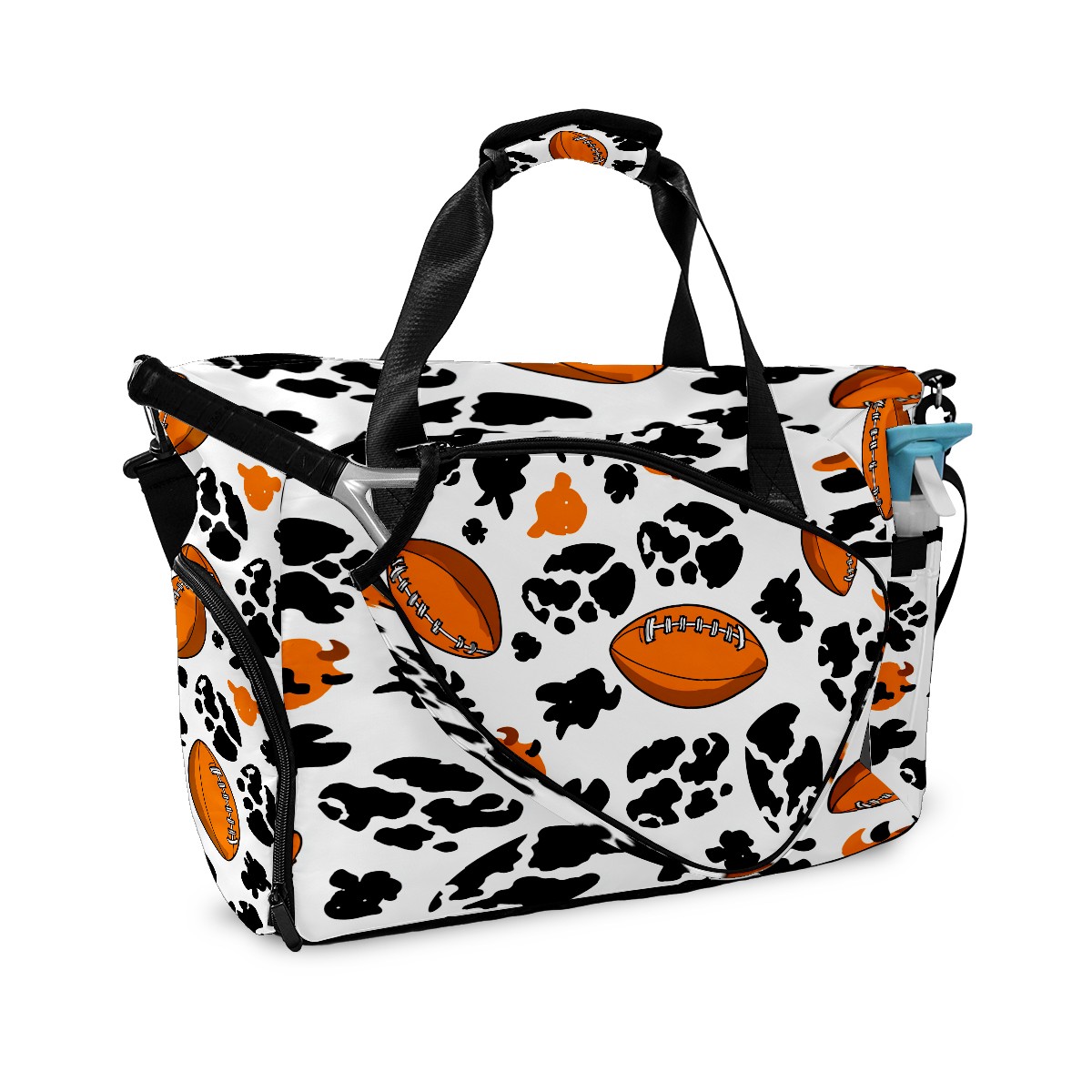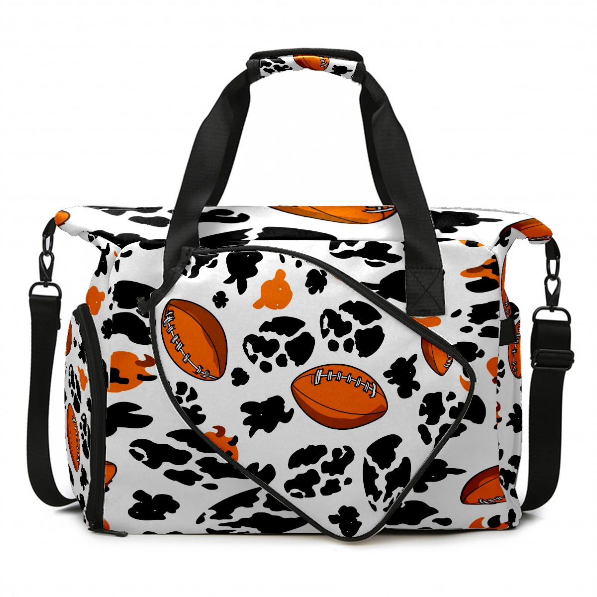 Counullo Dynamic Football Black Gym Bag for Women & Tennis Bag, Large Sports Duffel Bag Waterproof with Ventilated Shoe Compartment & Front Racket Sleeve, Lightweight Travel Weekender Overnight Bag