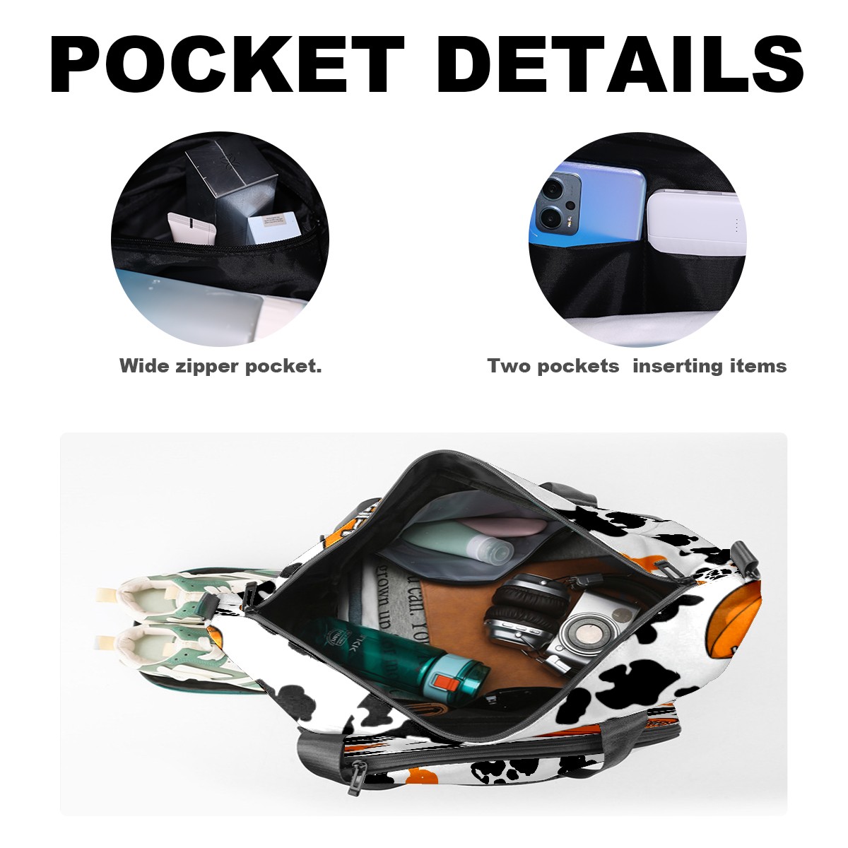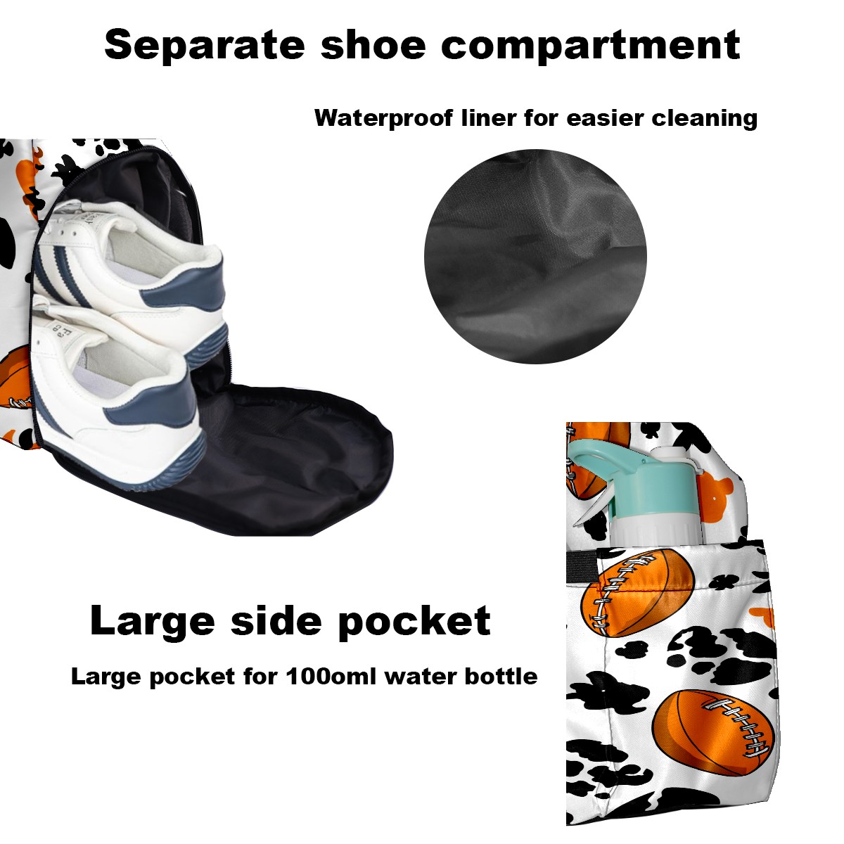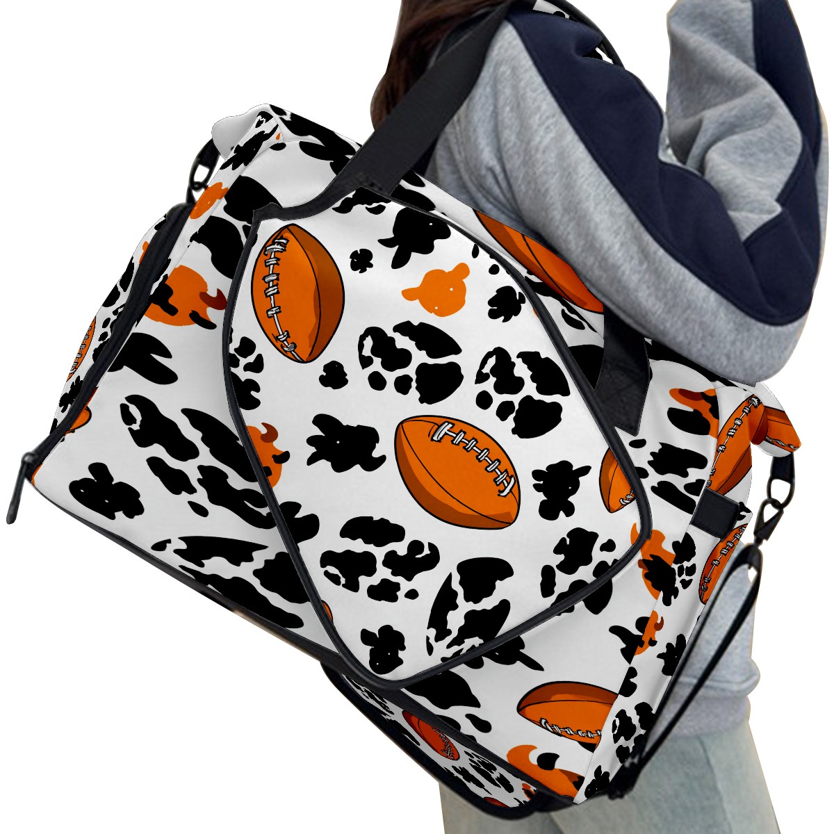 Counullo Dynamic Football Black Gym Bag for Women & Tennis Bag, Large Sports Duffel Bag Waterproof with Ventilated Shoe Compartment & Front Racket Sleeve, Lightweight Travel Weekender Overnight Bag