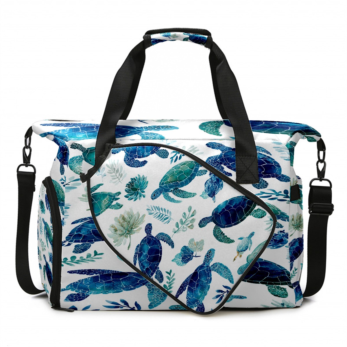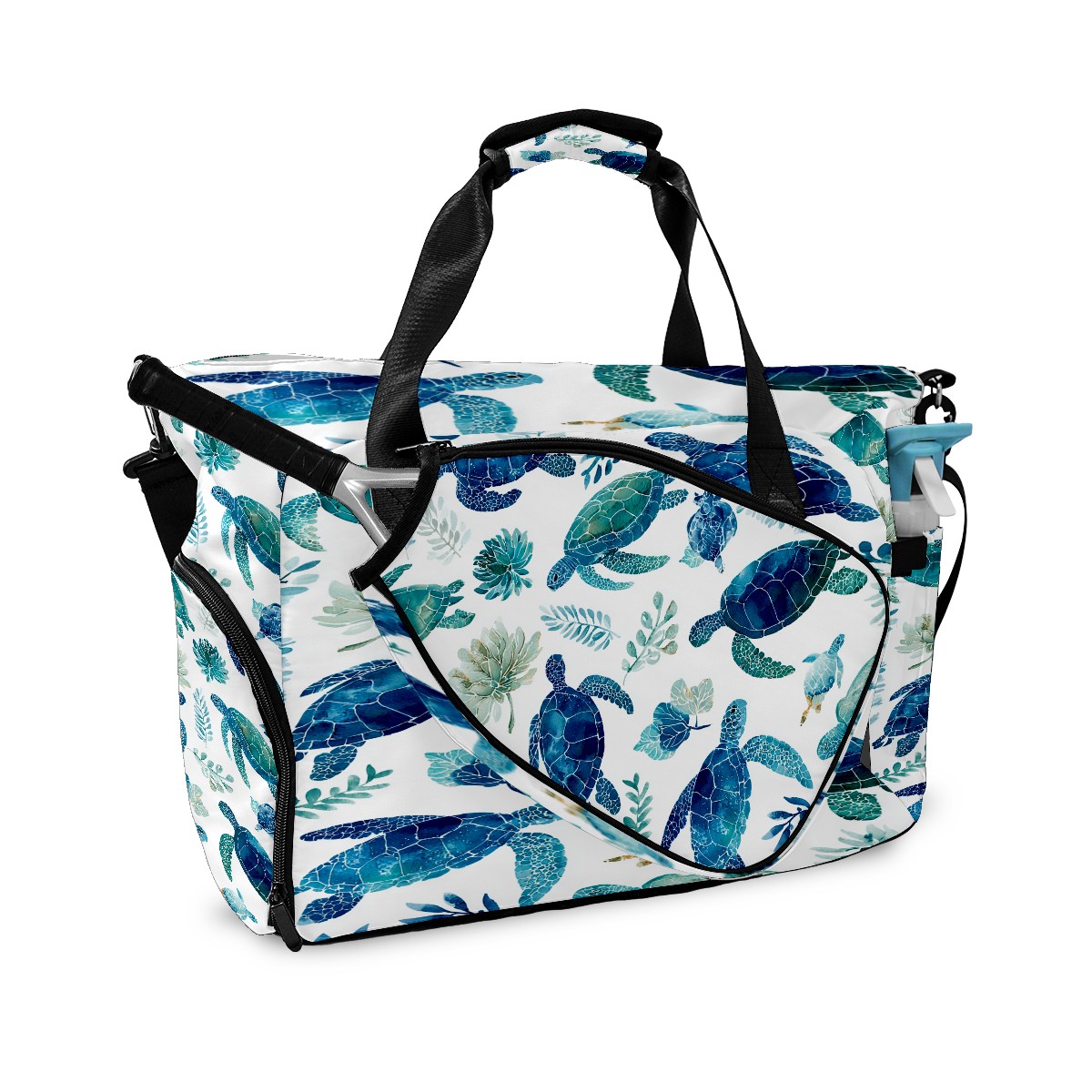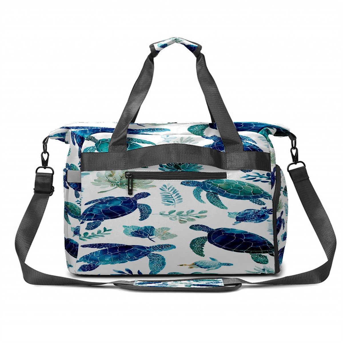 Counullo Fresh Turtle Blue Gym Bag for Women & Tennis Bag, Large Sports Duffel Bag Waterproof with Ventilated Shoe Compartment & Front Racket Sleeve, Lightweight Travel Weekender Overnight Bag