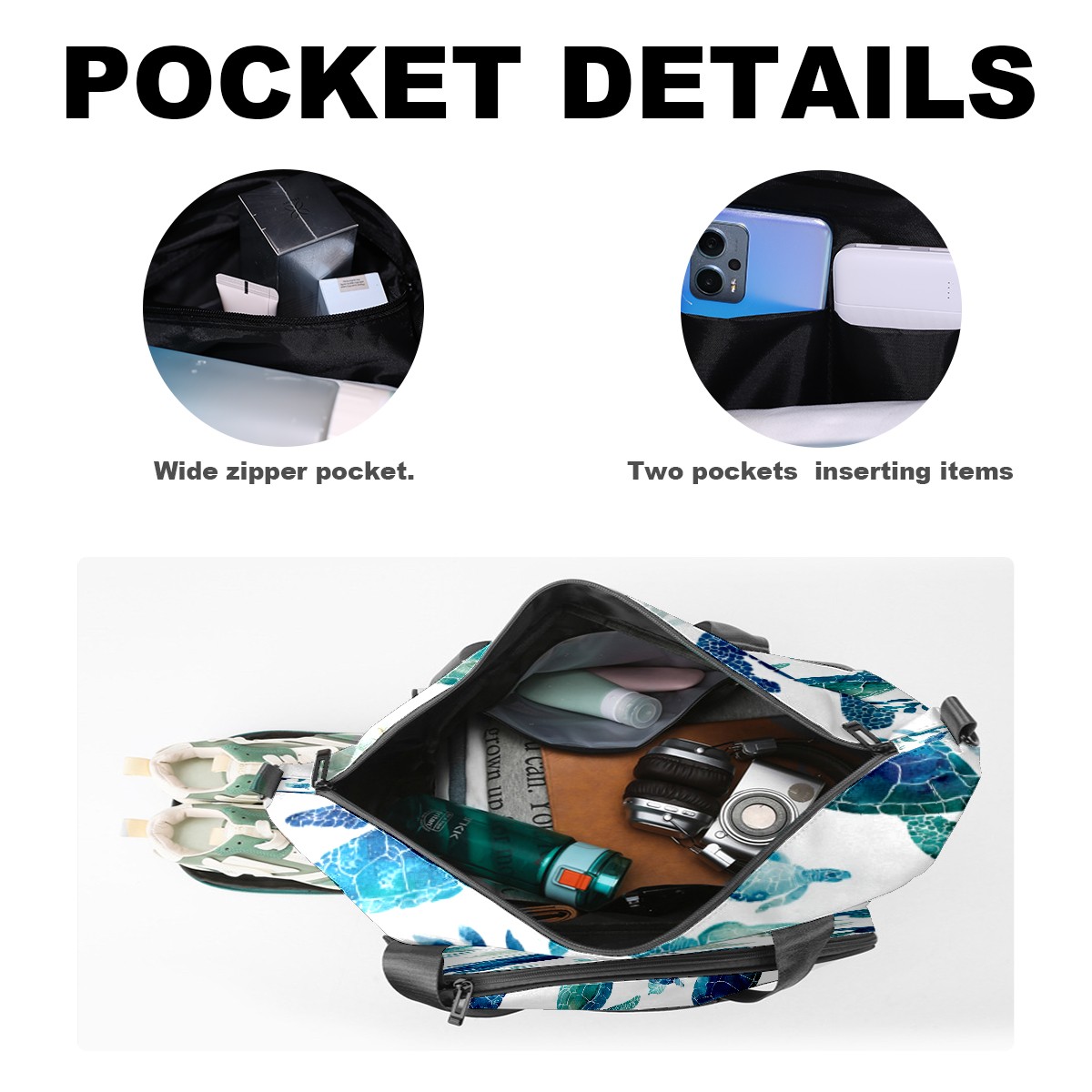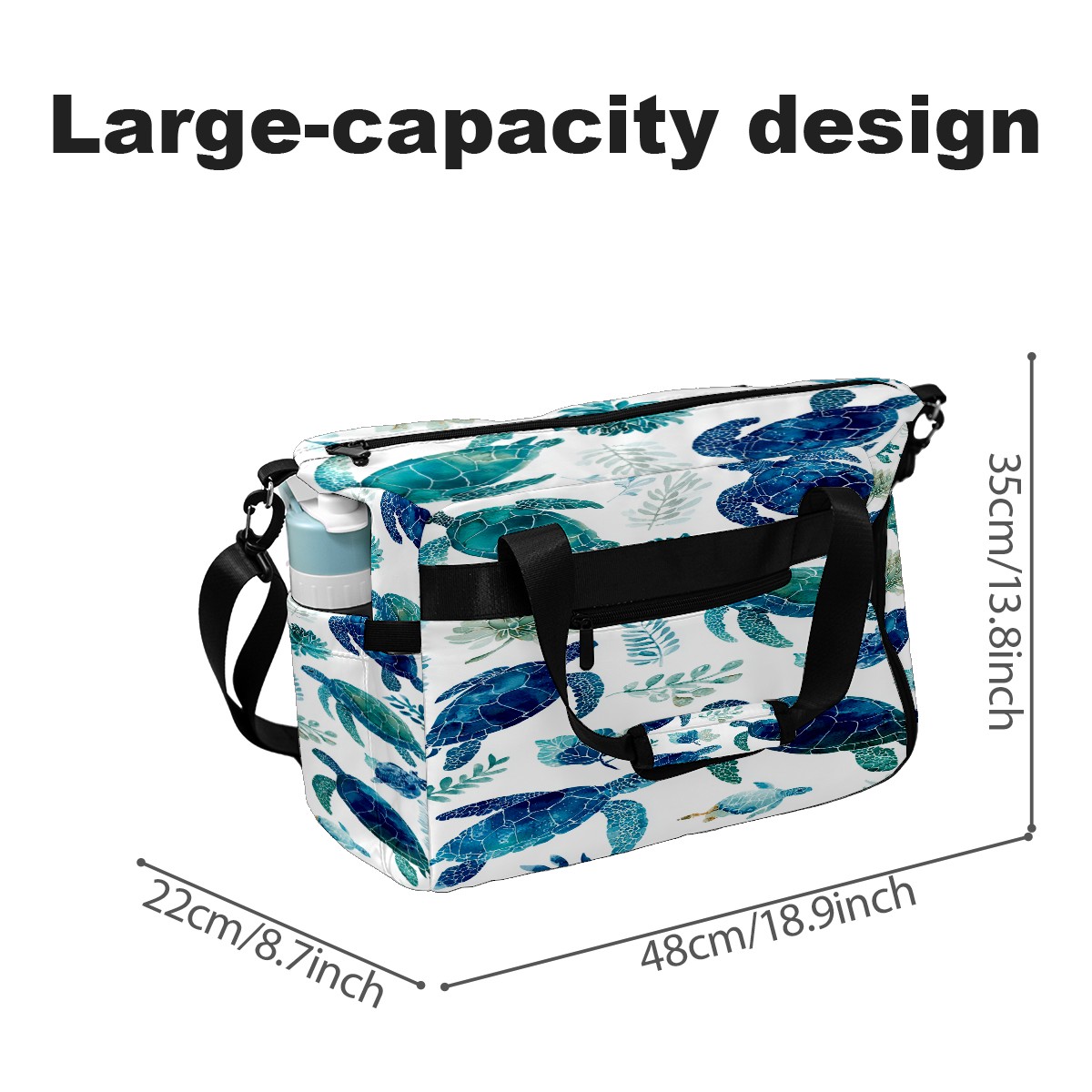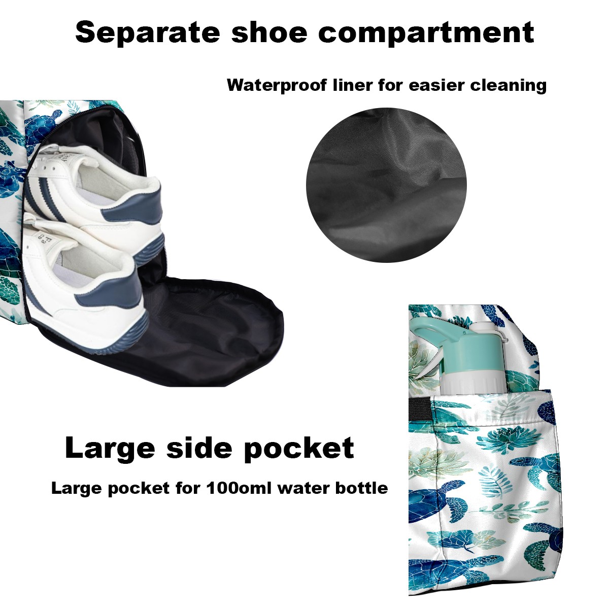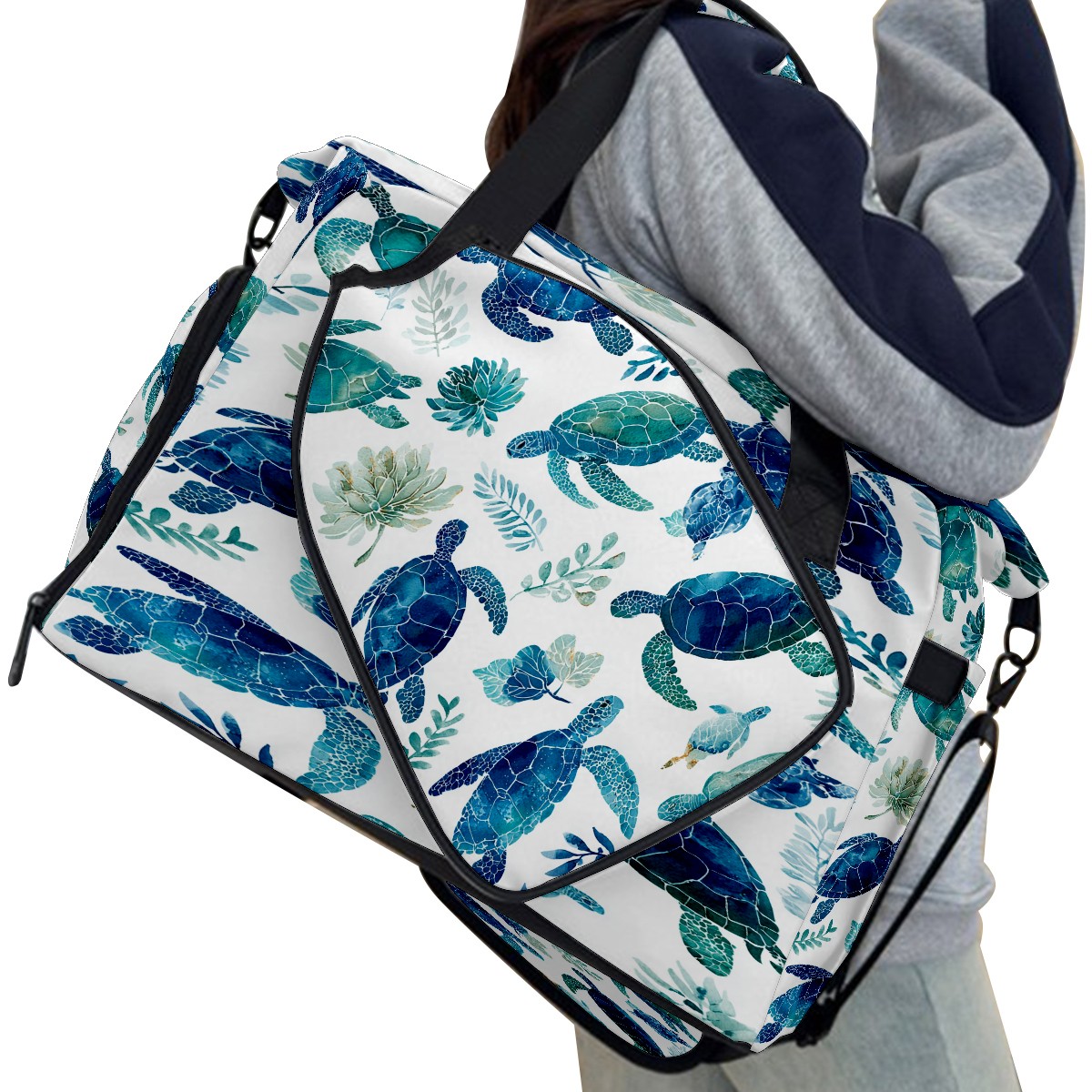 Counullo Fresh Turtle Blue Gym Bag for Women & Tennis Bag, Large Sports Duffel Bag Waterproof with Ventilated Shoe Compartment & Front Racket Sleeve, Lightweight Travel Weekender Overnight Bag