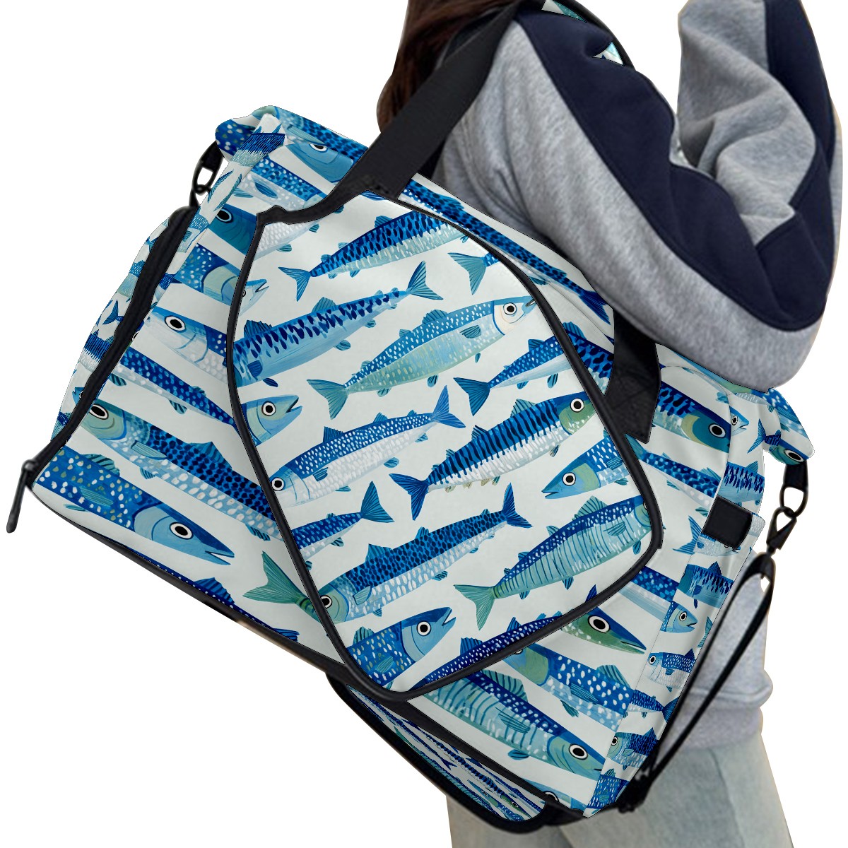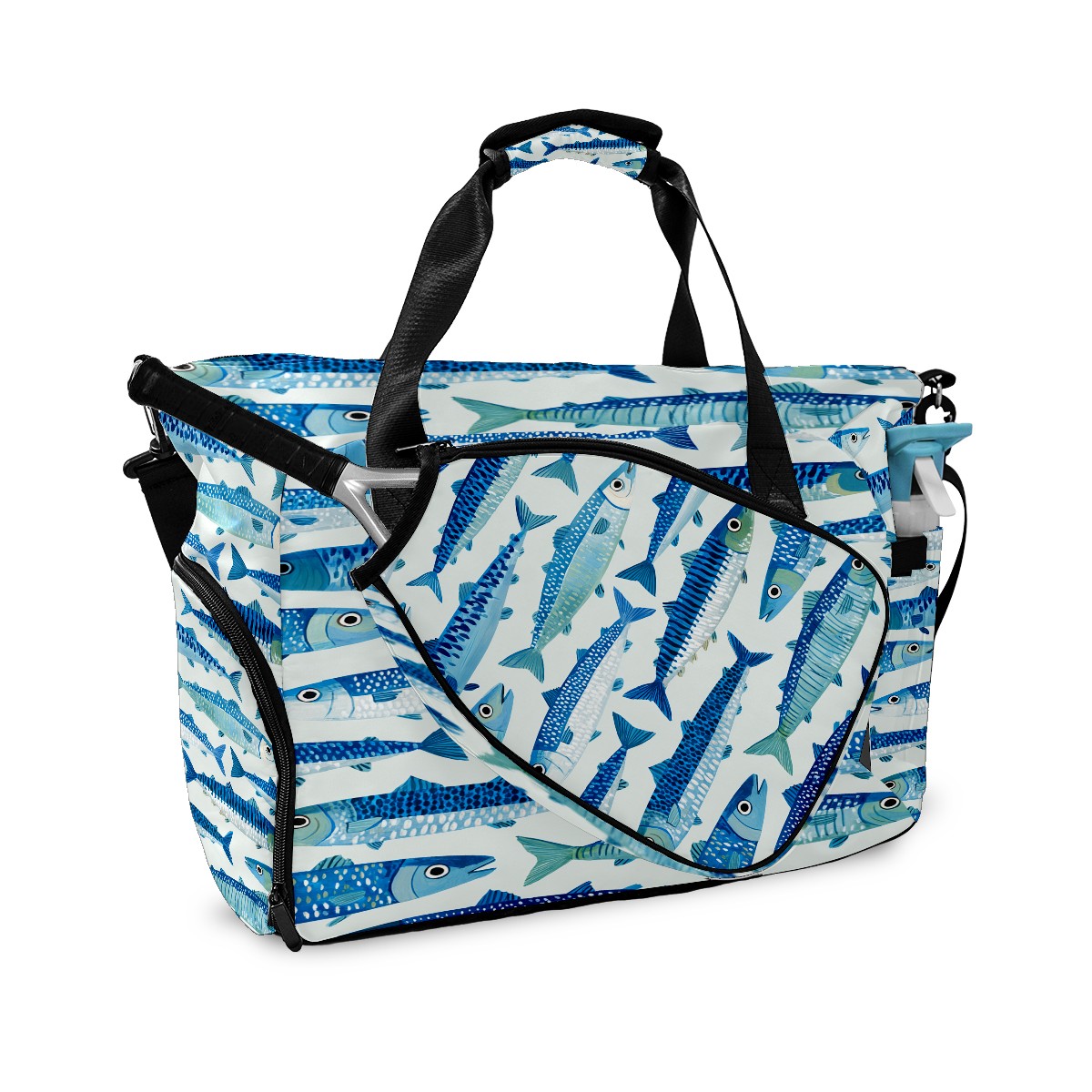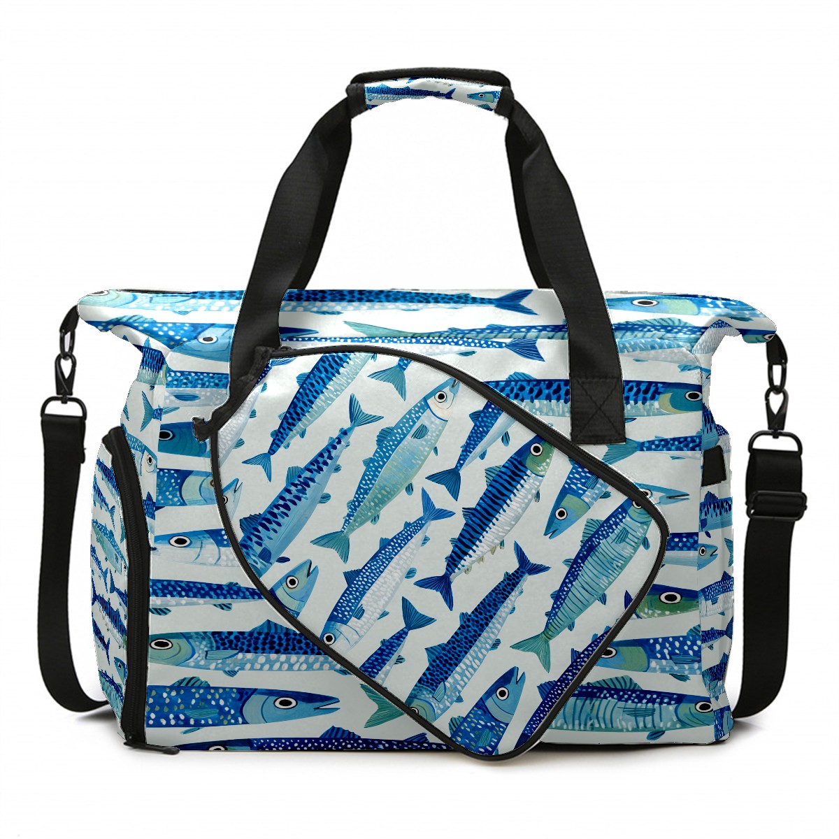 Counullo Simple Fish Blue Gym Bag for Women & Tennis Bag, Large Sports Duffel Bag Waterproof with Ventilated Shoe Compartment & Front Racket Sleeve, Lightweight Travel Weekender Overnight Bag