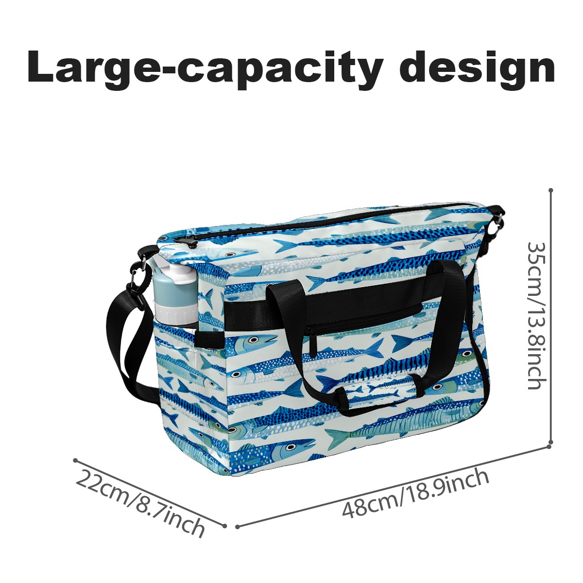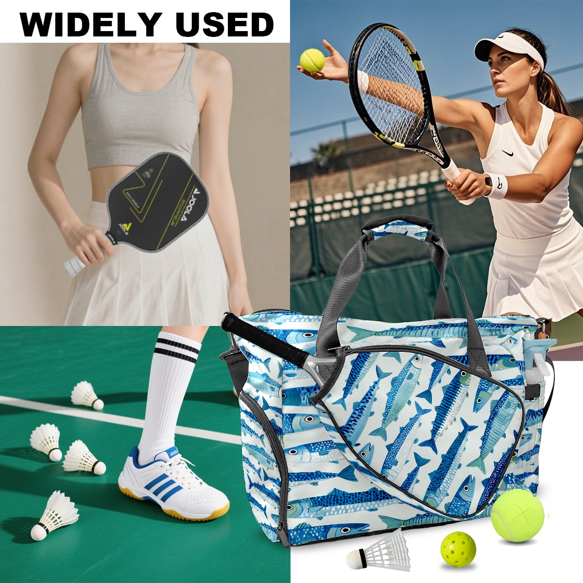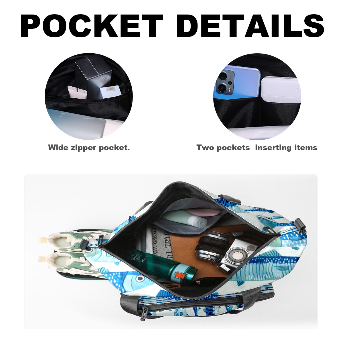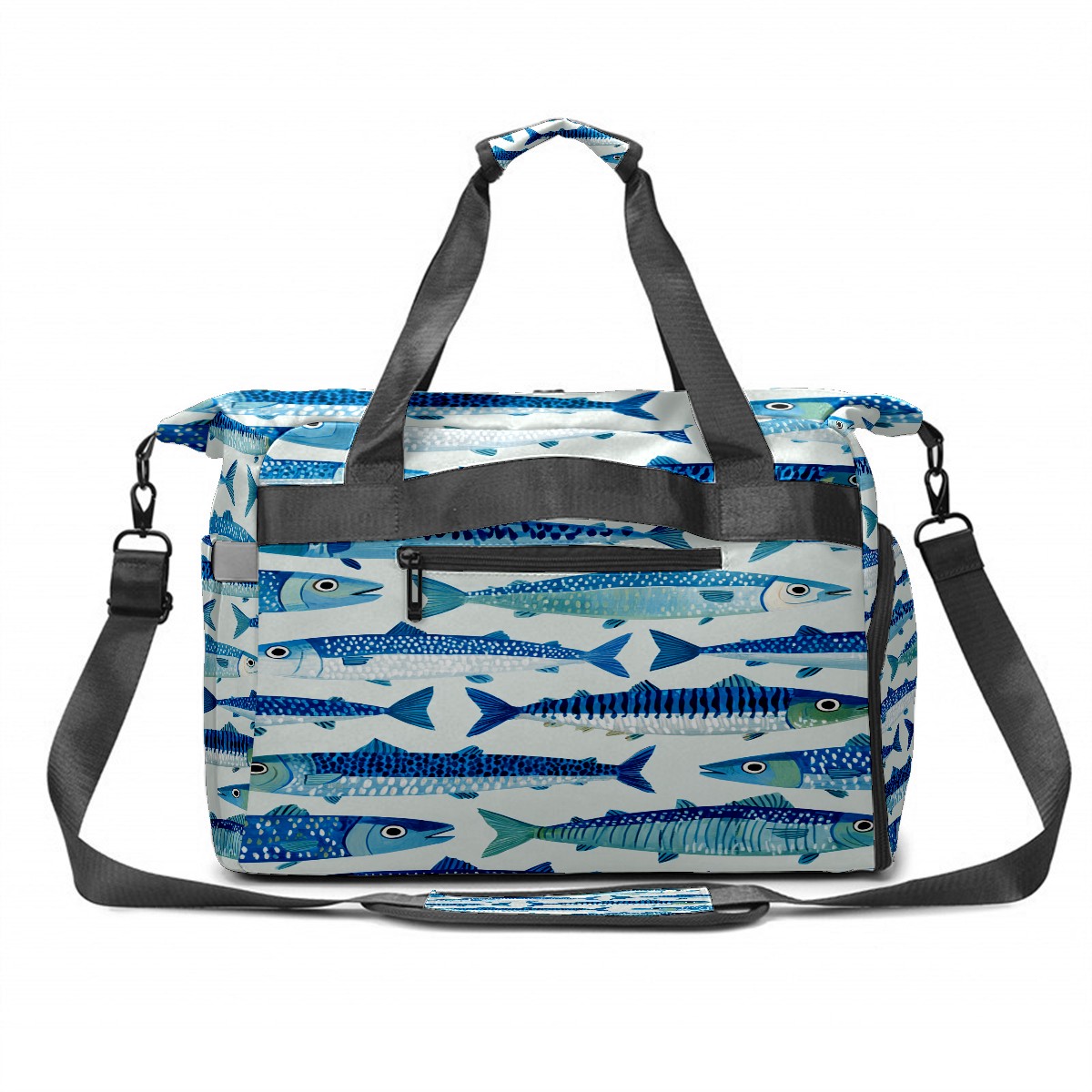 Counullo Simple Fish Blue Gym Bag for Women & Tennis Bag, Large Sports Duffel Bag Waterproof with Ventilated Shoe Compartment & Front Racket Sleeve, Lightweight Travel Weekender Overnight Bag
