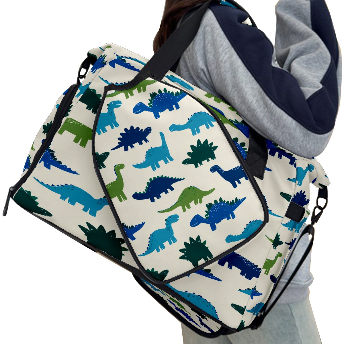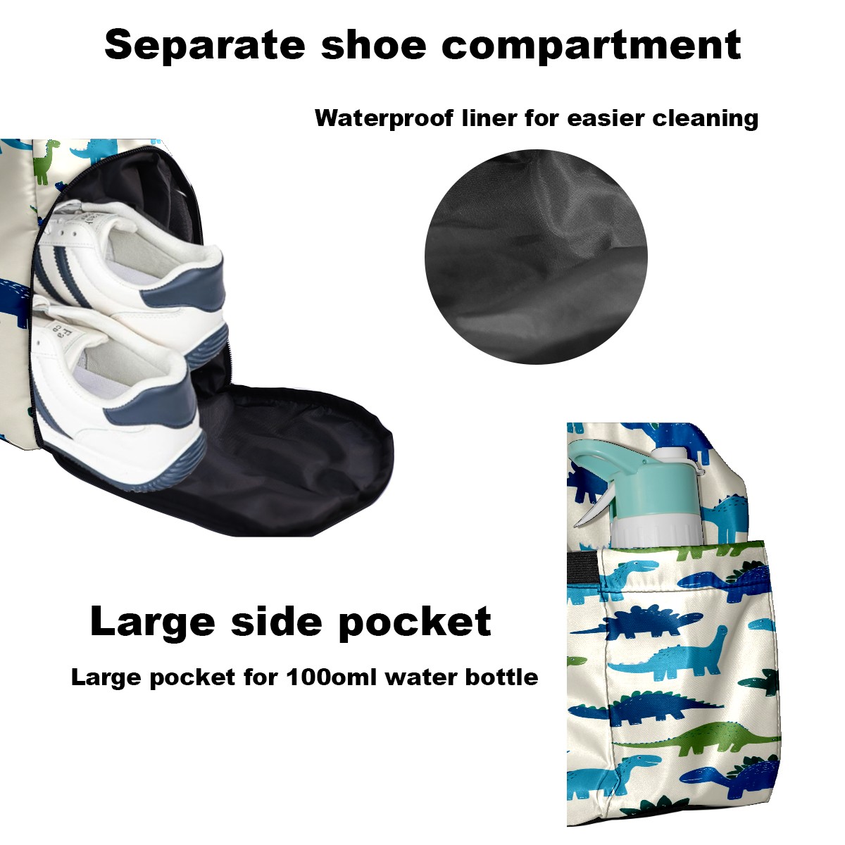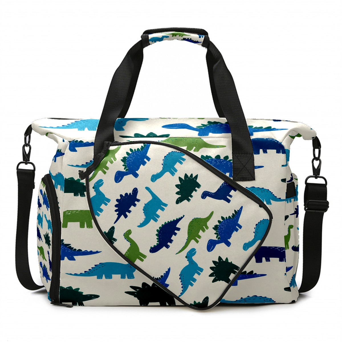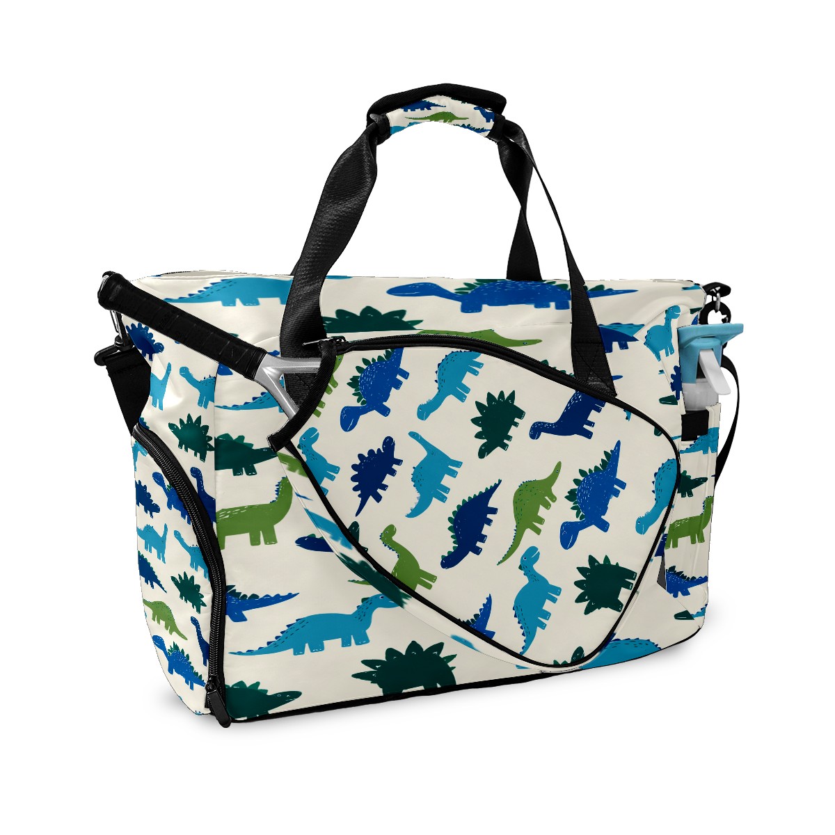 Counullo Cute Dinosaur Blue Gym Bag for Women & Tennis Bag, Large Sports Duffel Bag Waterproof with Ventilated Shoe Compartment & Front Racket Sleeve, Lightweight Travel Weekender Overnight Bag