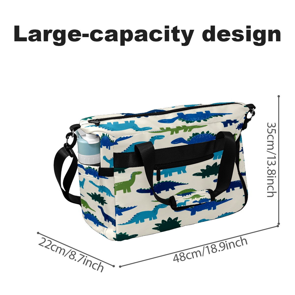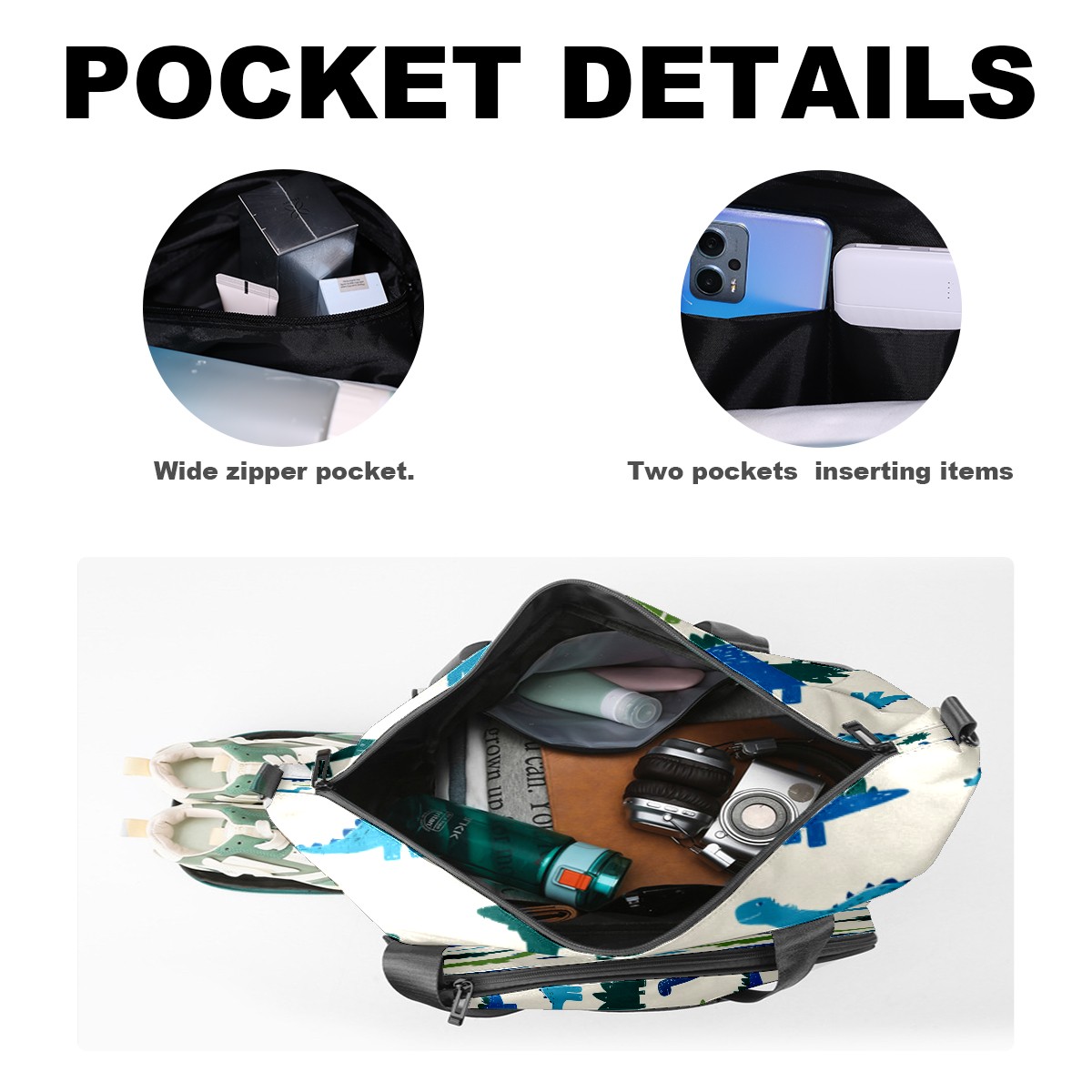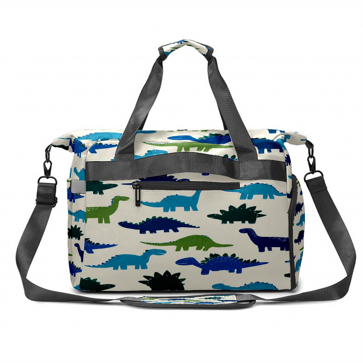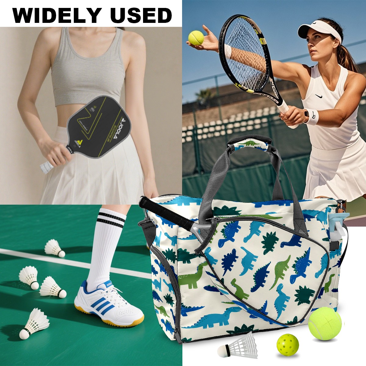 Counullo Cute Dinosaur Blue Gym Bag for Women & Tennis Bag, Large Sports Duffel Bag Waterproof with Ventilated Shoe Compartment & Front Racket Sleeve, Lightweight Travel Weekender Overnight Bag