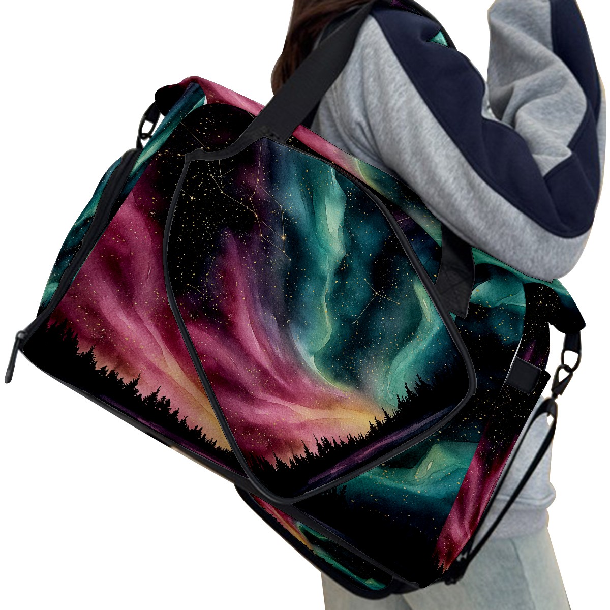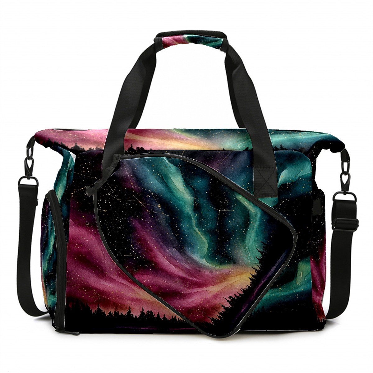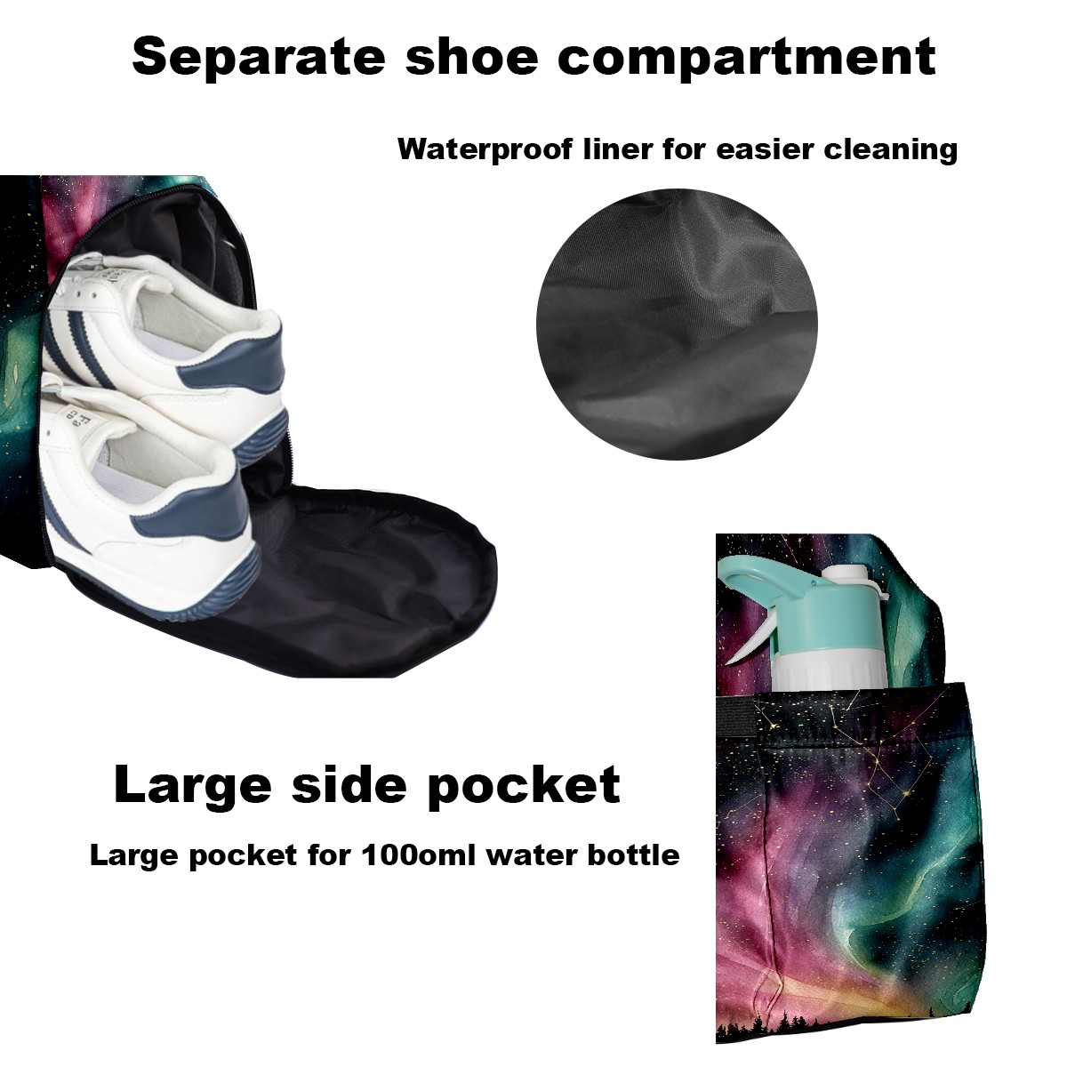 Counullo Dreamy Aurora Blue Gym Bag for Women & Tennis Bag, Large Sports Duffel Bag Waterproof with Ventilated Shoe Compartment & Front Racket Sleeve, Lightweight Travel Weekender Overnight Bag